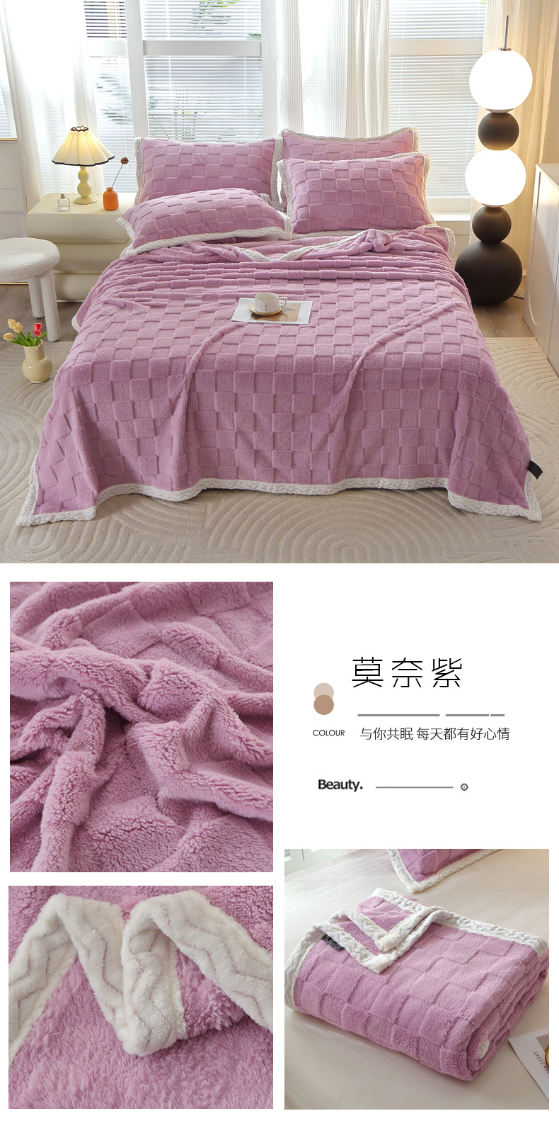 (总)栩裕纺织 2025新款宝宝绒夹棉单床盖-直边款,橙色,蓝色,粉色,紫色,湖蓝,中国红,灰色,皮红,卡其色