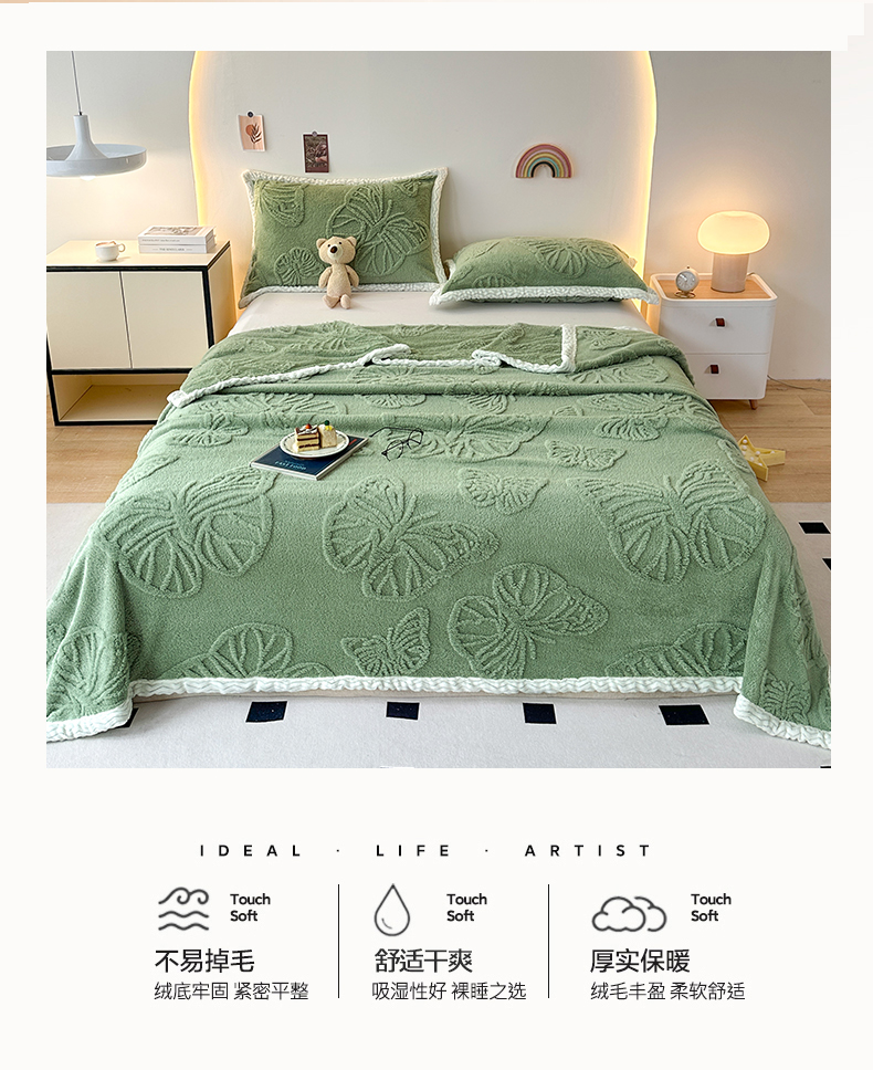 商品名称:栩裕纺织 2025新款塔芙绒蝴蝶提花毛毯包边款 米杏色