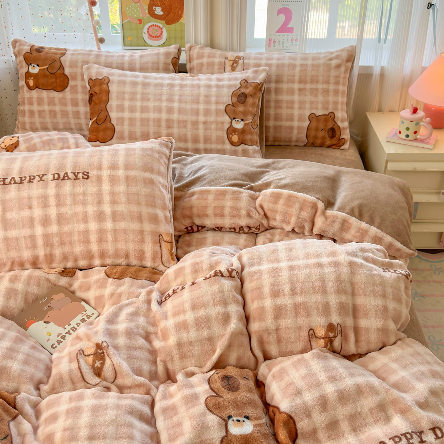 德比尔斯 2025新款泡泡牛奶绒四件套 格瑞