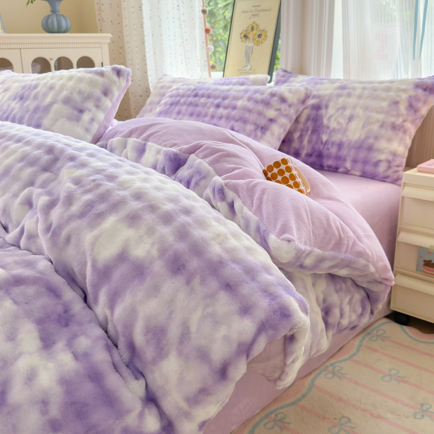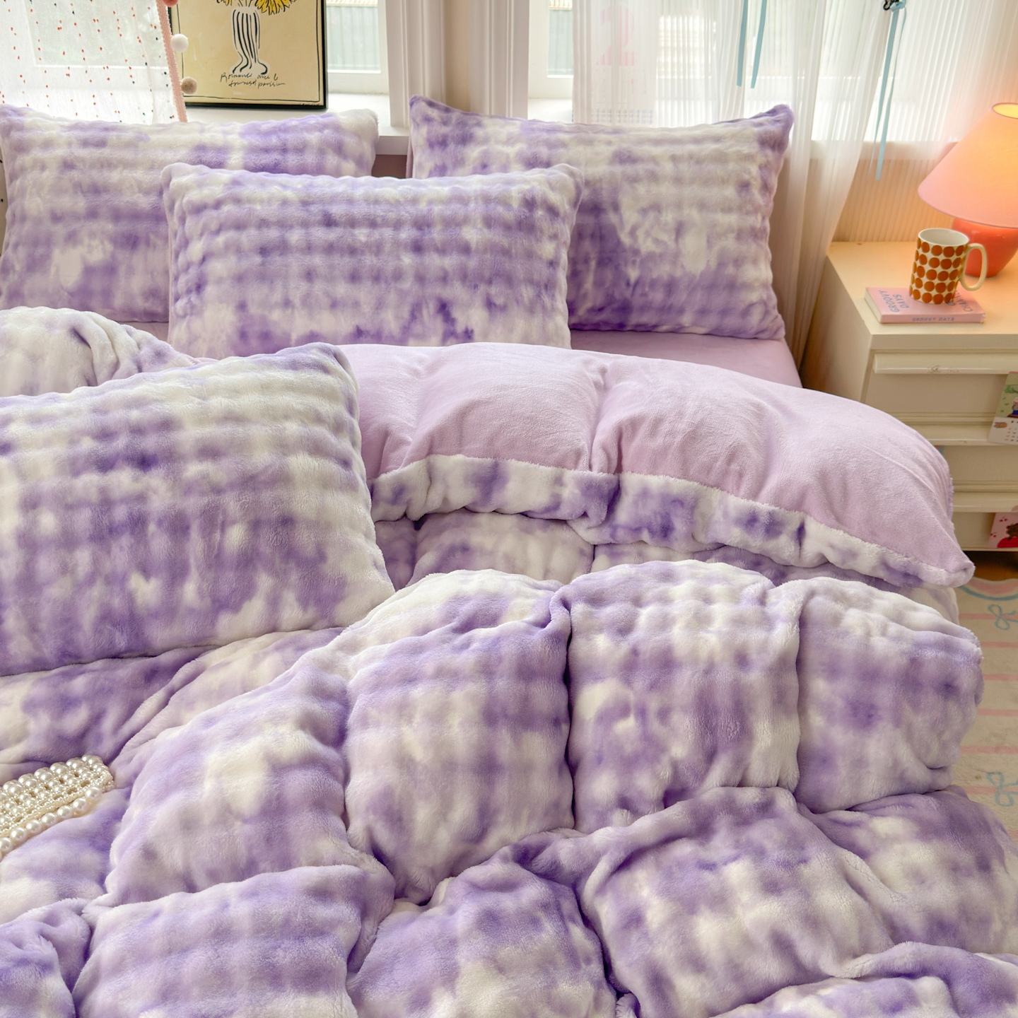 商品名称:德比尔斯 2025新款泡泡牛奶绒四件套 炫彩泡泡紫