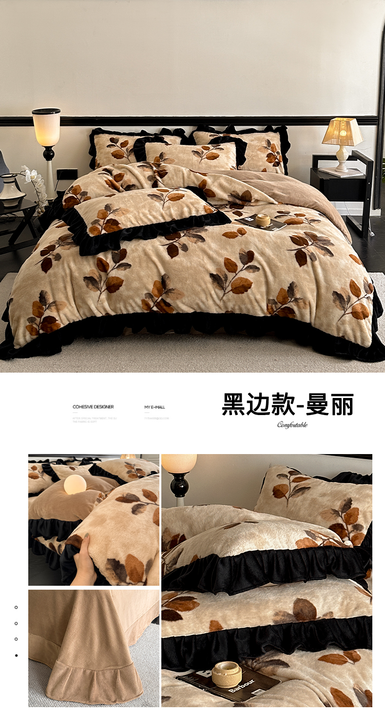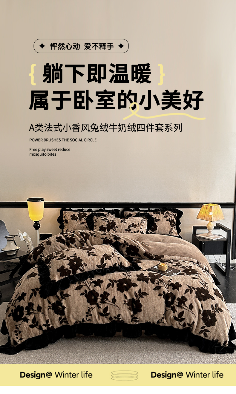 当前位置: 91家纺网 > 商品网购 > 床品套件 > 四件套 > 牛奶绒四件套 > 子曰 2025新款A类法式小香风黑边款兔绒牛奶绒四件套 黑边款-曼丽