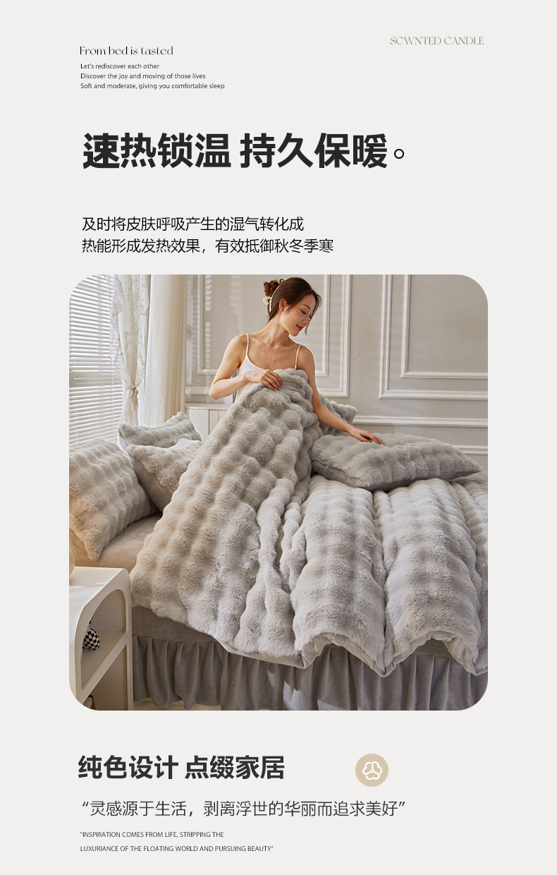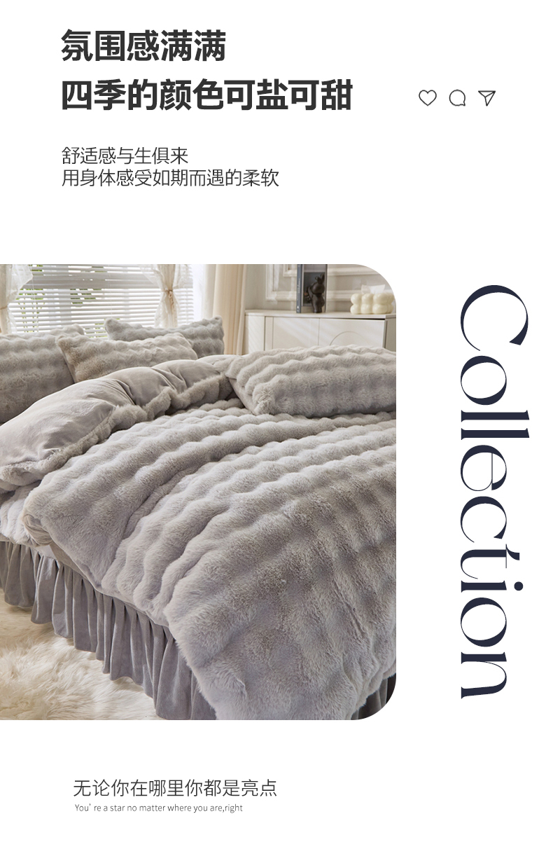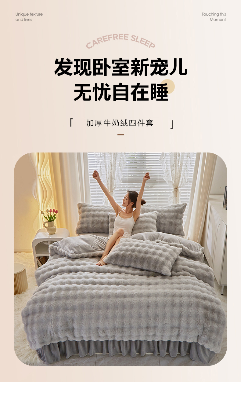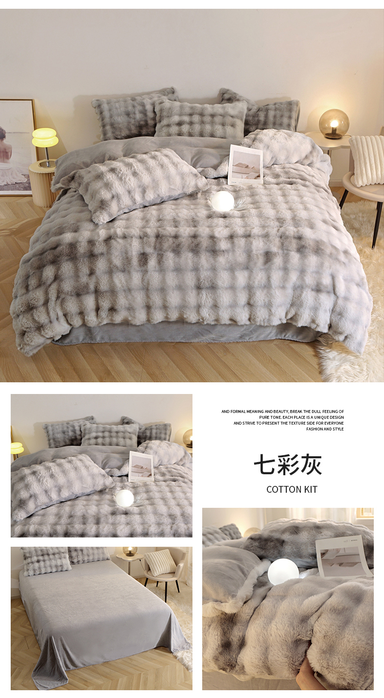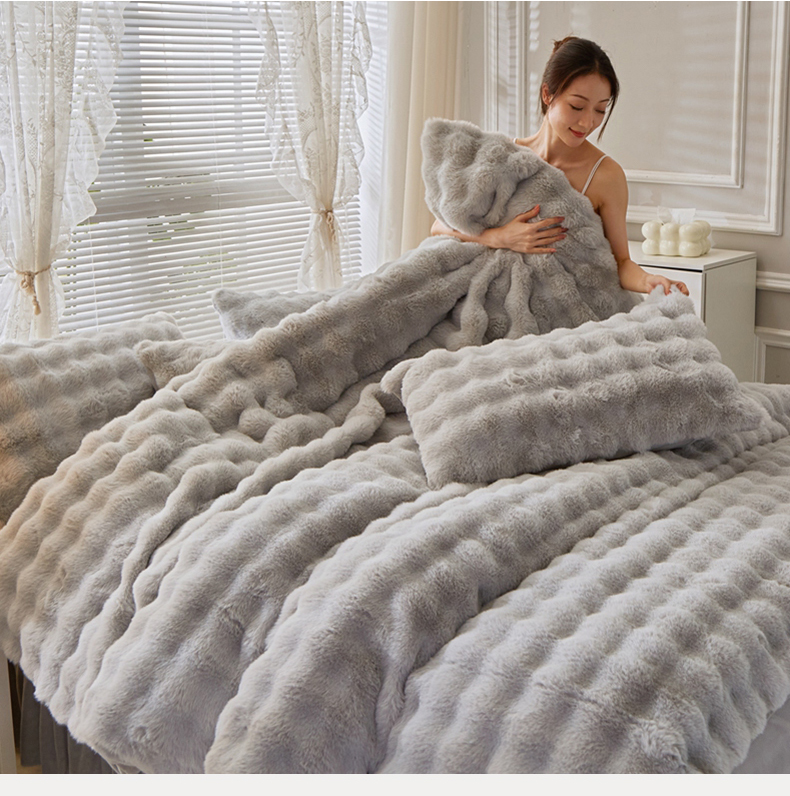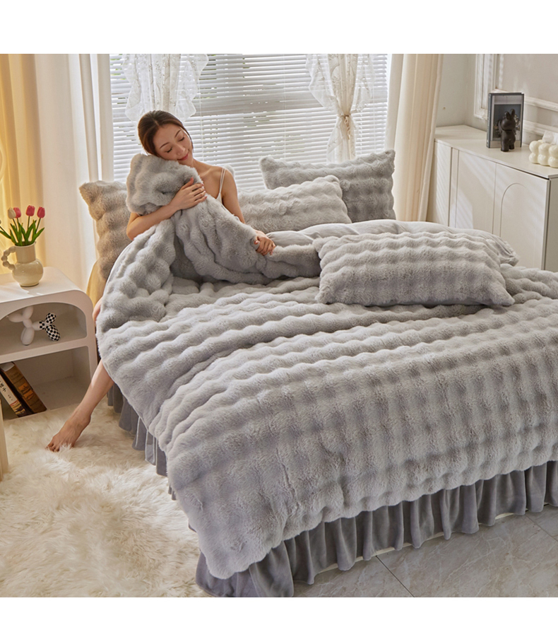 晚悠家纺 2025新款兔毛绒大泡泡牛奶绒七彩泡泡款四件套 泡泡-浅灰