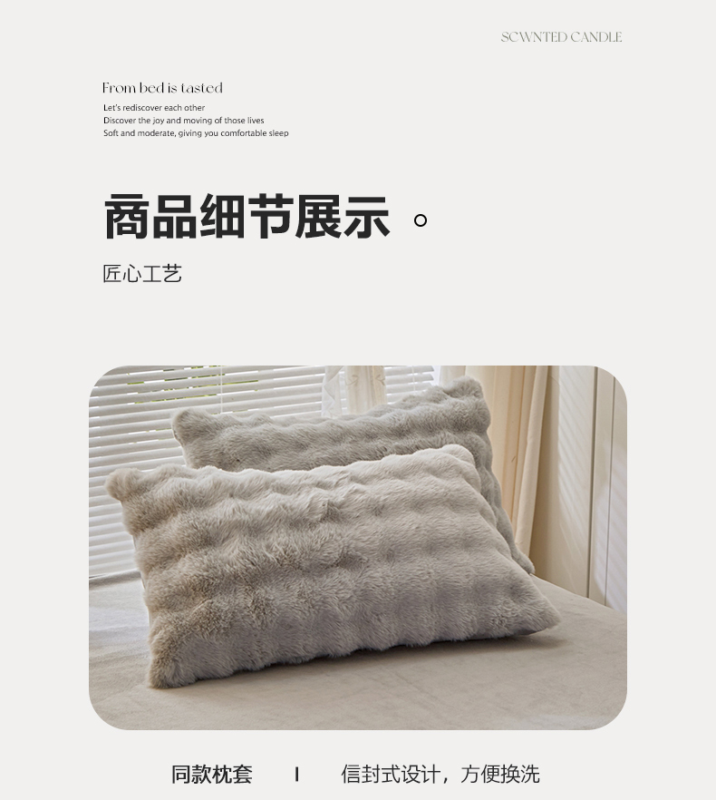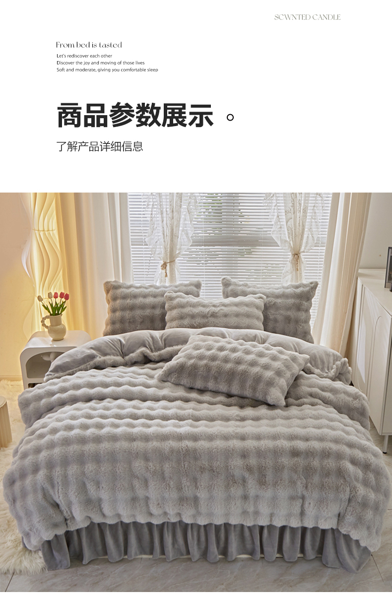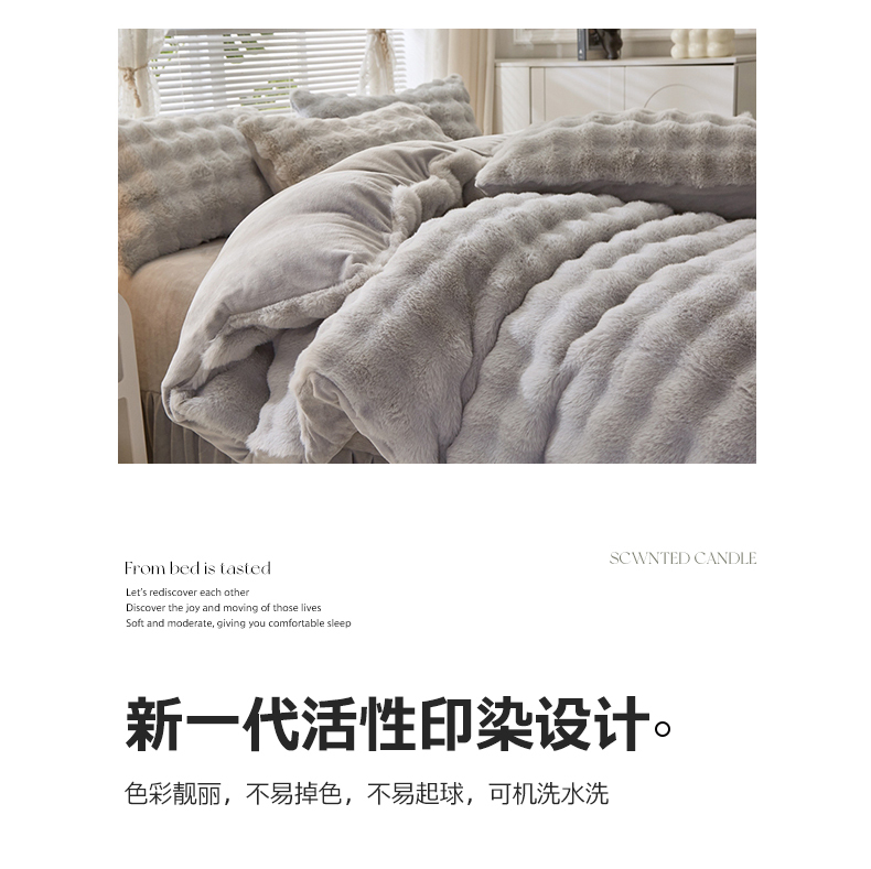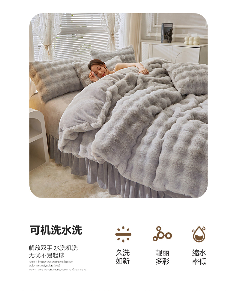 商品名称:晚悠家纺 2025新款兔毛绒大泡泡牛奶绒七彩泡泡款四件套 泡泡-浅灰