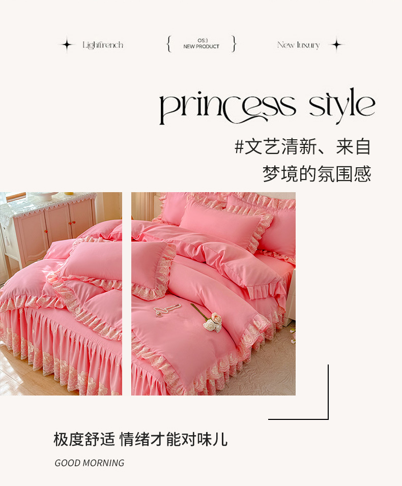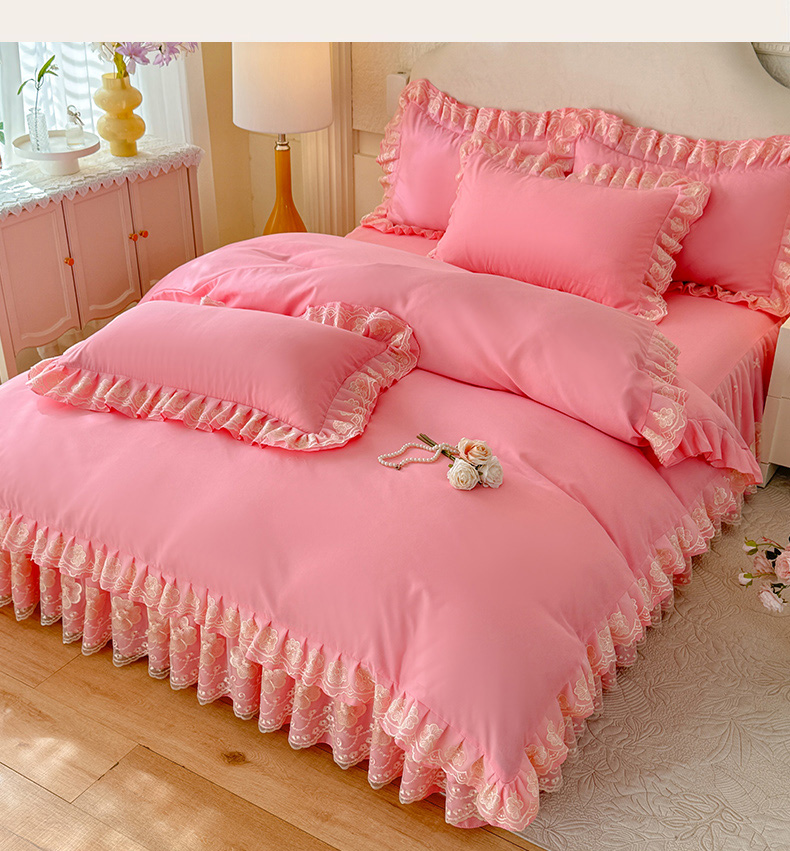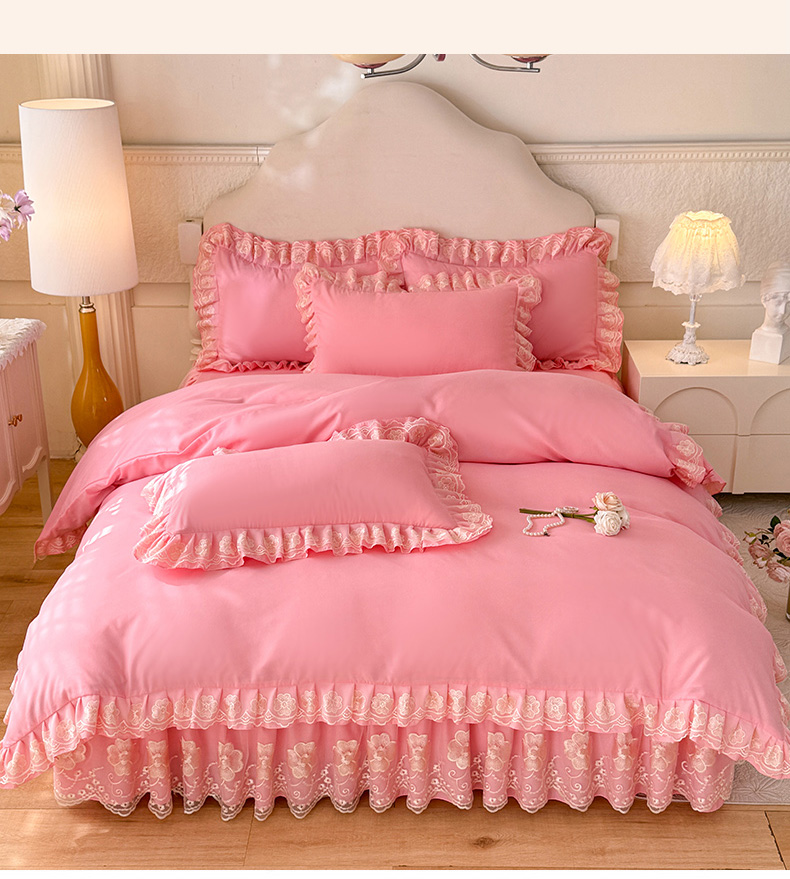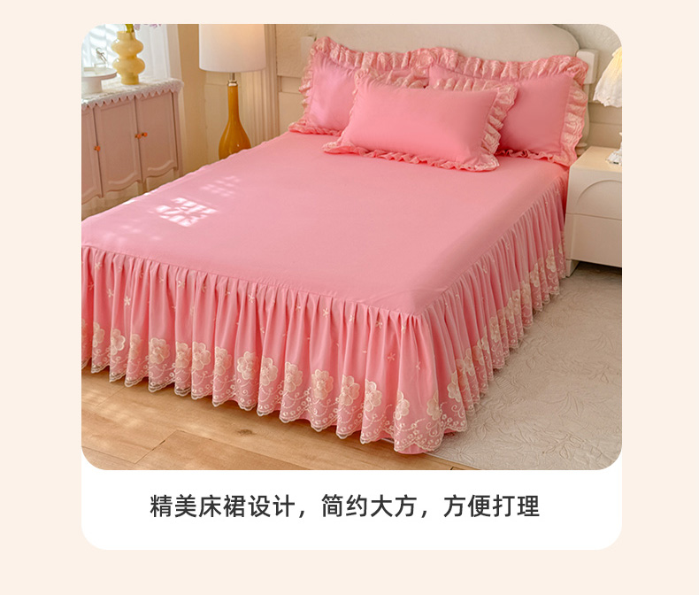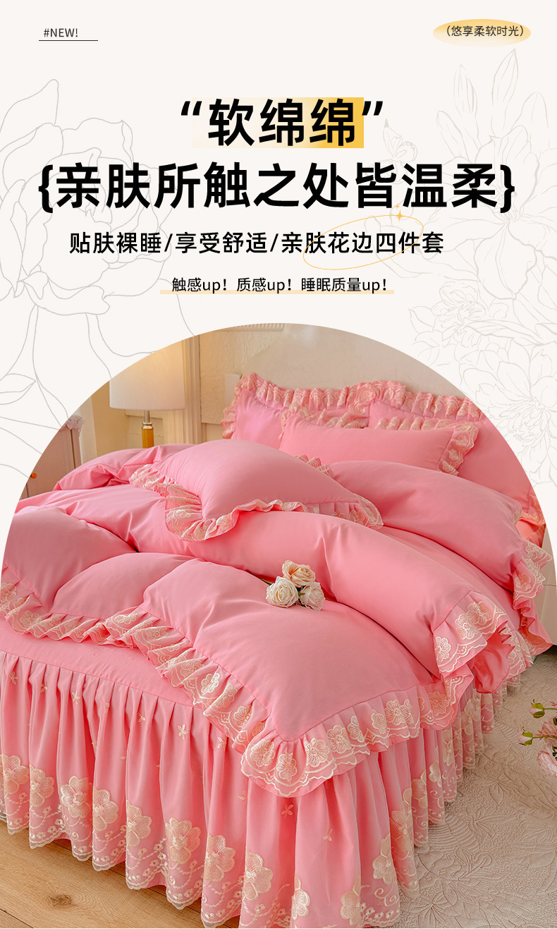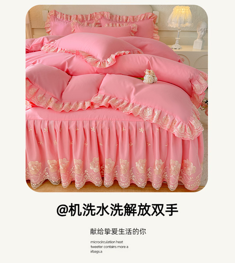 后庭寝室 2025新款亲肤花边蕾丝床裙四件套-繁花似锦系列 繁花似锦-粉玉