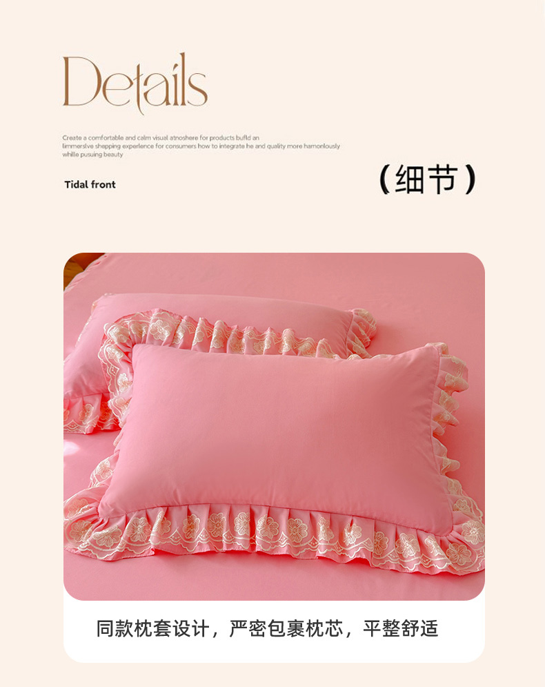商品名称:后庭寝室 2025新款亲肤花边蕾丝床裙四件套-繁花似锦系列 繁花似锦-粉玉