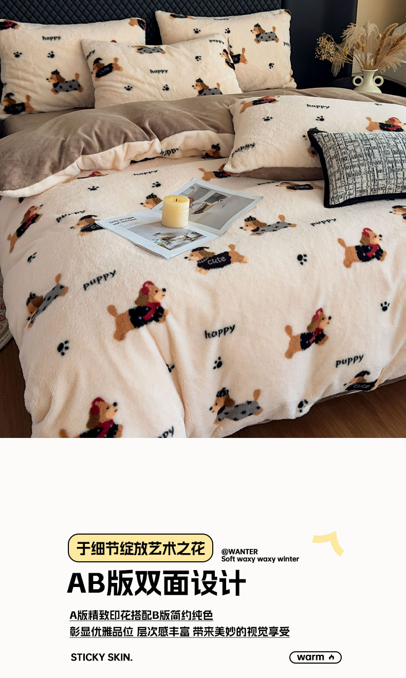 当前位置: 91家纺网 > 商品网购 > 床品套件 > 四件套 > 其它四件套 > 璐维斯 2025 A类舒适兔毛绒印花四件套卡通花卉牛奶绒秋冬保暖床上用品单被套三件套 腊肠狗