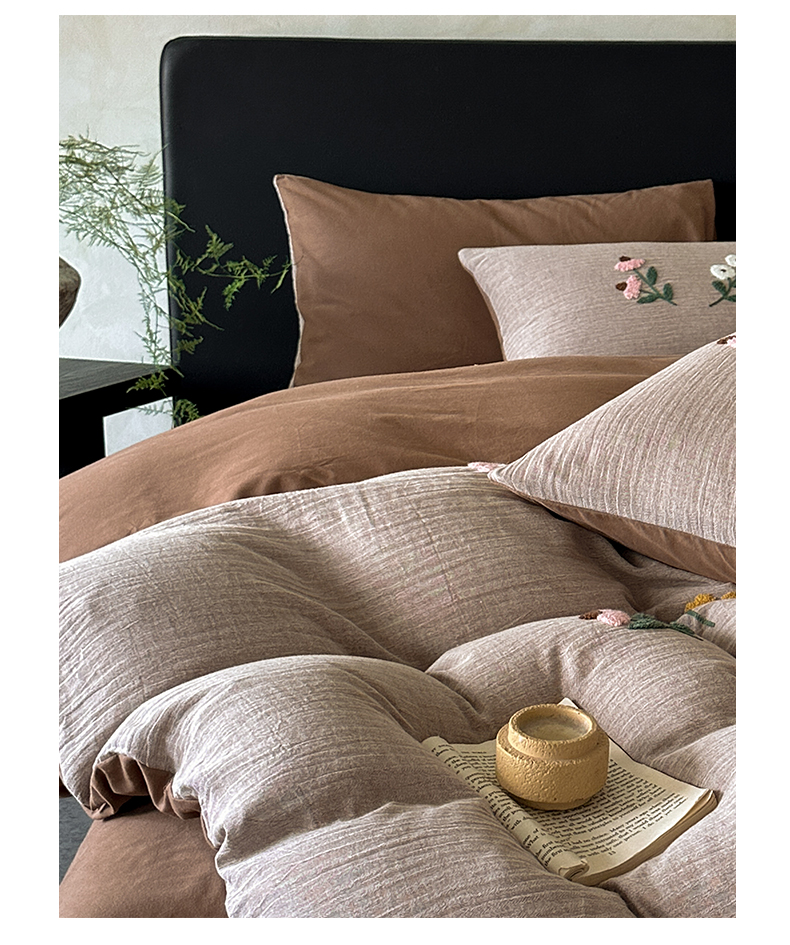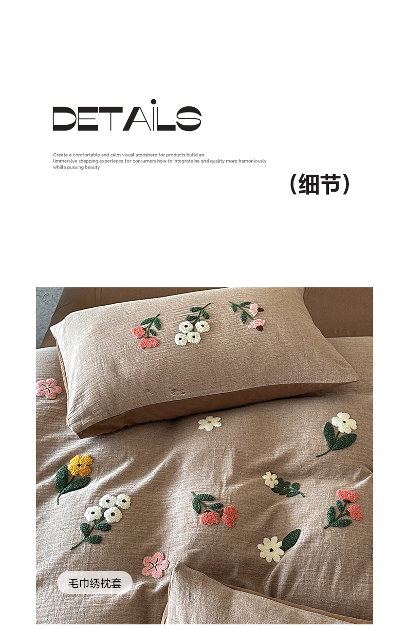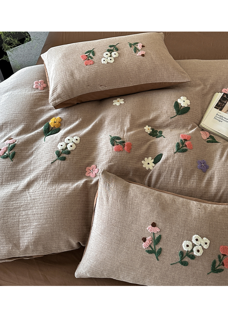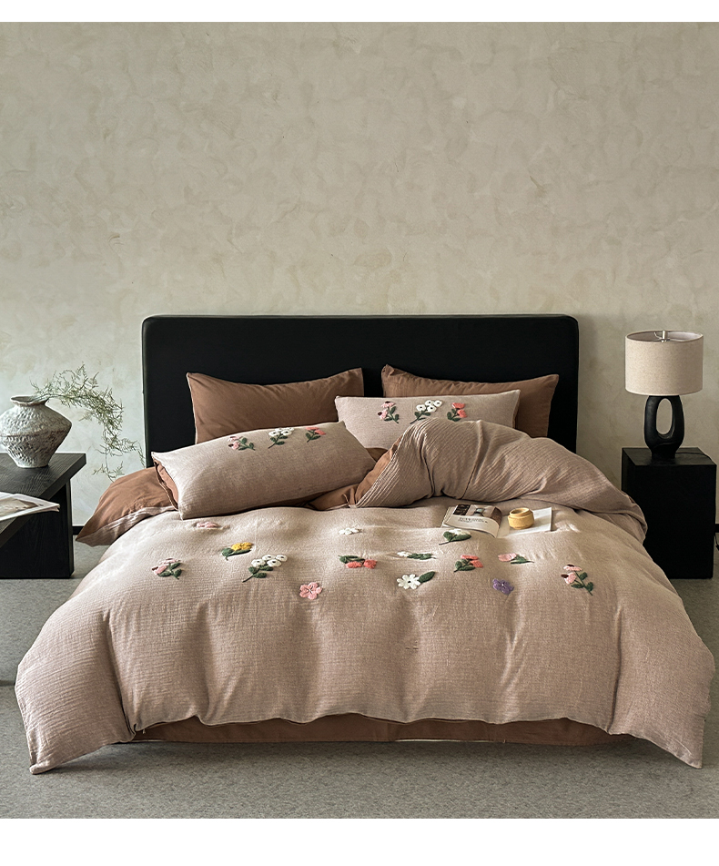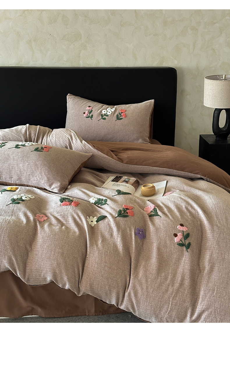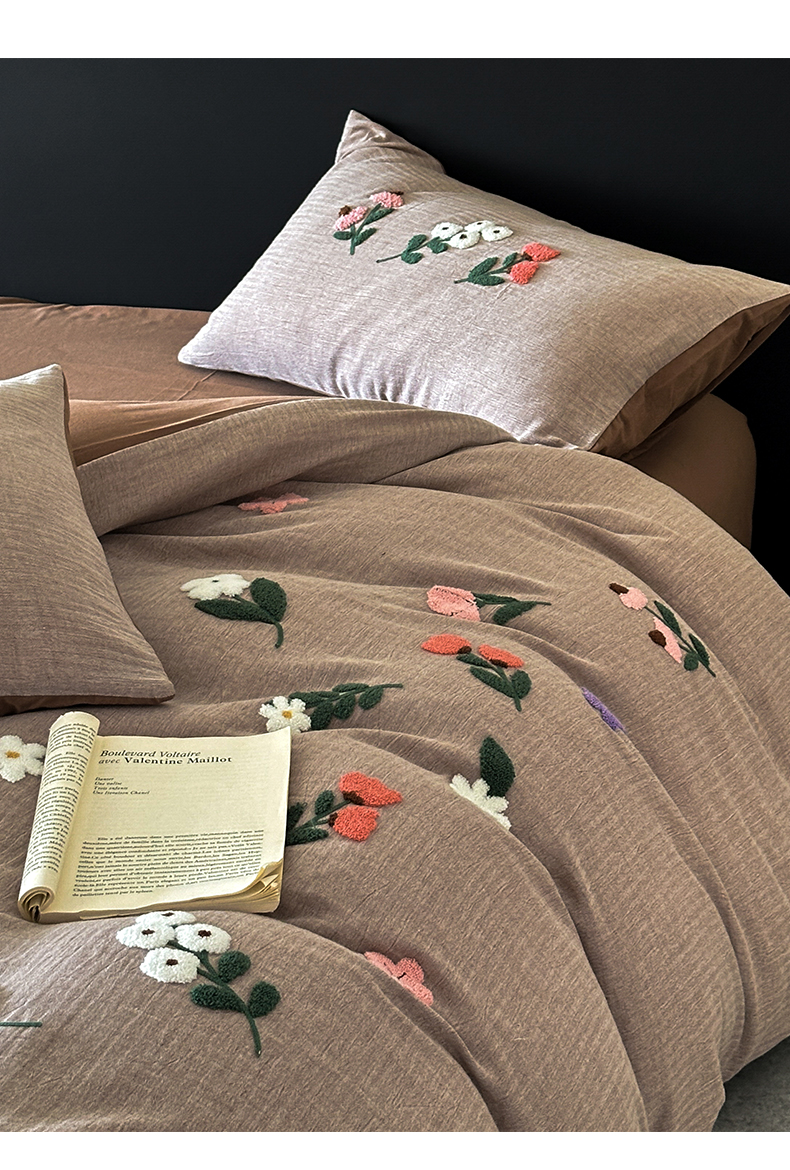 当前位置: 91家纺网 > 商品网购 > 床品套件 > 四件套 > 其它四件套 > 雅居纺家纺 2025新款棉麻+全棉磨毛毛巾绣四件套 花锦-咖啡