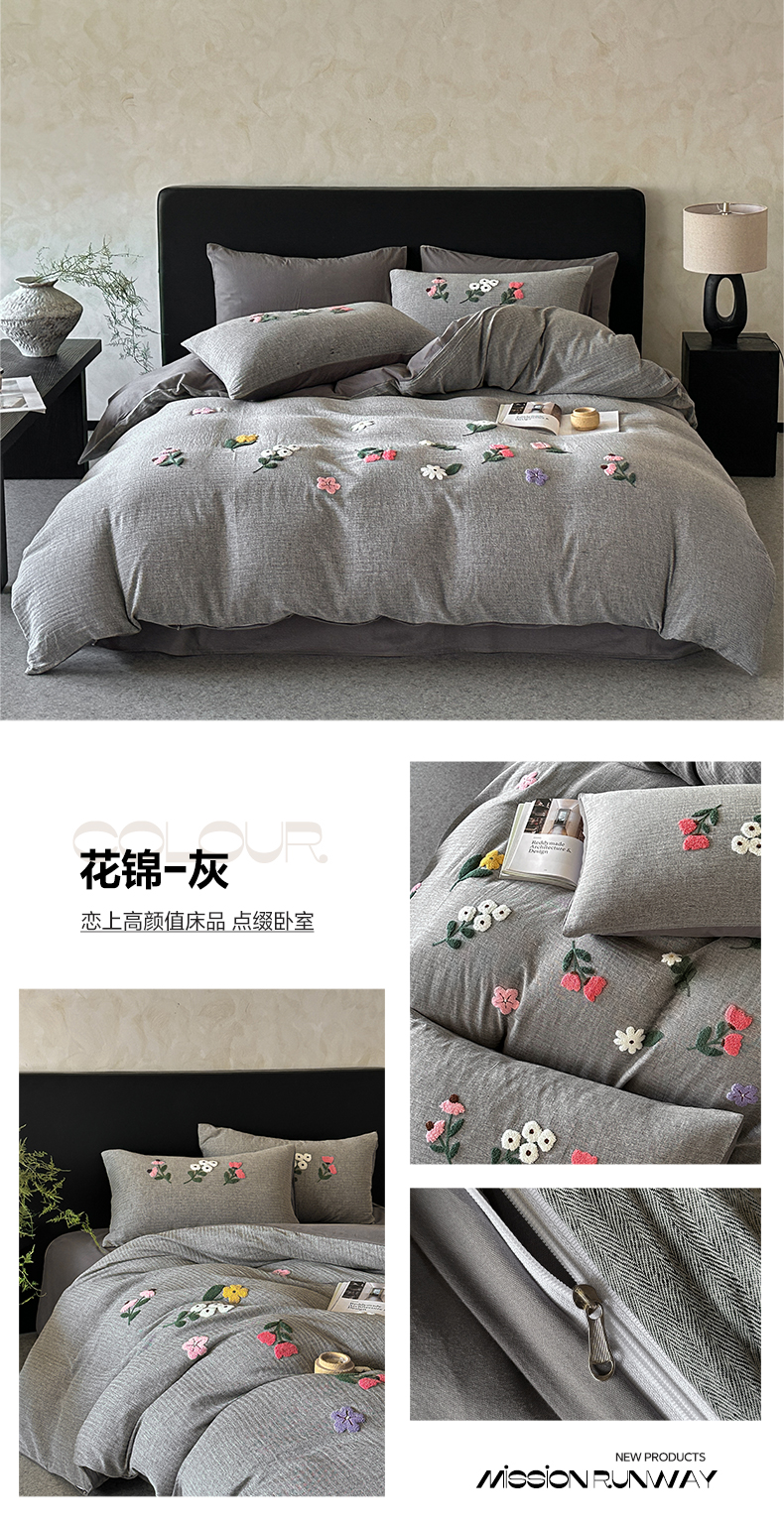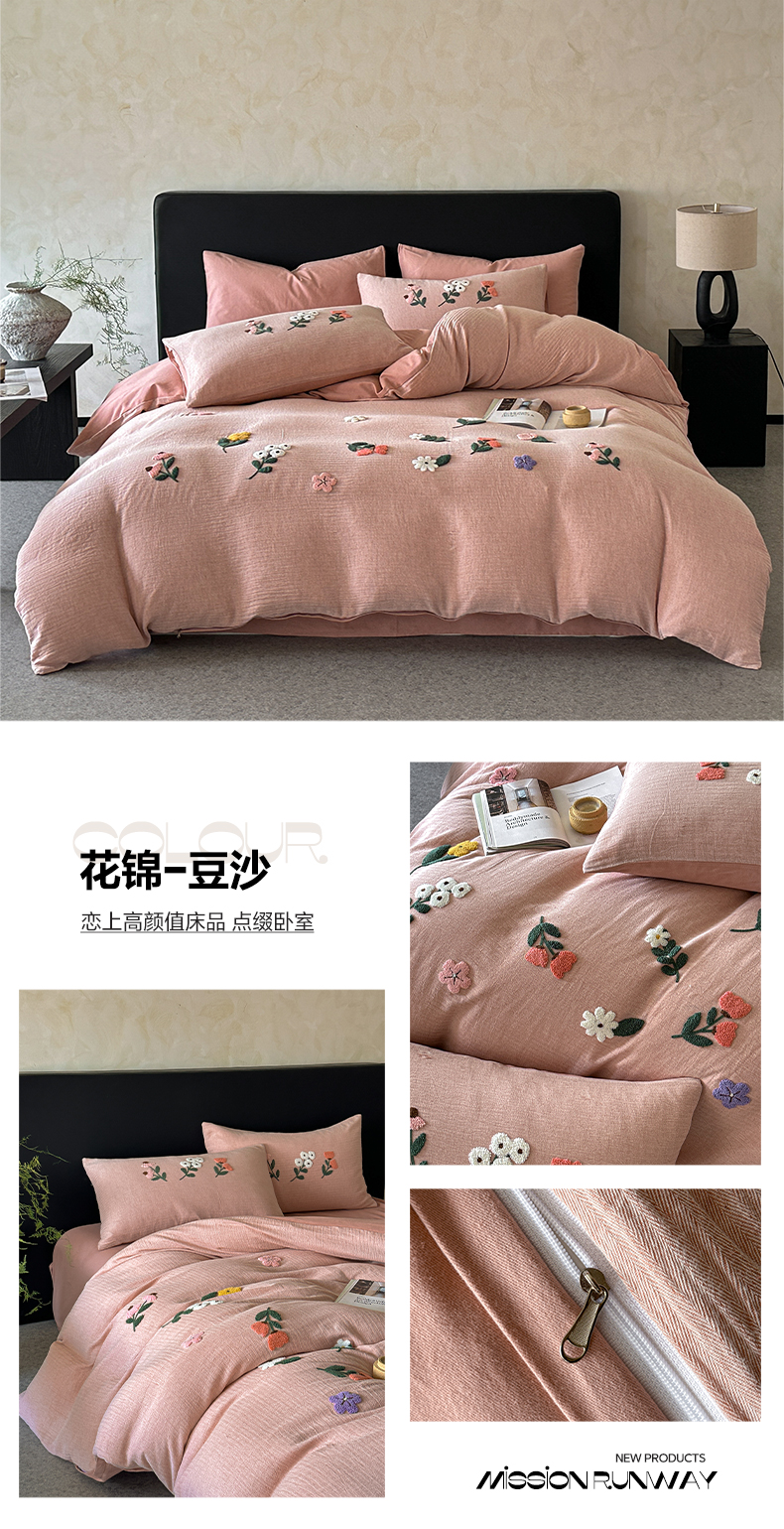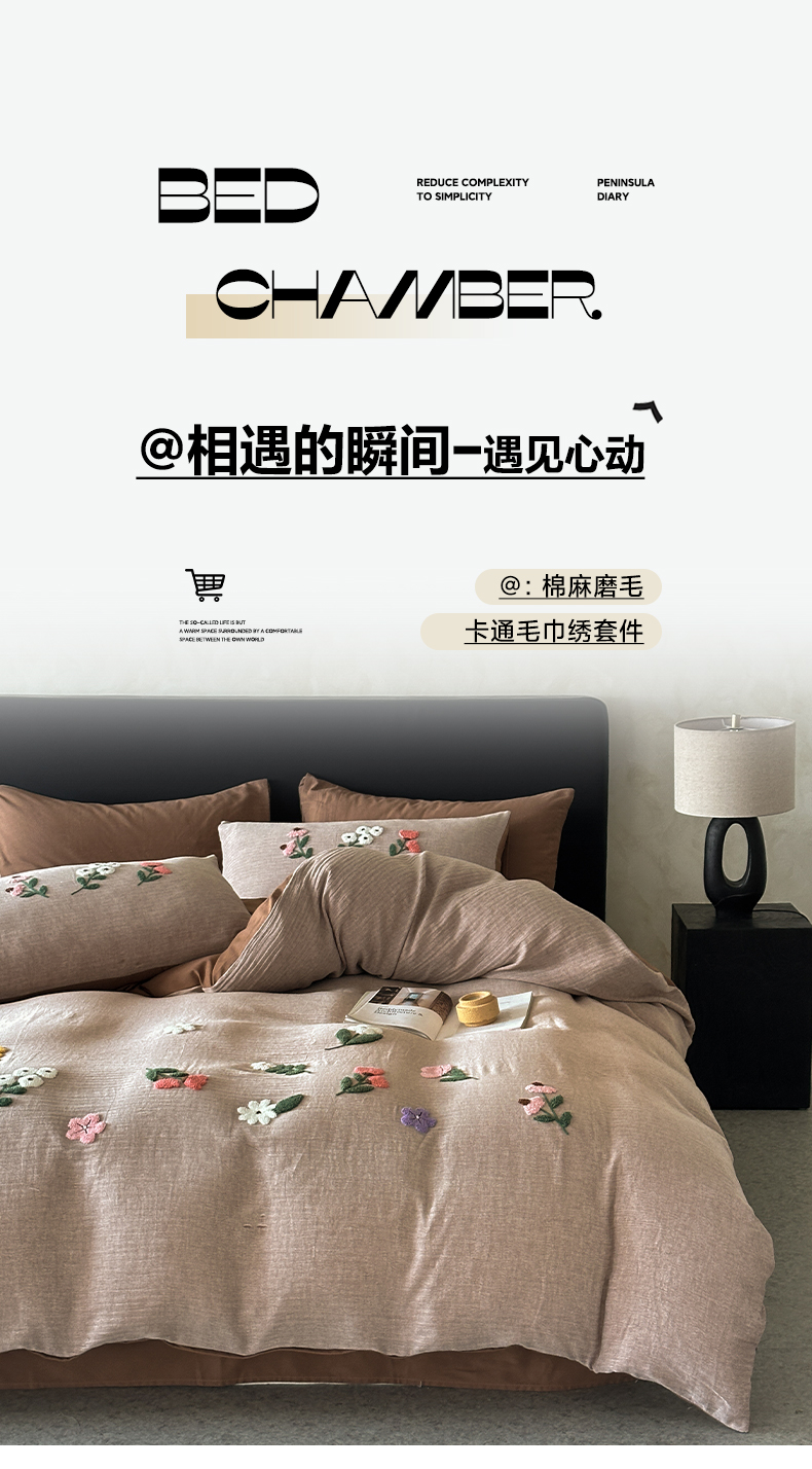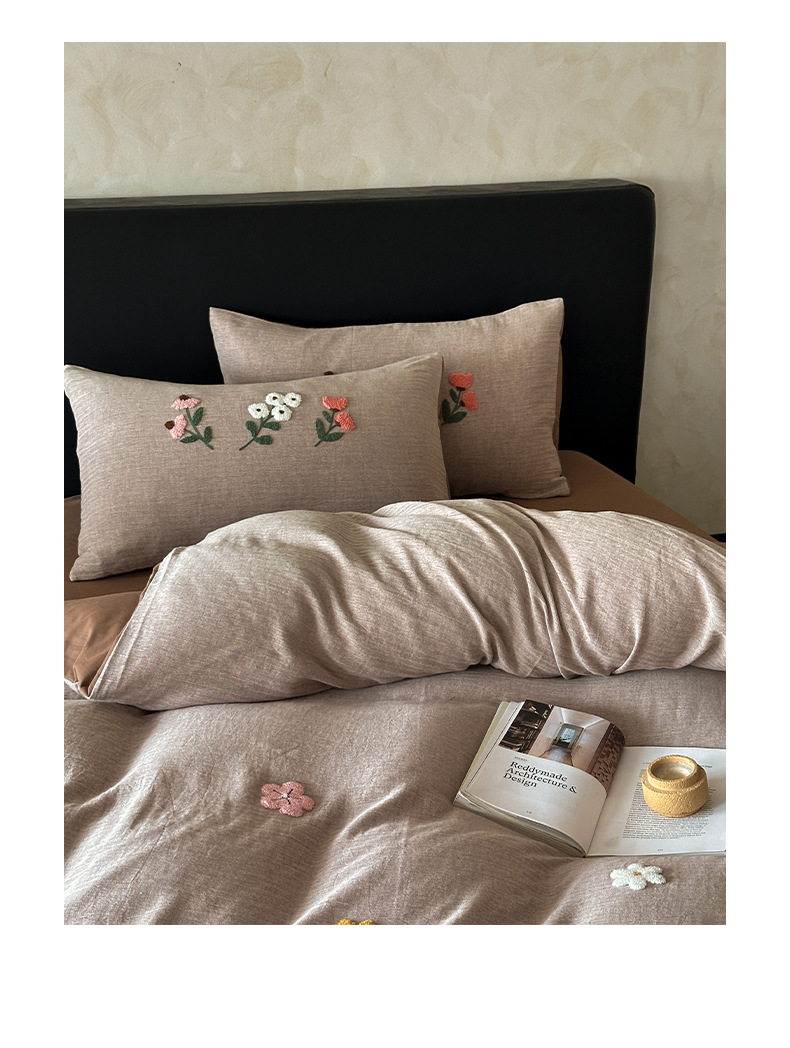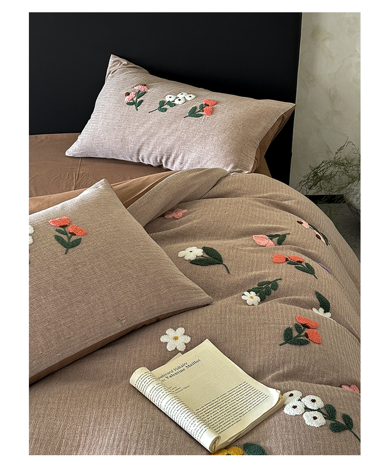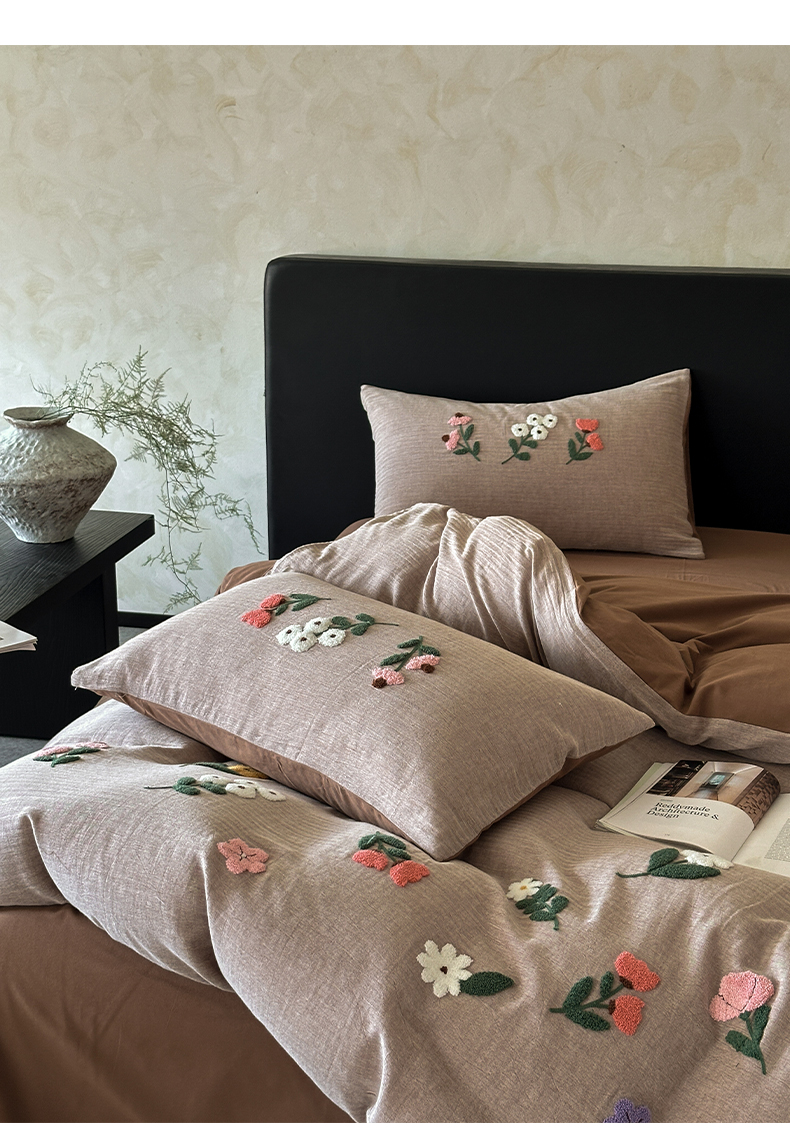 当前位置: 91家纺网 > 商品网购 > 床品套件 > 四件套 > 其它四件套 > 雅居纺家纺 2025新款棉麻+全棉磨毛毛巾绣四件套 花锦-咖啡