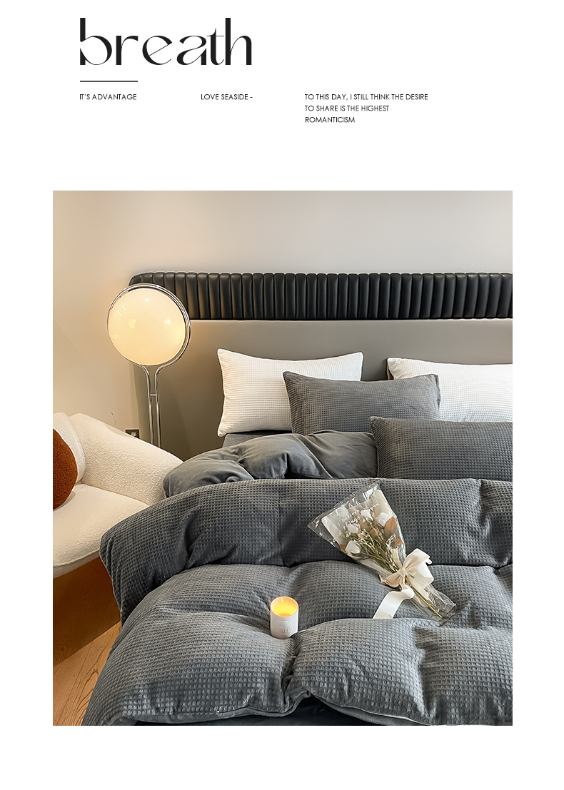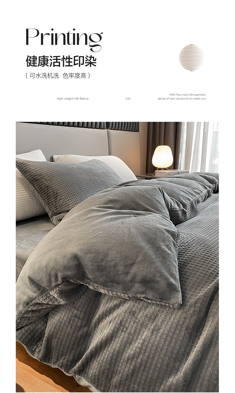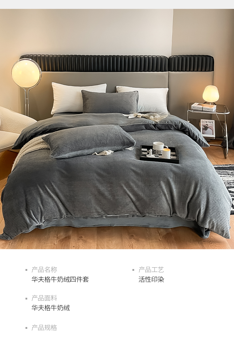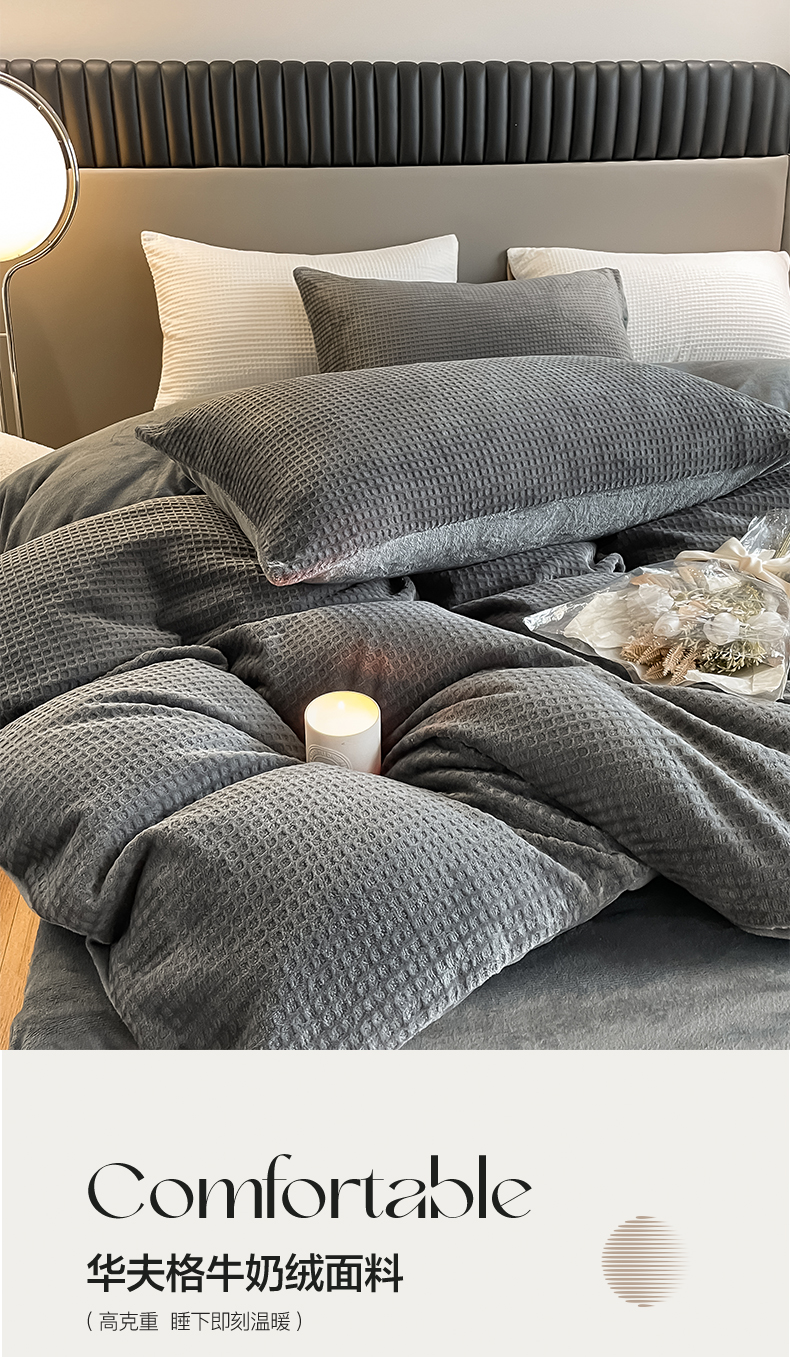 当前位置: 91家纺网 > 商品网购 > 床品套件 > 四件套 > 牛奶绒四件套 > 雅居纺家纺 2025新款雕花绒四件套-简约系列 华夫格绒-灰