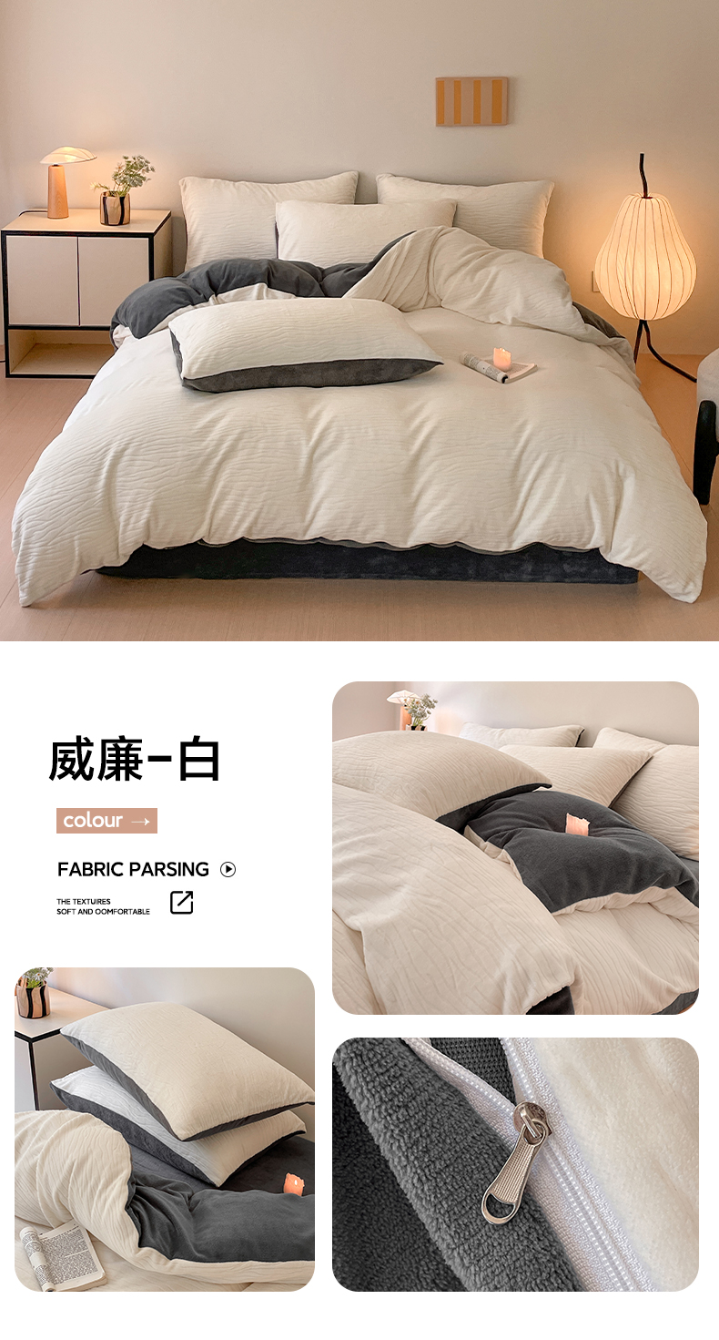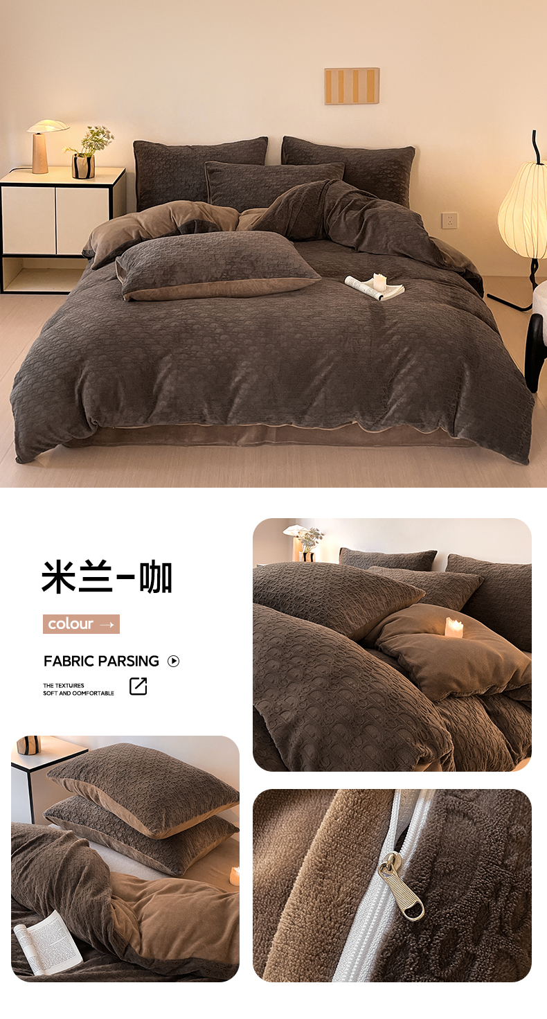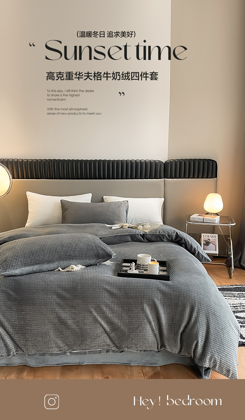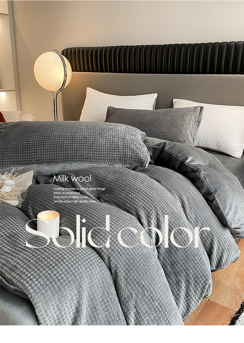 当前位置: 91家纺网 > 商品网购 > 床品套件 > 四件套 > 牛奶绒四件套 > 雅居纺家纺 2025新款雕花绒四件套-简约系列 华夫格绒-灰