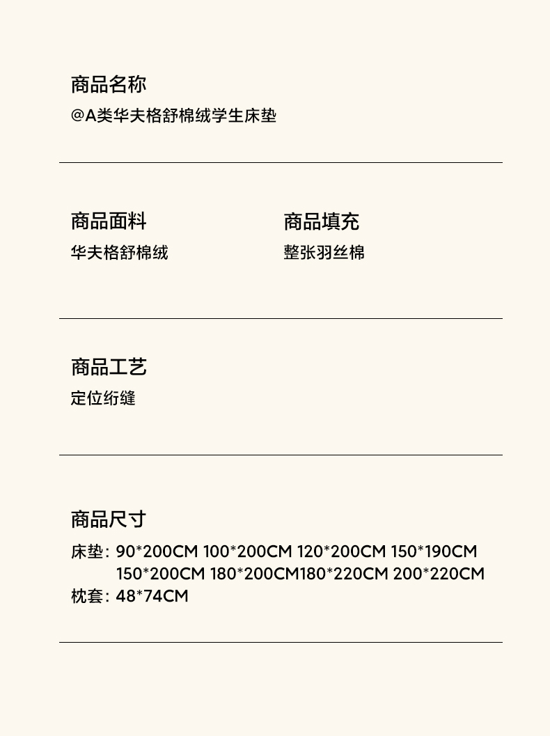 90x200cm 单床垫 | ¥24.00 |