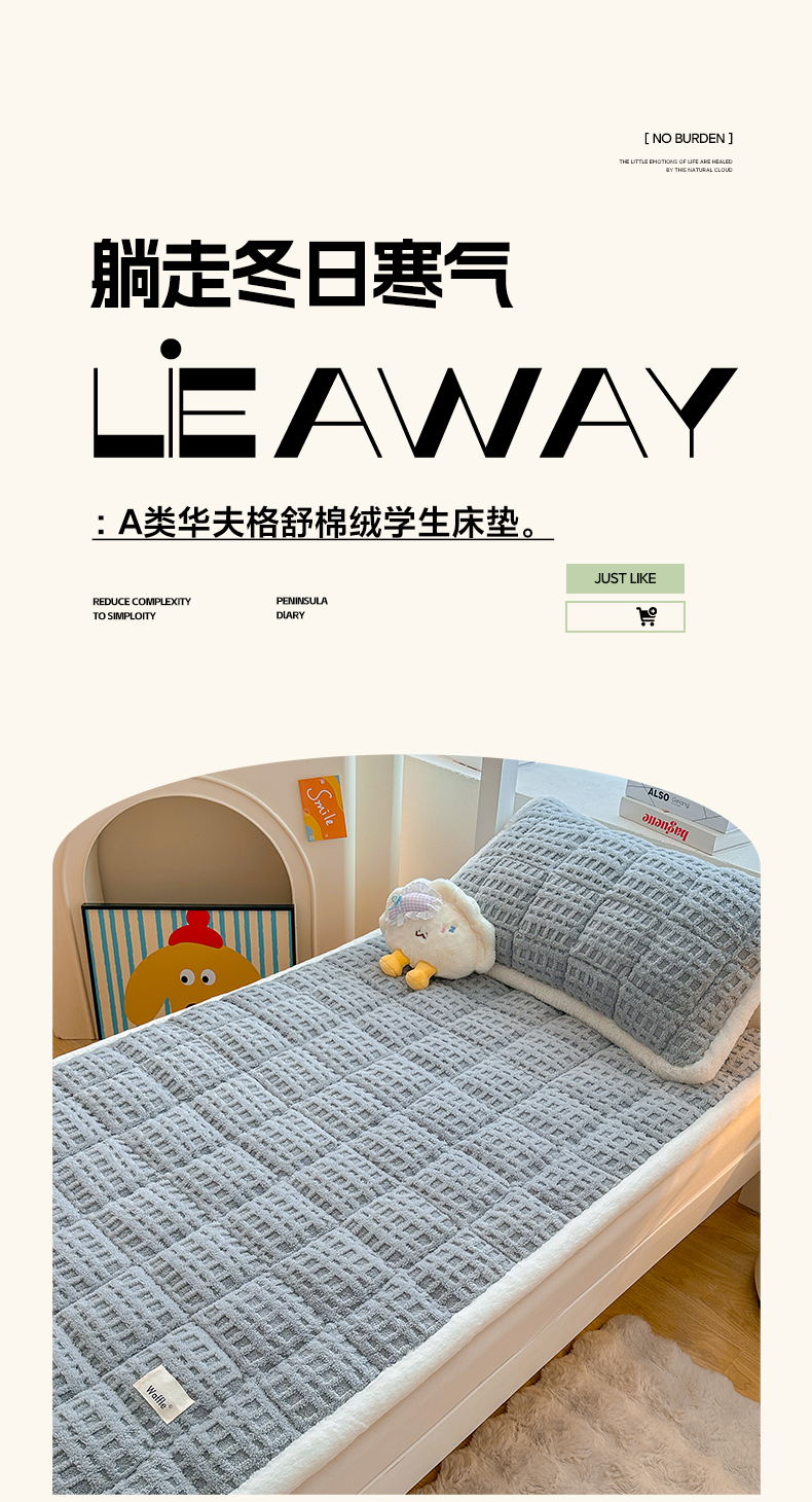 当前位置: 91家纺网 > 商品网购 > 床垫/床褥 > 羊羔绒床垫 > 喜居 2025新款A类华夫格舒棉绒床垫学生床垫床褥子 雅灰