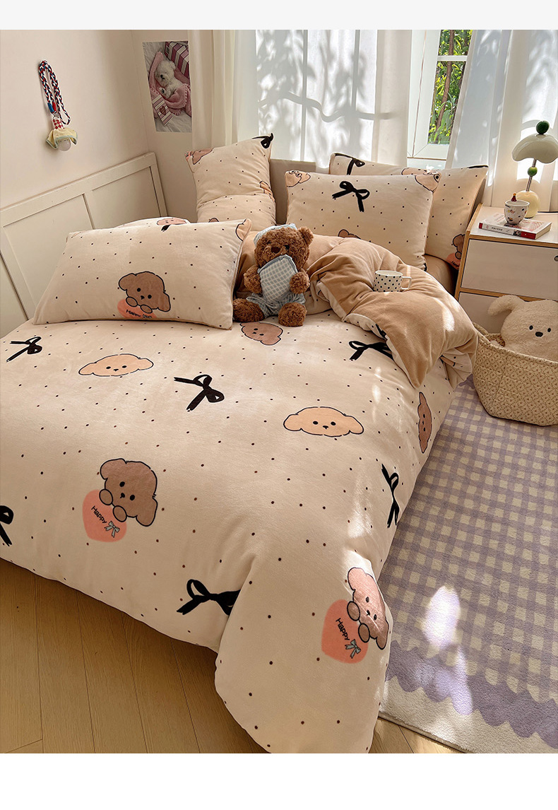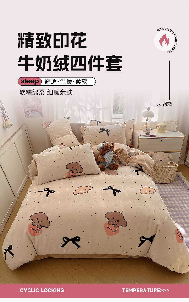 当前位置: 91家纺网 > 商品网购 > 床品套件 > 四件套 > 牛奶绒四件套 > 红嘴企鹅 2025新款精致印花牛奶绒四件套 牛奶绒-舞蝶结狗狗