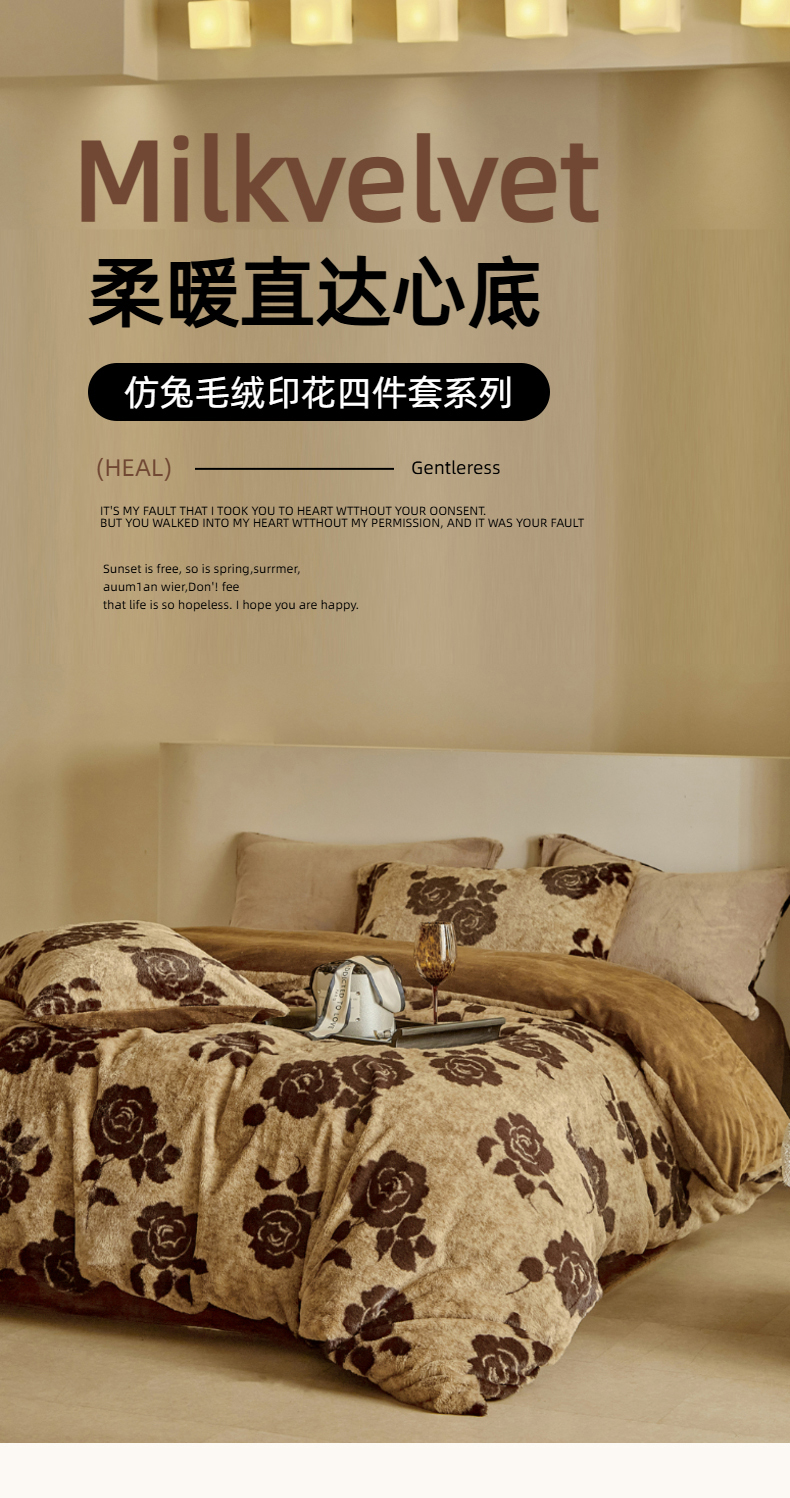 当前位置: 91家纺网 > 商品网购 > 床品套件 > 四件套 > 其它四件套 > 缘生活 2025新款仿兔毛绒印花四件套 仿兔毛绒 玫瑰-卡其