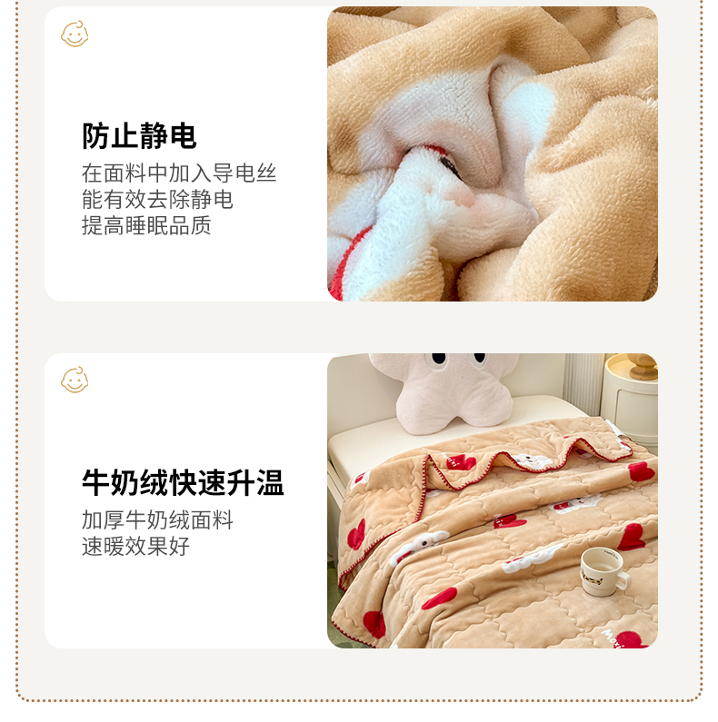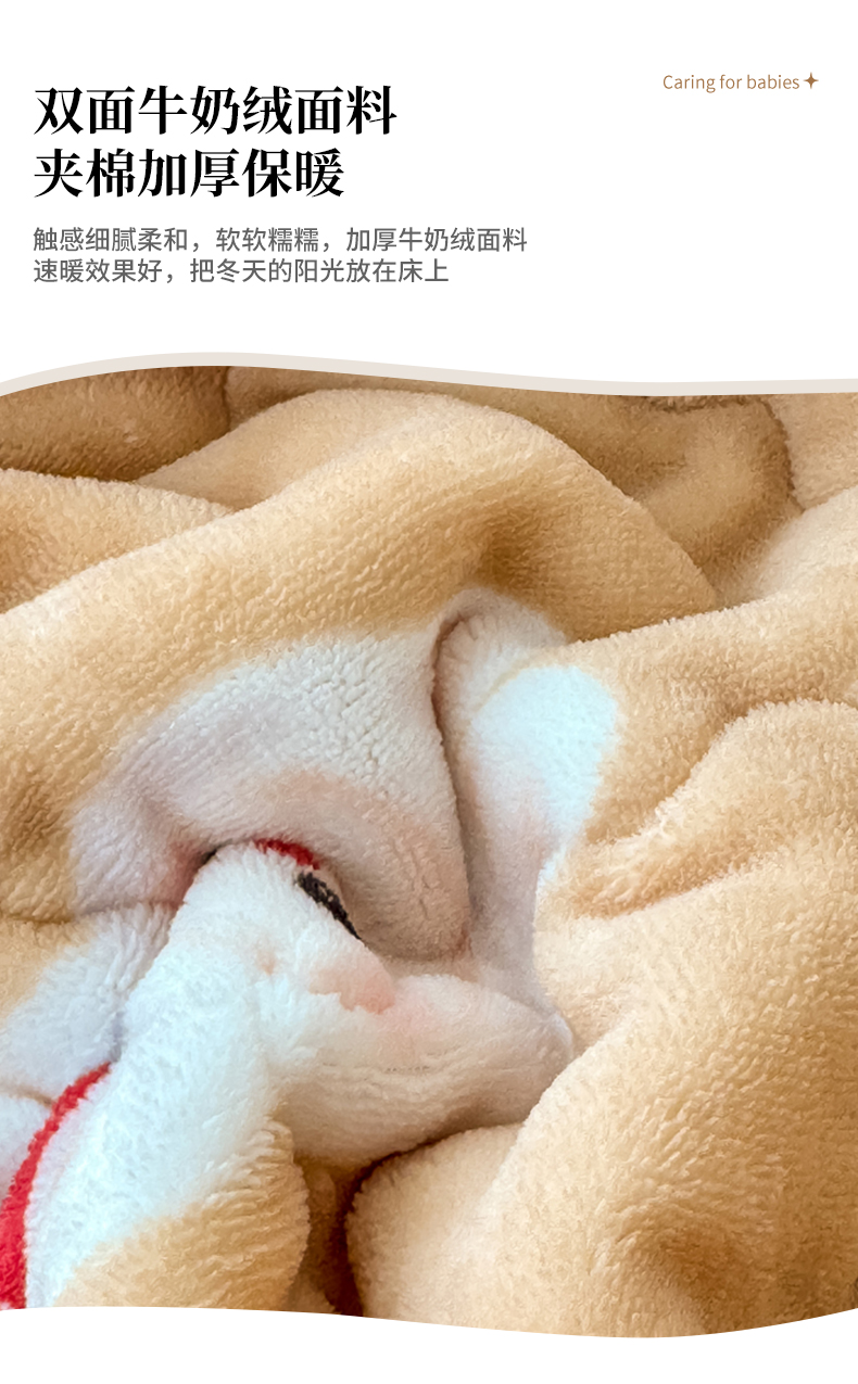 商品名称:禧缘家纺(原梦想家) 2025秋冬新款儿童加厚三层夹棉牛奶绒毛毯冬季双面绒保暖盖毯 萌趣伙伴