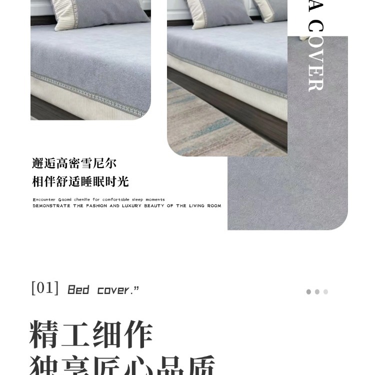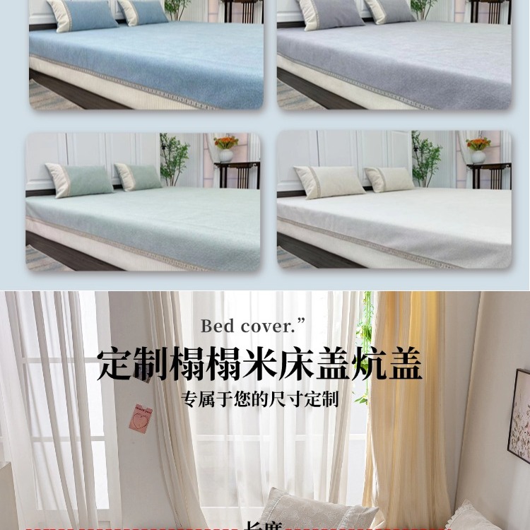商品名称:(总)暖木杨 2025新款雪尼尔榻榻米床盖炕盖防滑床盖柔软亲肤简约可定制尺寸-奶茶