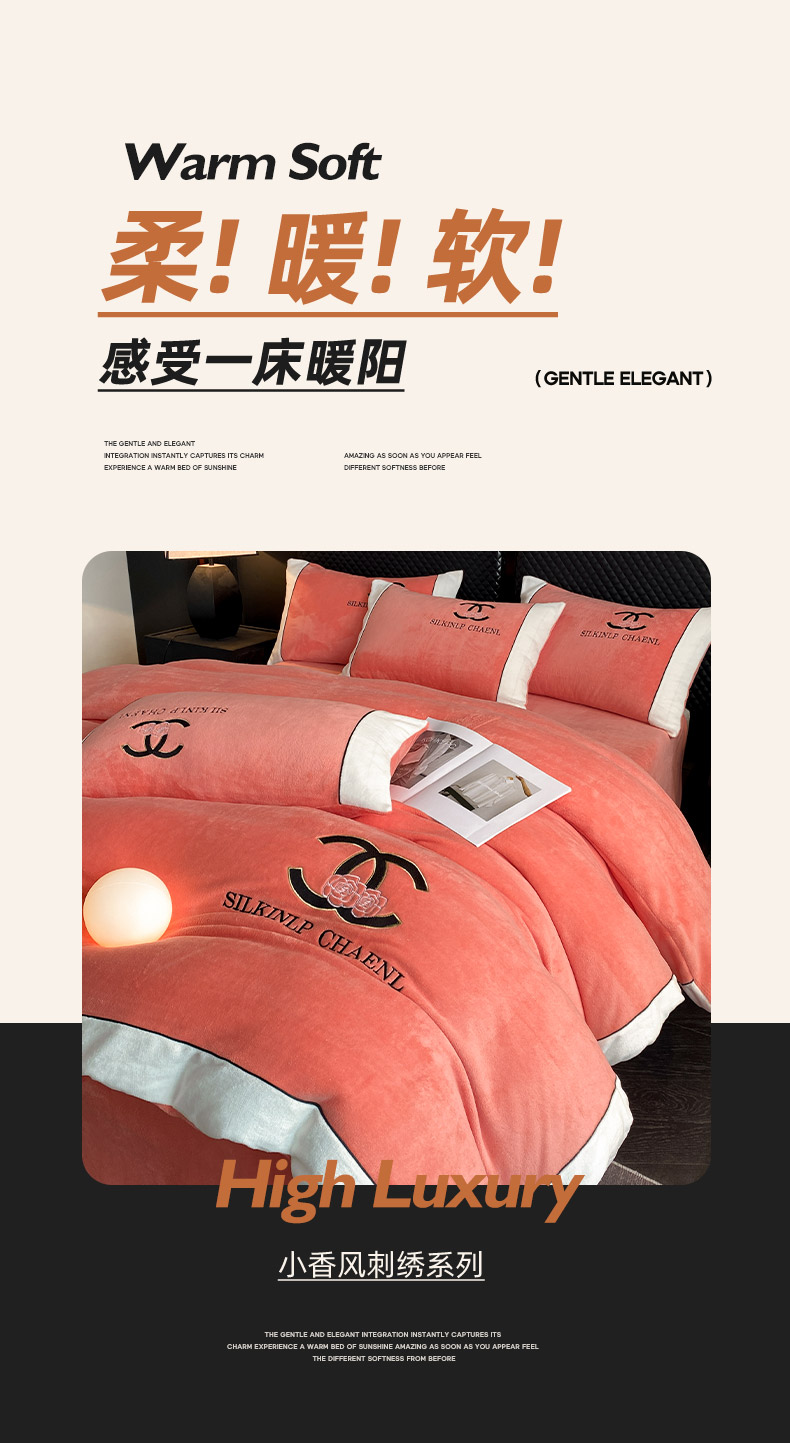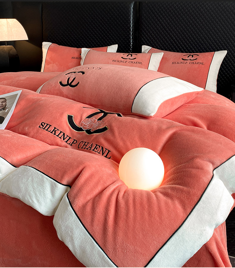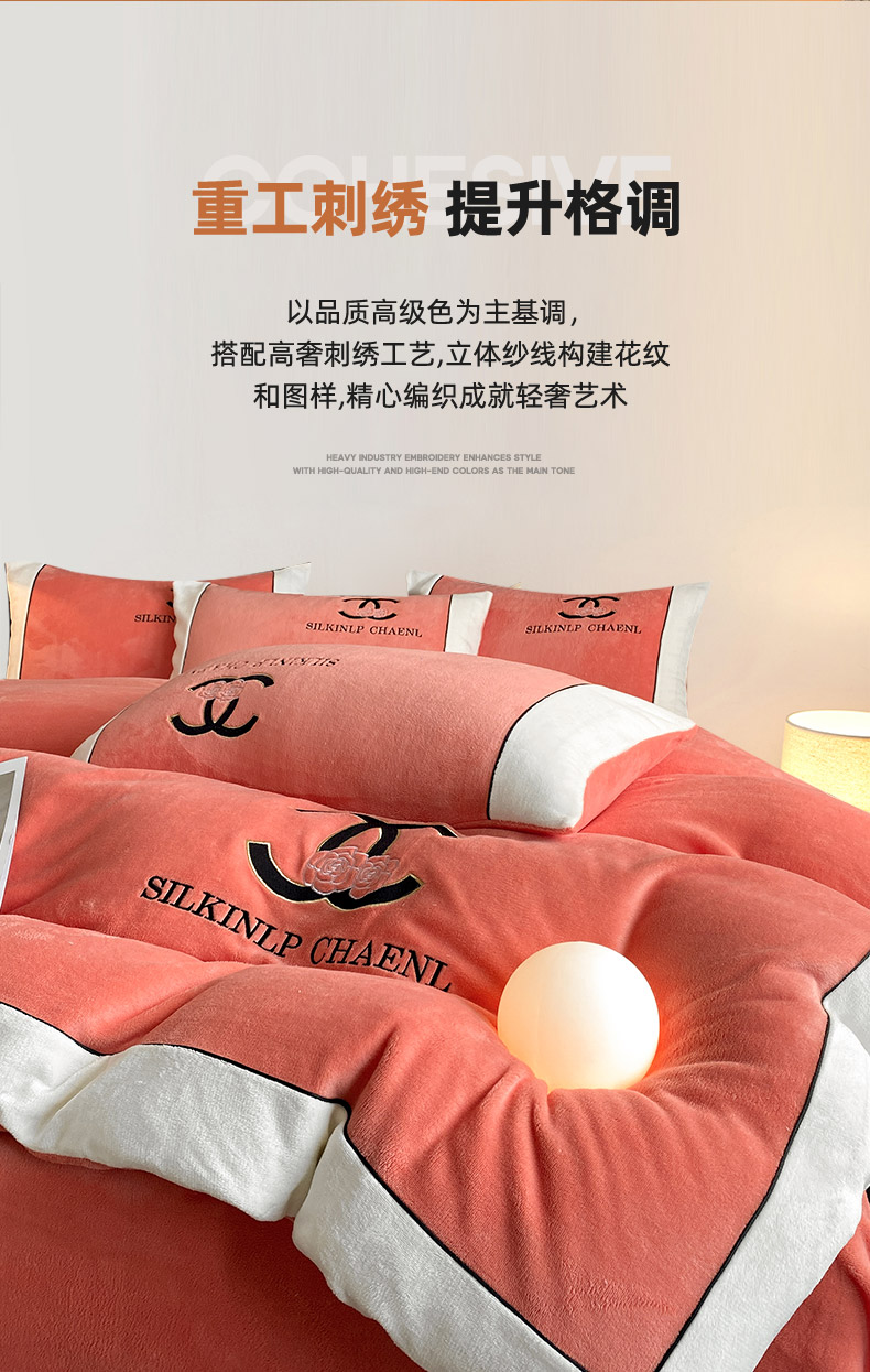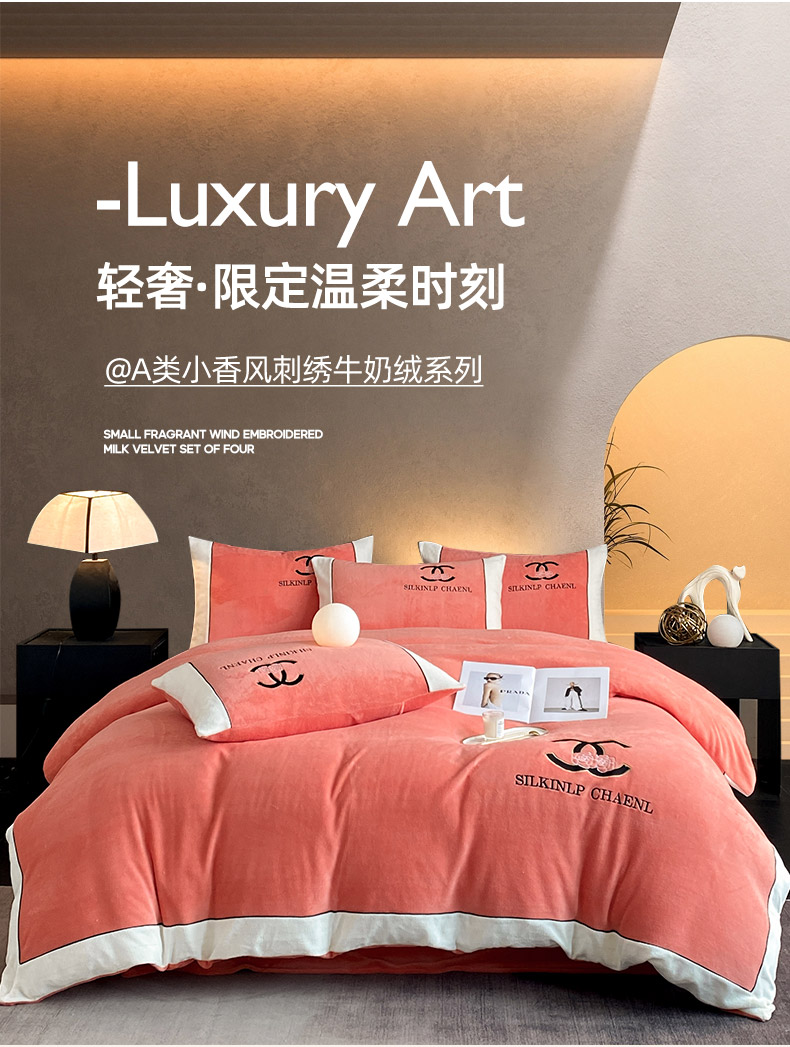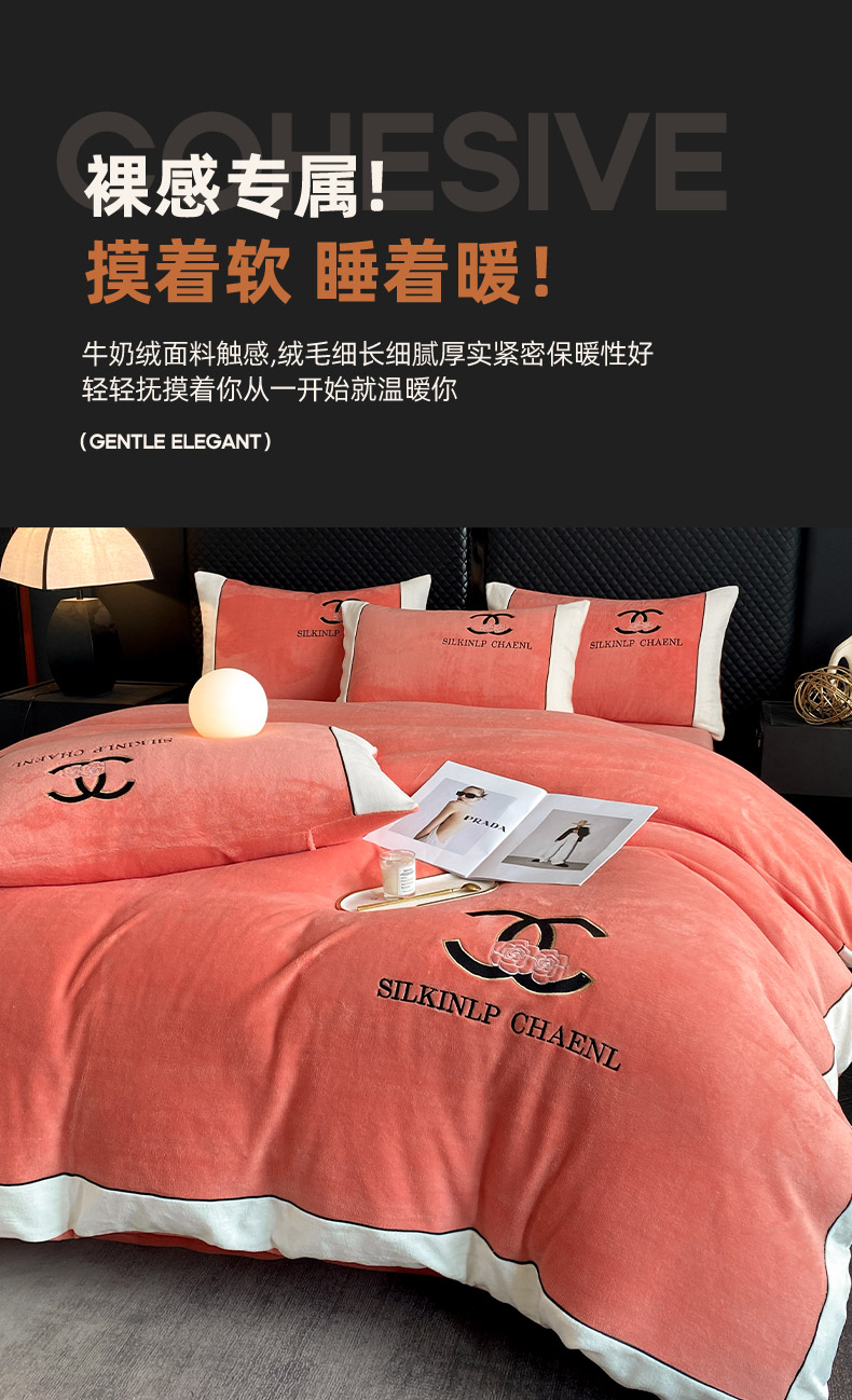 绒世界 2025秋冬小香风香奈系列牛奶绒四件套 爱马仕橙