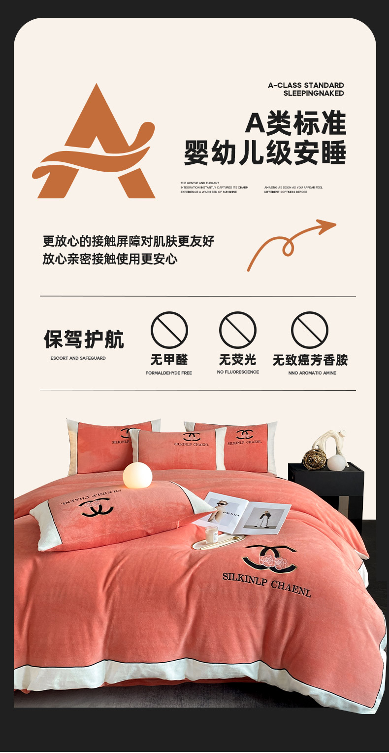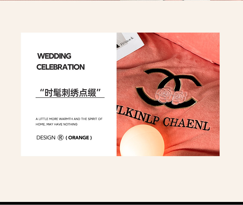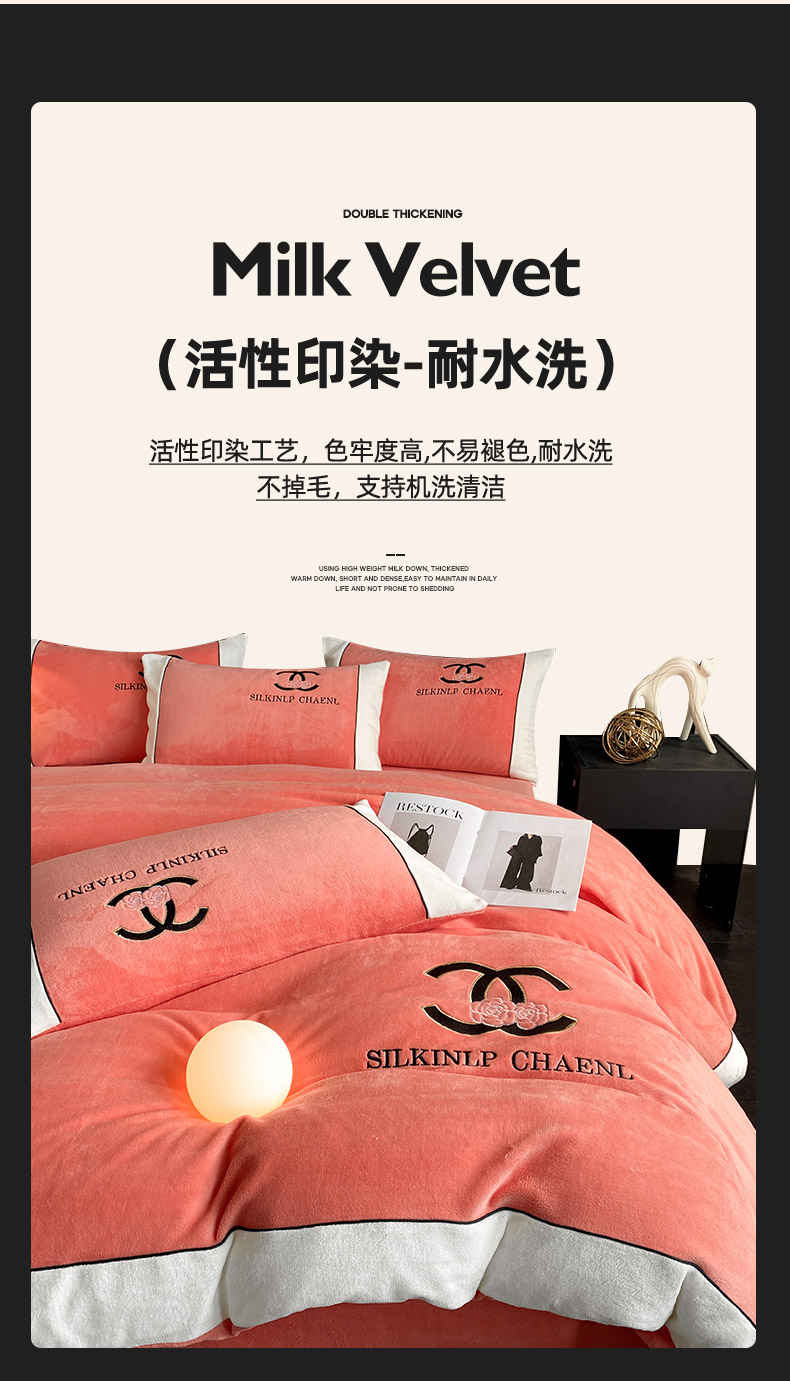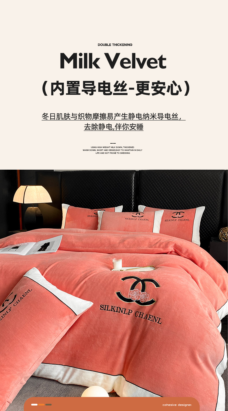 绒世界 2025秋冬小香风香奈系列牛奶绒四件套 爱马仕橙
