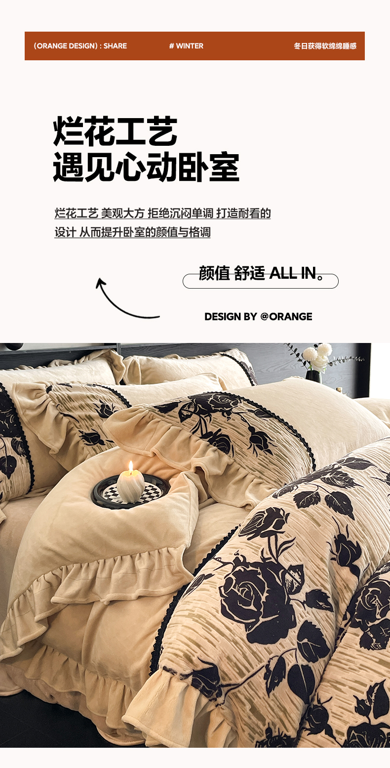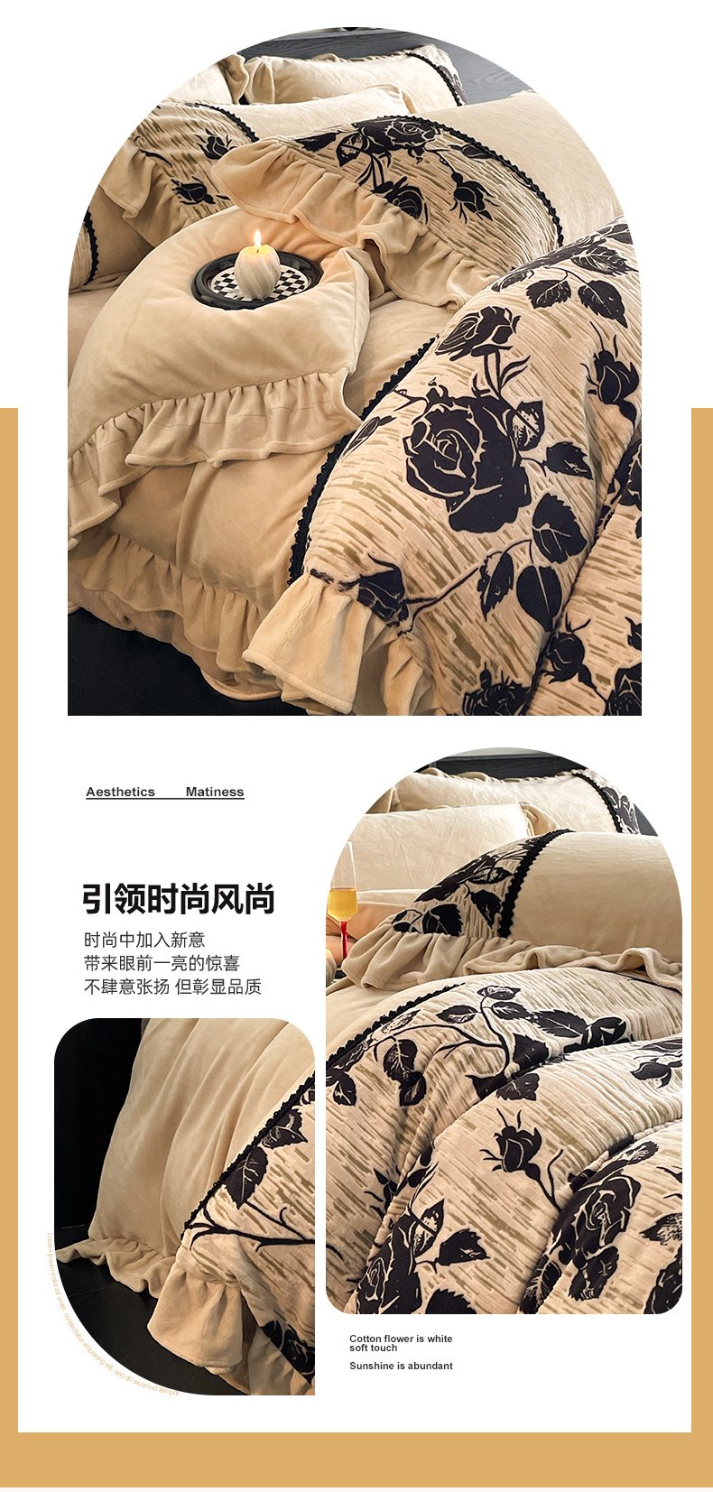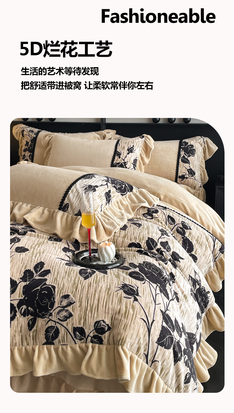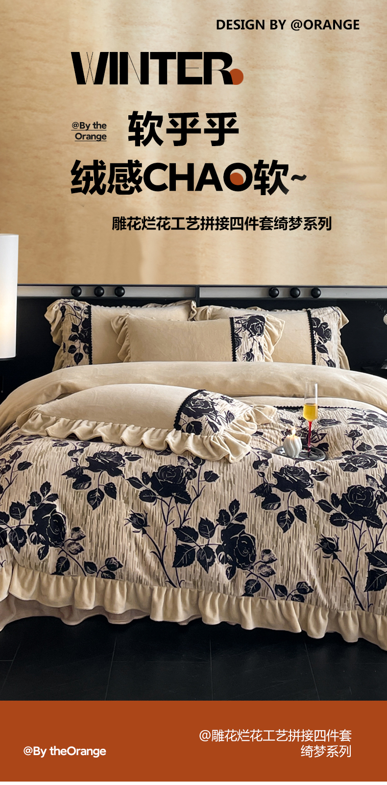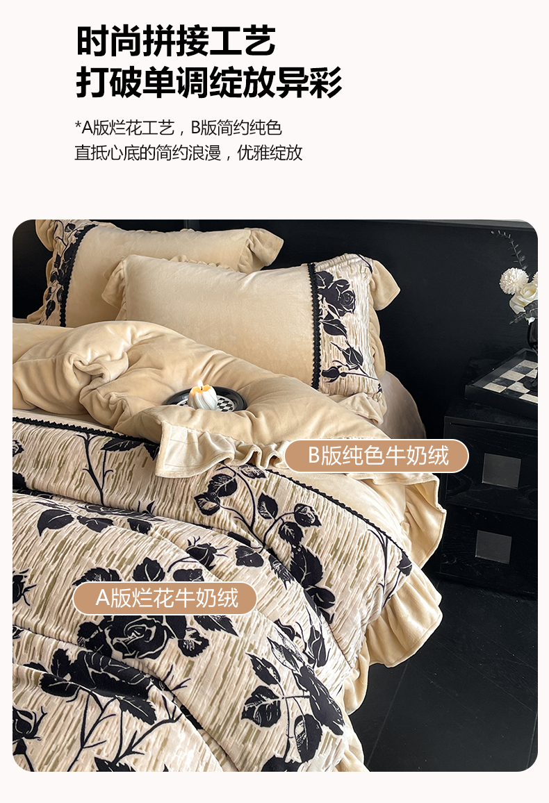 商品名称:慕木家纺 2025新款A类高克重高端雕花烂花AB版工艺款拼接四件套绮梦系列(直播热款) 玫瑰眠窝