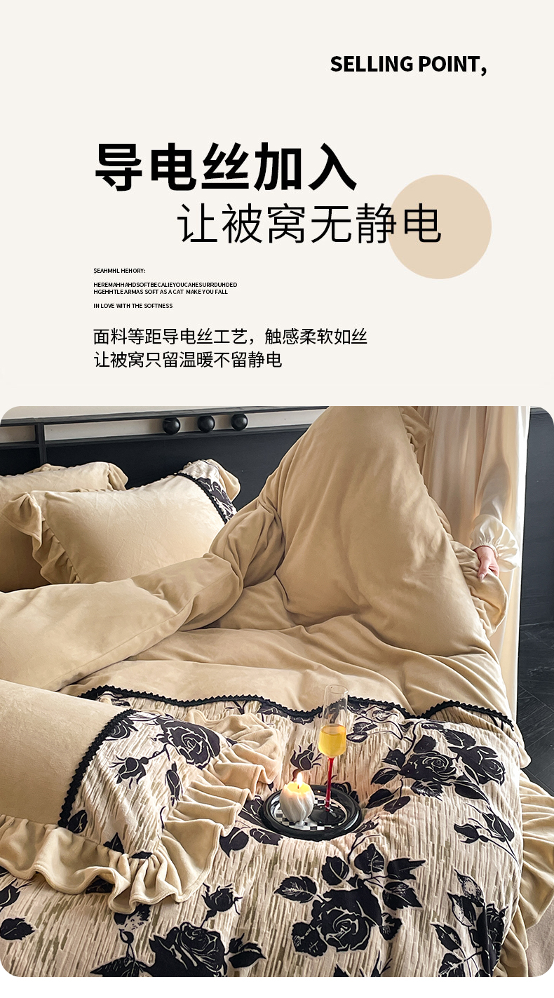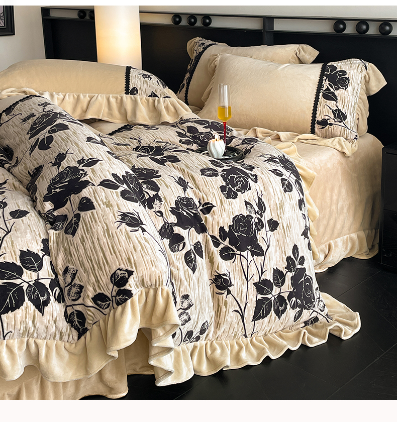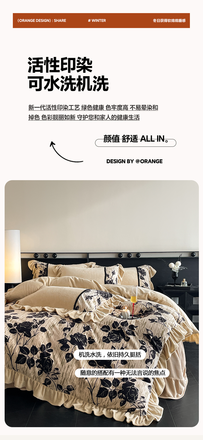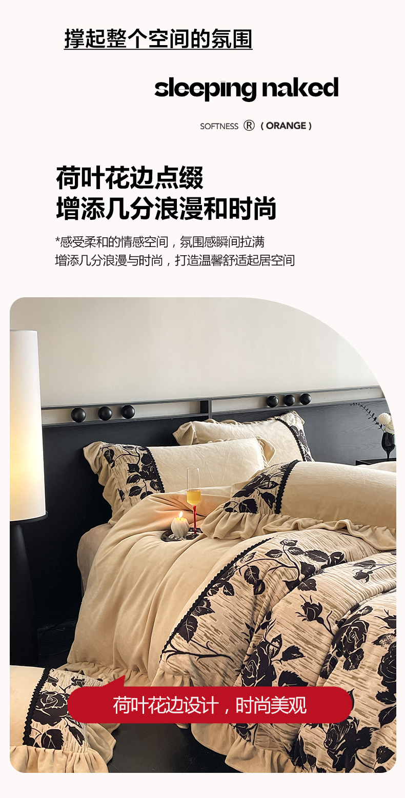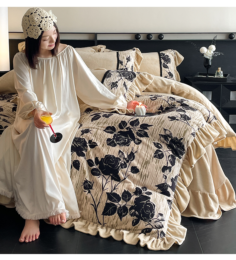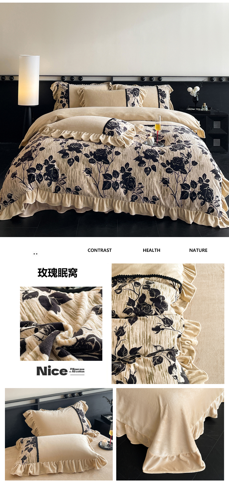 商品名称:慕木家纺 2025新款A类高克重高端雕花烂花AB版工艺款拼接四件套绮梦系列(直播热款) 玫瑰眠窝