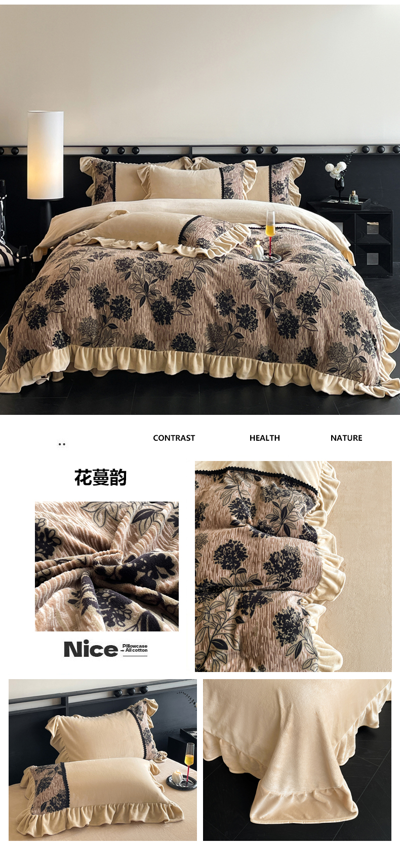 (总)慕木家纺 2025新款A类高克重高端雕花绒工艺款刺绣拼接四件套锦绣芳华系列(直播热款)提供买家秀,锦绣芳华-月岩灰,锦绣芳华-卡其,锦绣芳华-玉粉