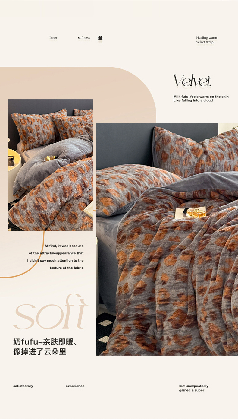 当前位置: 91家纺网 > 商品网购 > 床品套件 > 四件套 > 其它四件套 > 眠博士 2025新款轻奢款美拉德印花兔兔绒四件套 豹点深灰