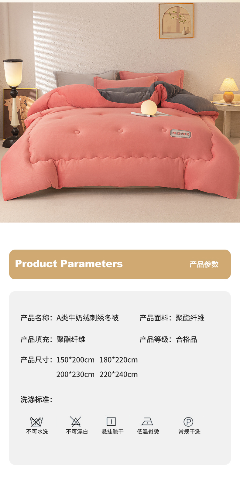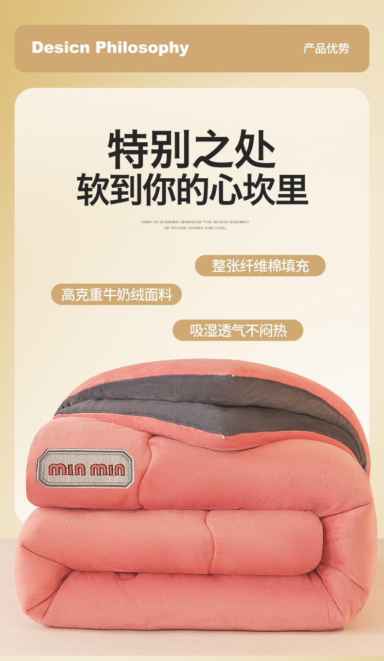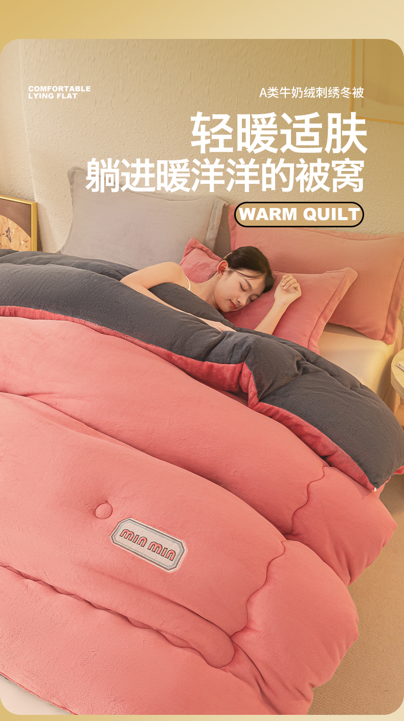 • 91家纺网 家纺一手货源 找家纺 美澳家纺 2025新款牛奶绒刺绣加厚保暖纯色冬被 被子被芯(可定制尺寸)(跨境外贸) MI-豆沙