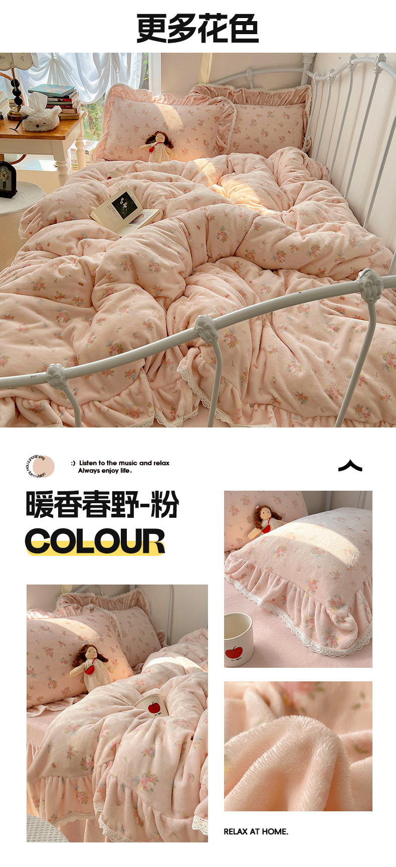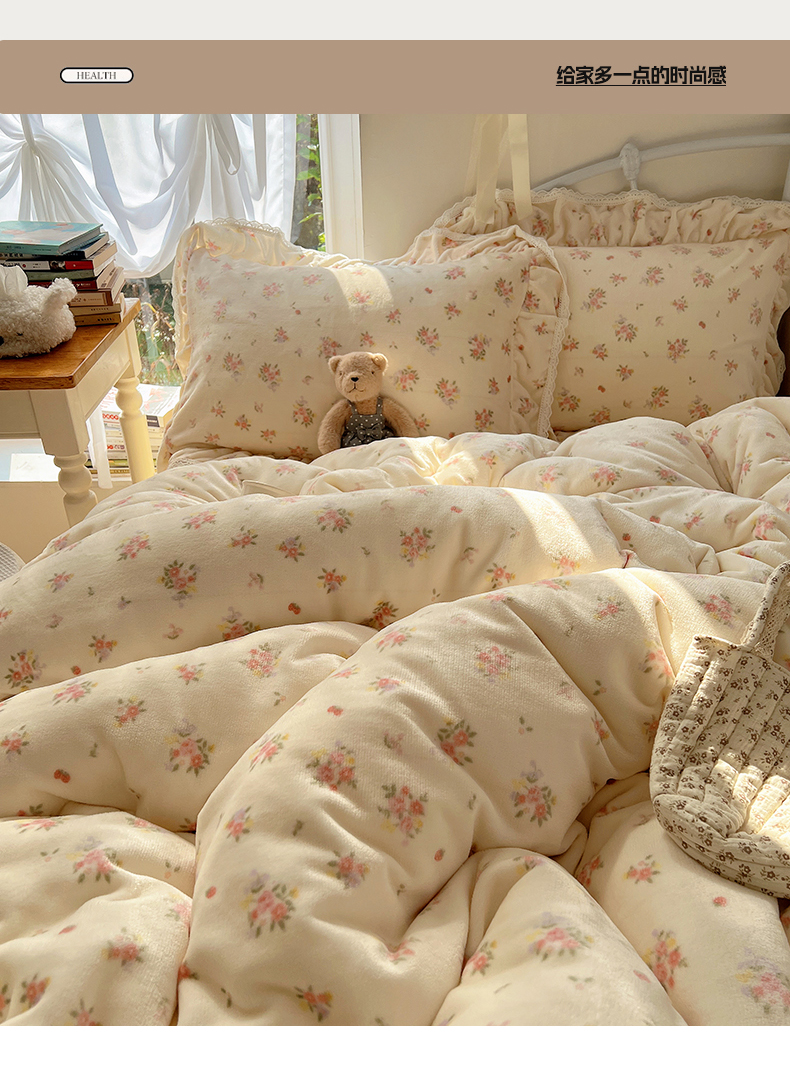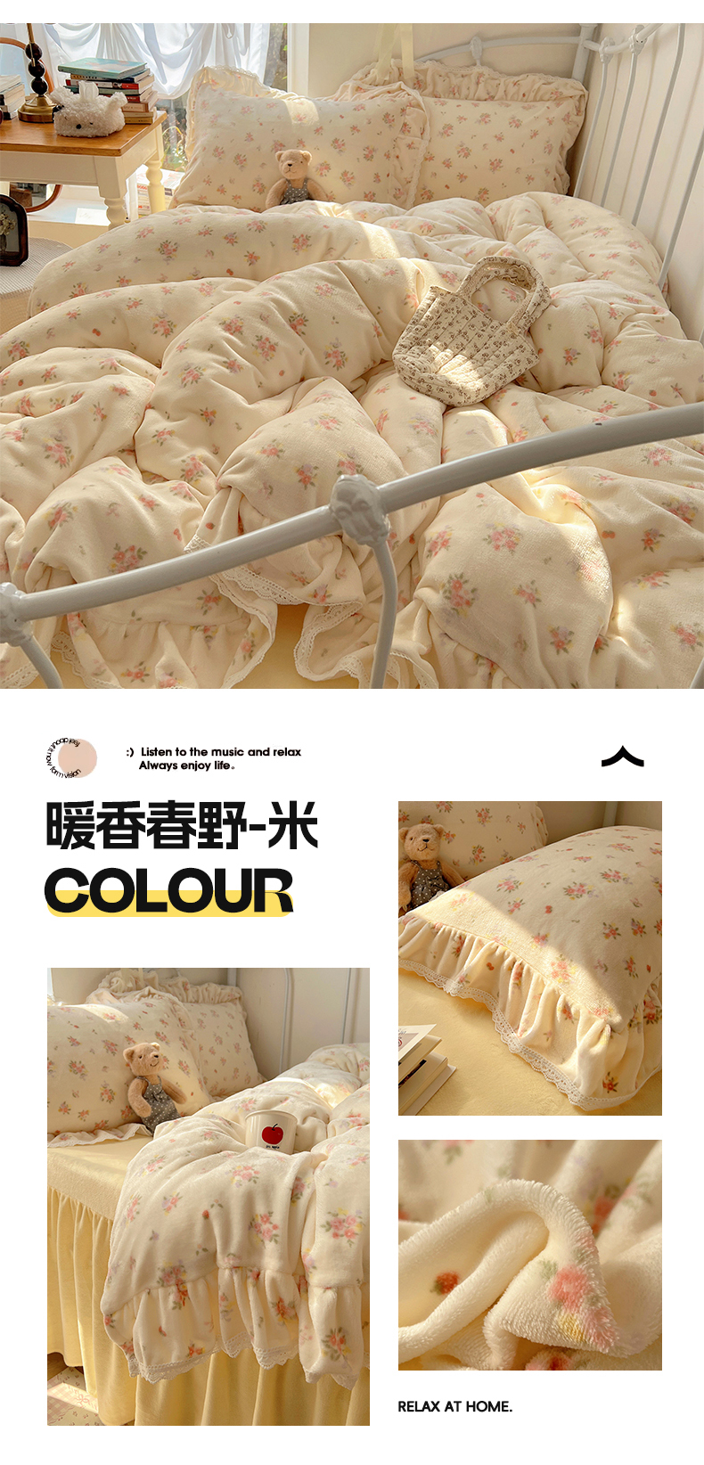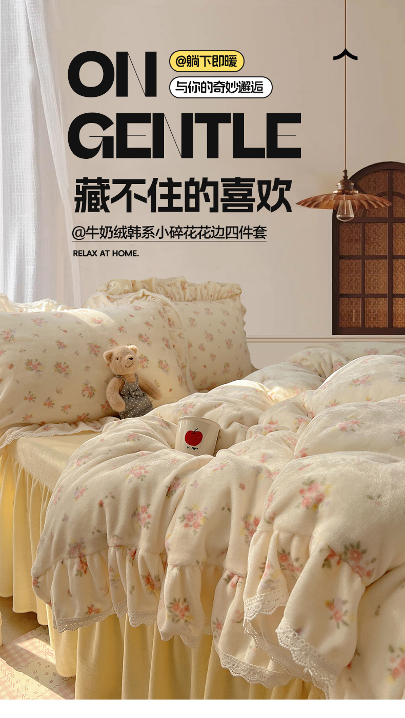 当前位置: 91家纺网 > 商品网购 > 床品套件 > 四件套 > 牛奶绒四件套 > (总)轻奢坊 2025新款牛奶绒韩系小碎花花边款-暖香春野