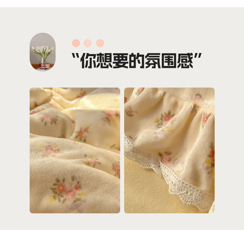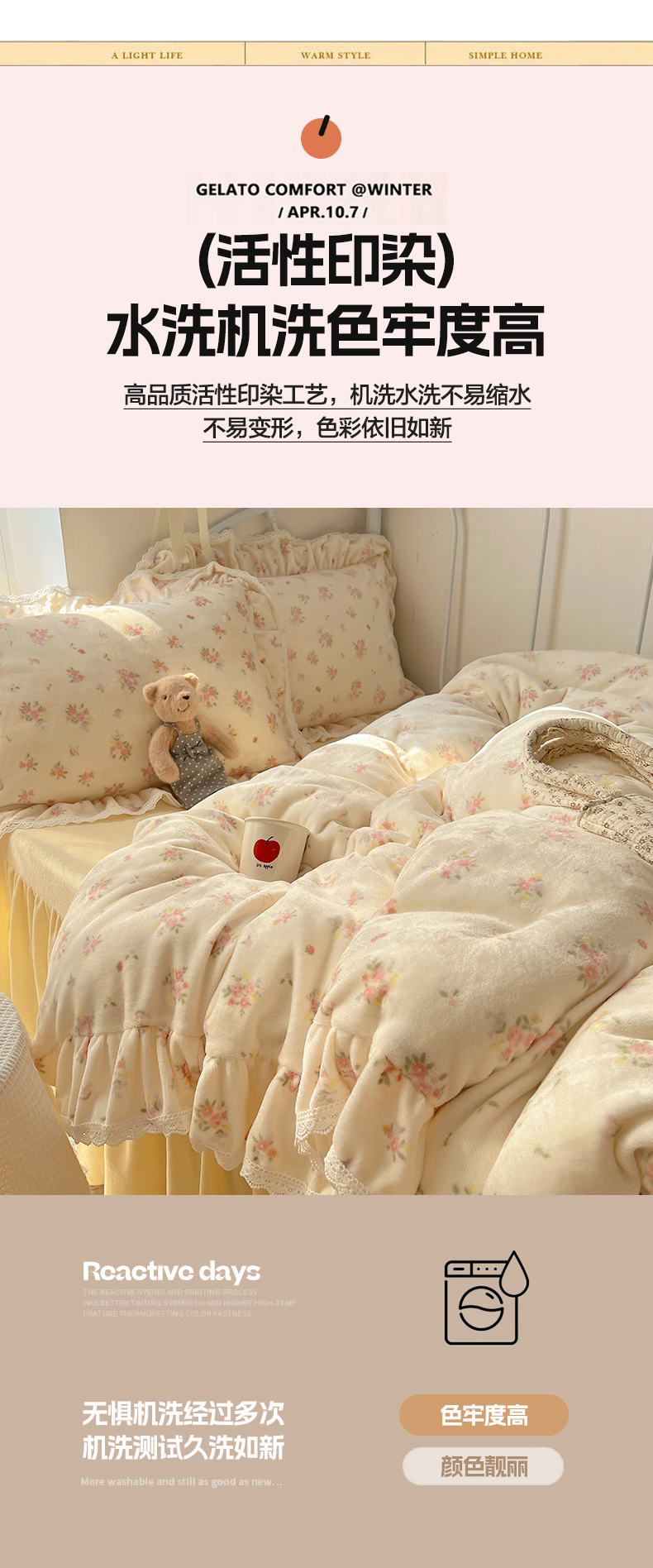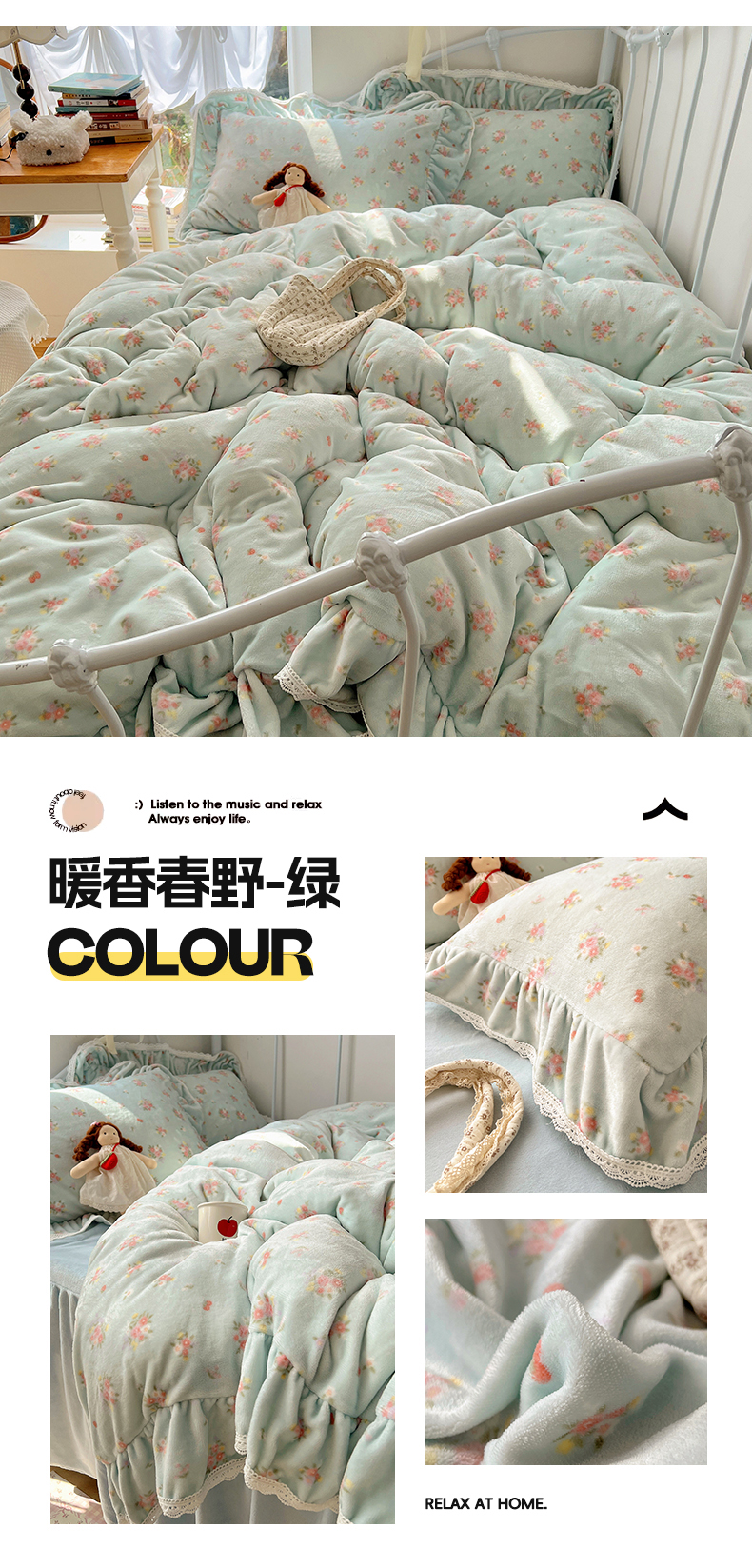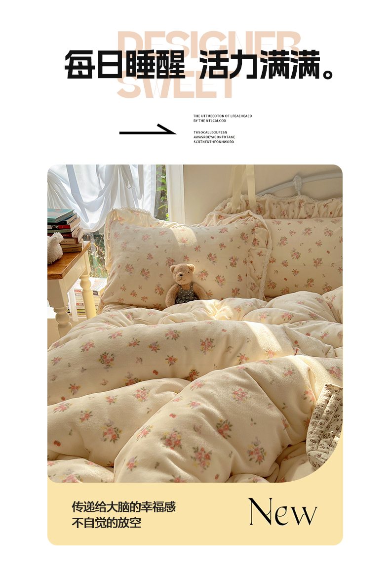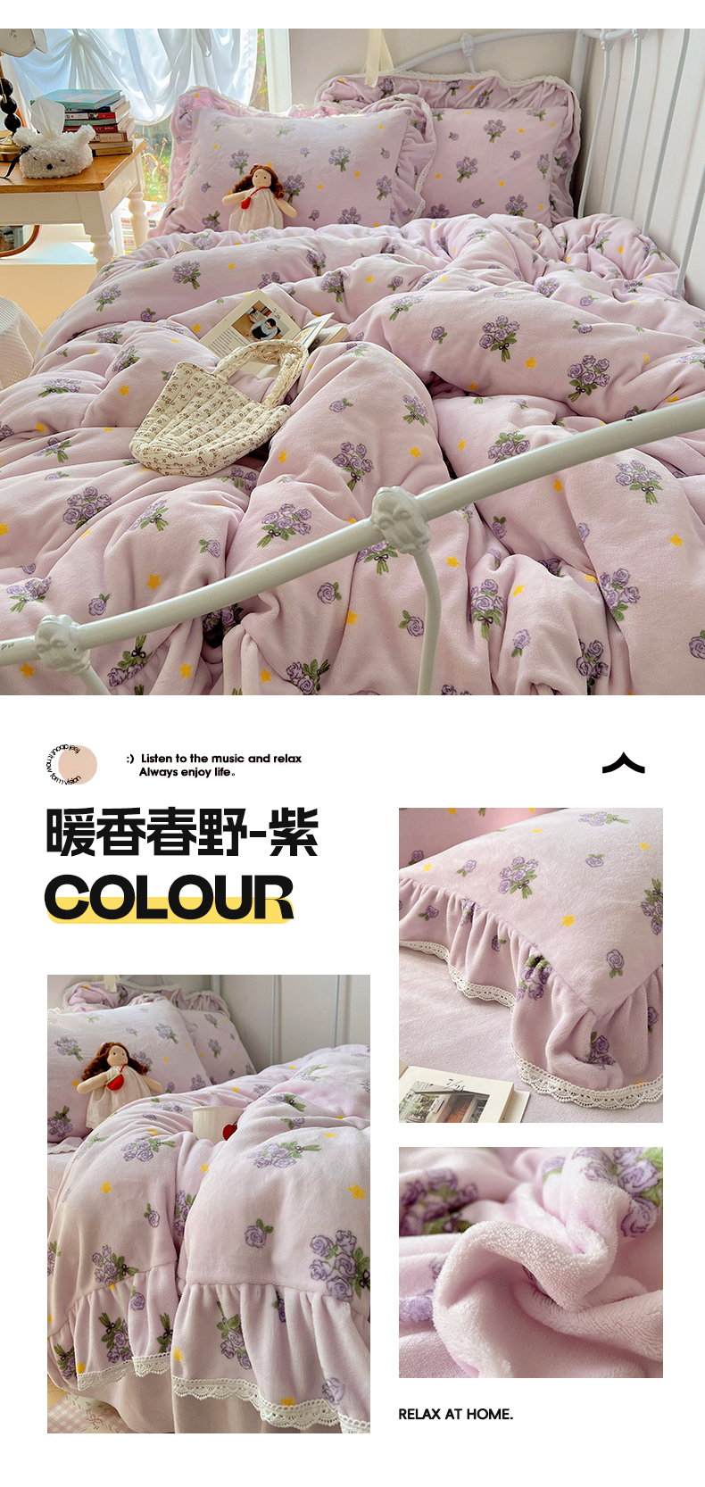当前位置: 91家纺网 > 商品网购 > 床品套件 > 四件套 > 牛奶绒四件套 > (总)轻奢坊 2025新款牛奶绒韩系小碎花花边款-暖香春野