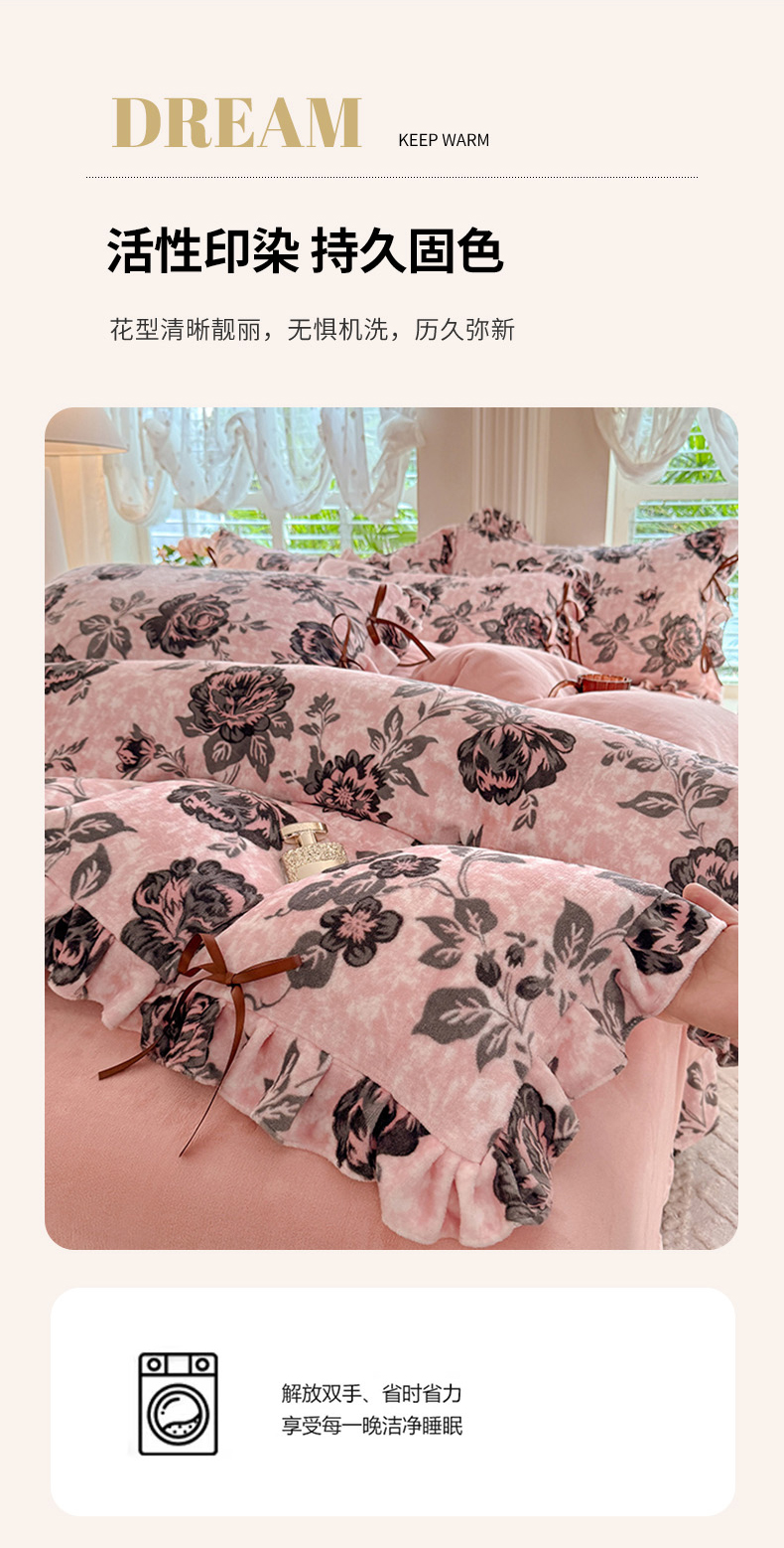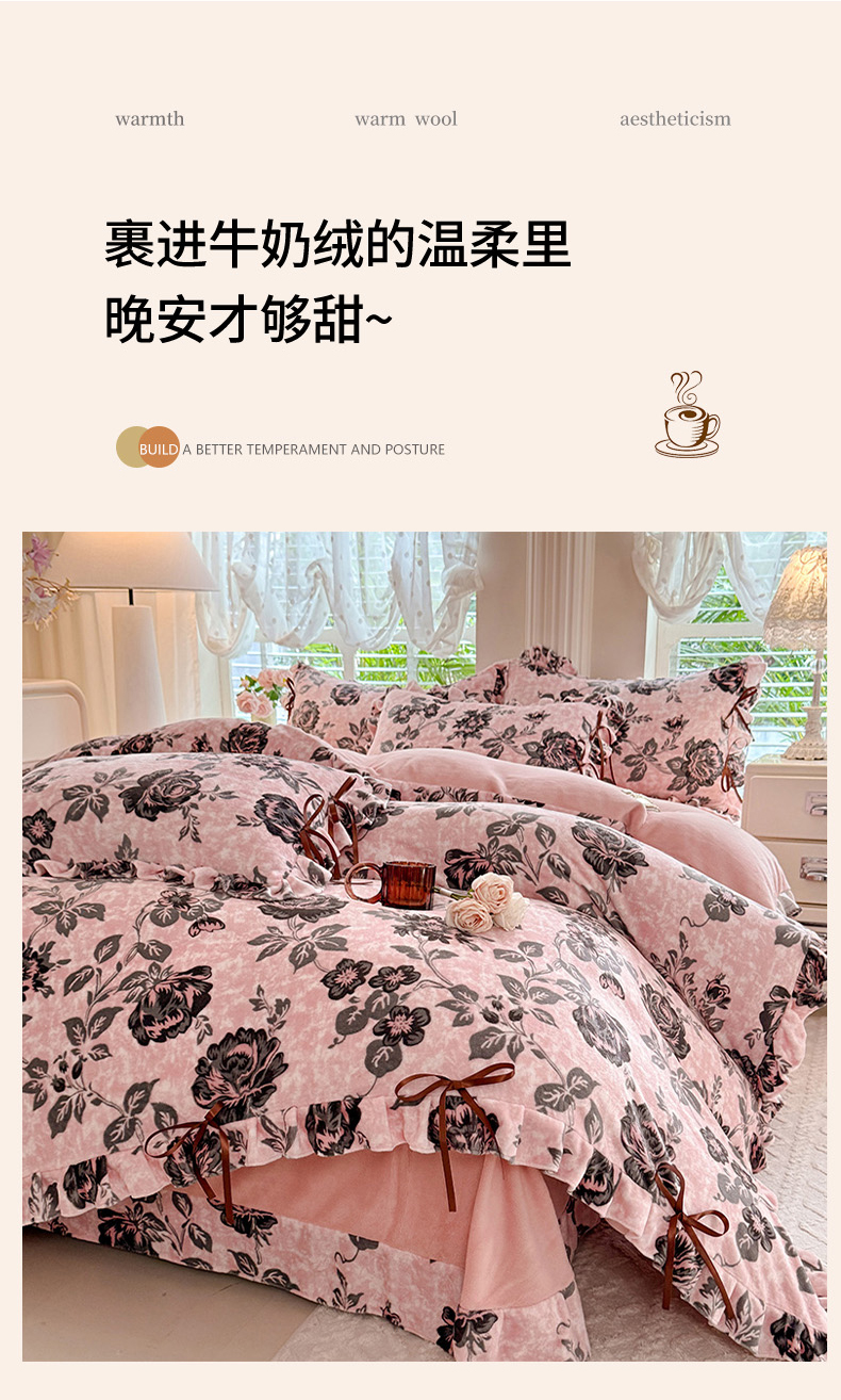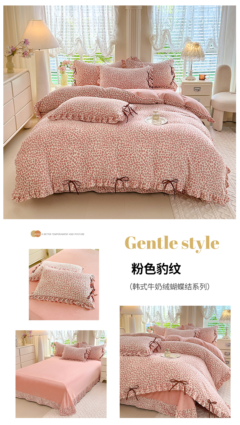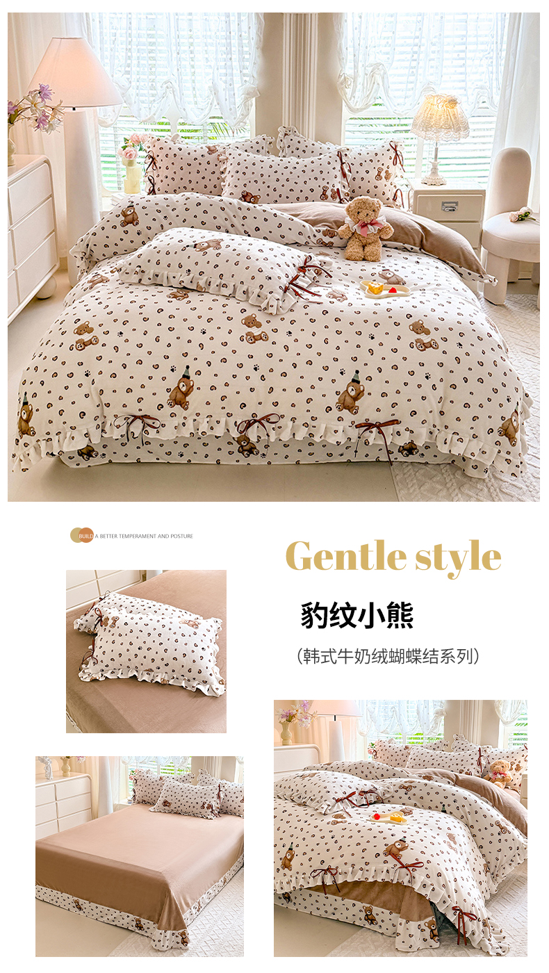 (总)韩约家纺 2024新款牛奶绒花边款印花四件套,豹纹时尚,繁花,格调,花瑾,酷派熊,乐莹,丽贝卡,莉亚,米妮(粉),米妮(灰),妮点爱心,如伊,婷语花间,远黛