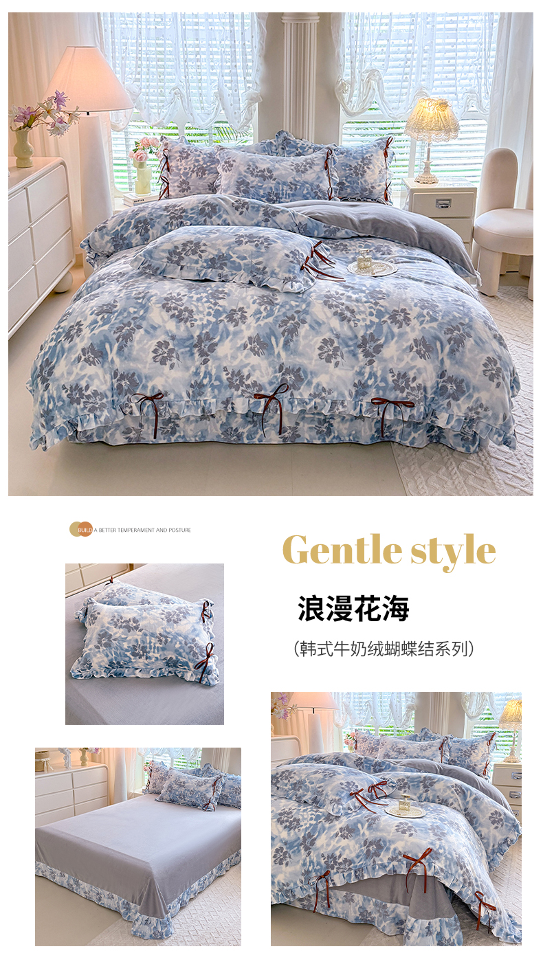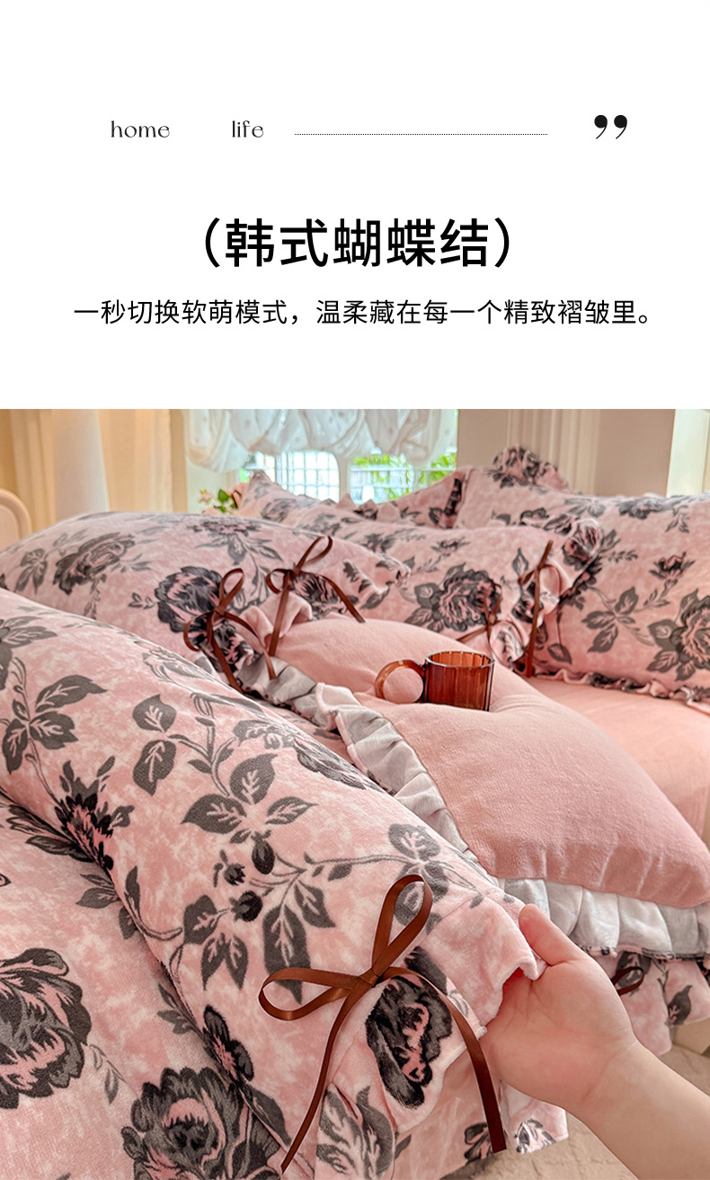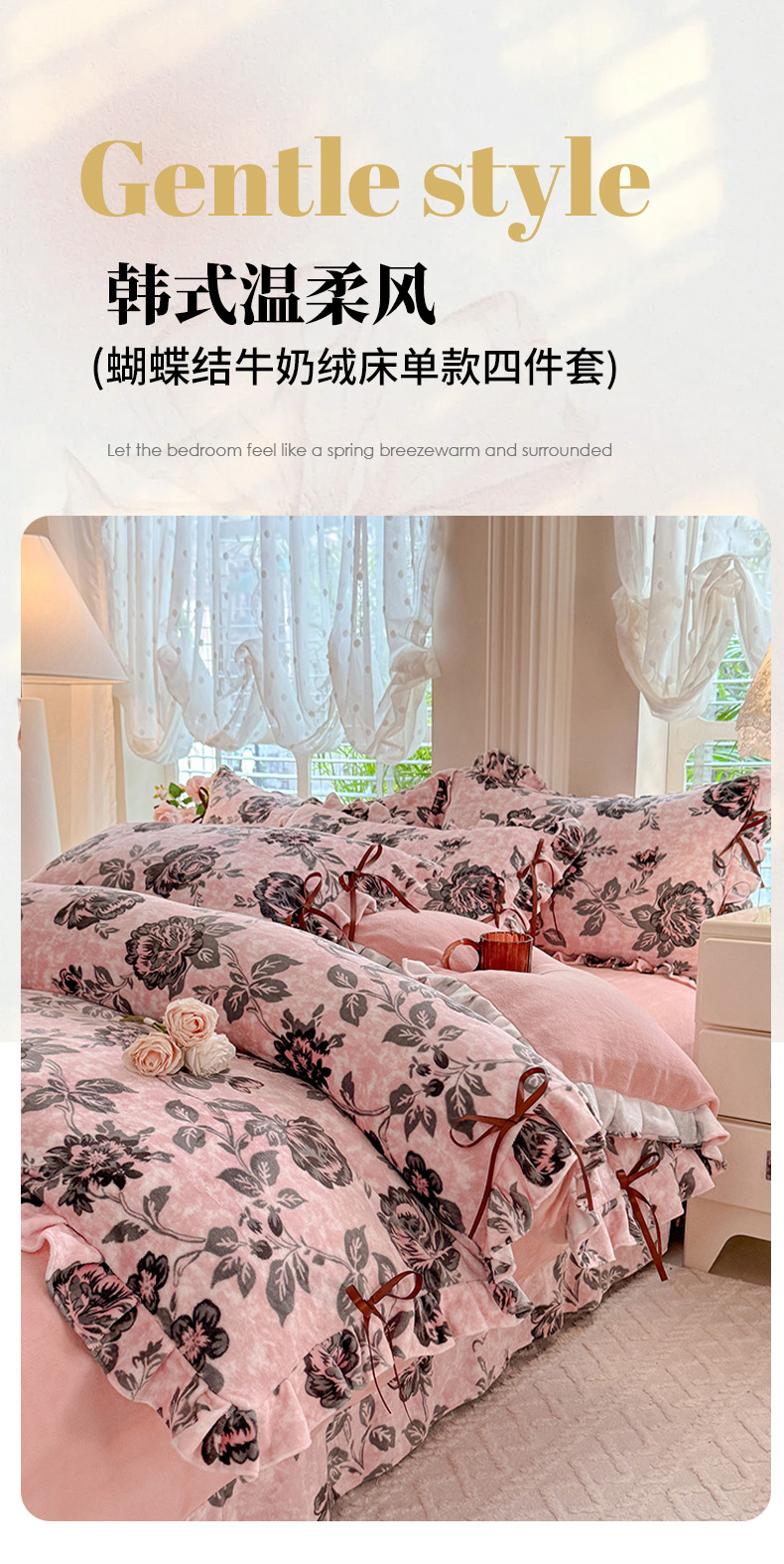 (总)韩约 2025新款韩式蝴蝶结牛奶绒床单款四件套