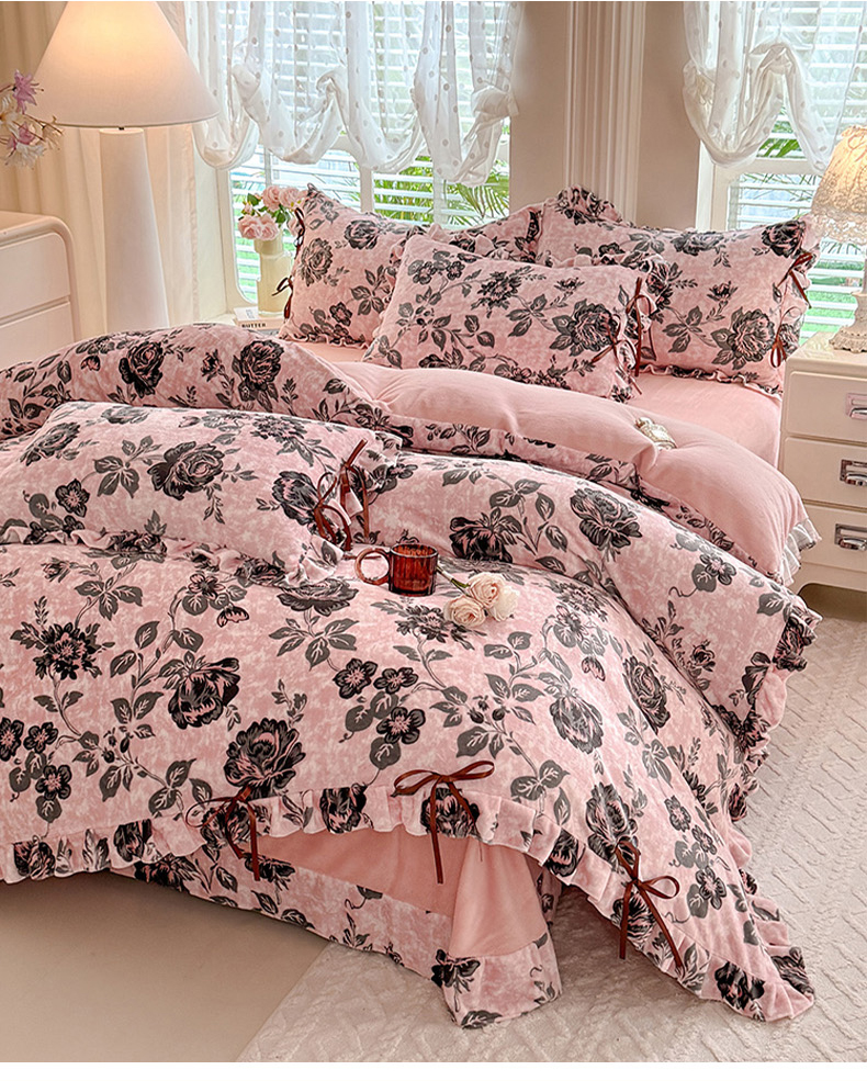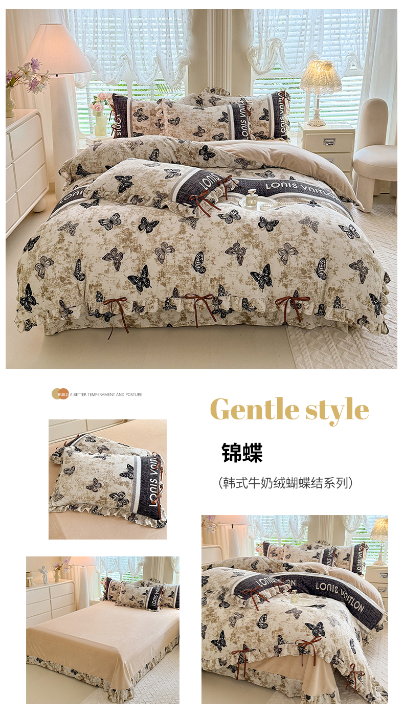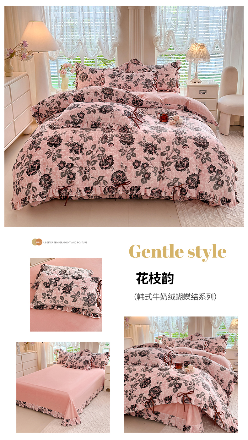 (总)韩约 2025新款韩式蝴蝶结牛奶绒床单款四件套