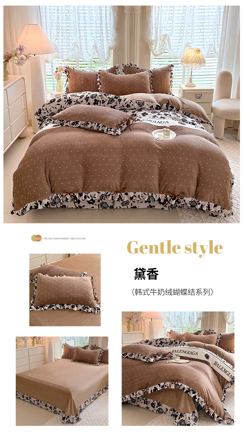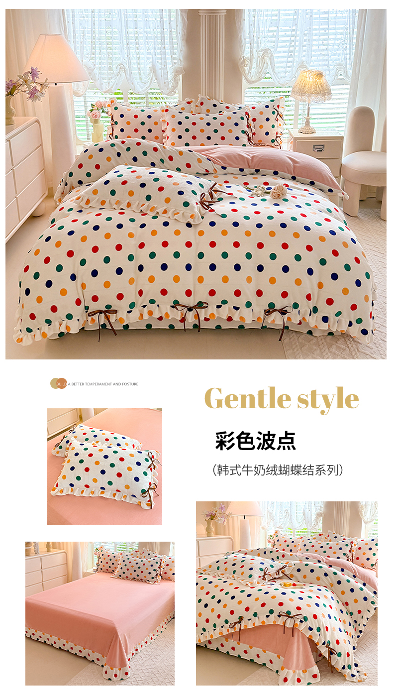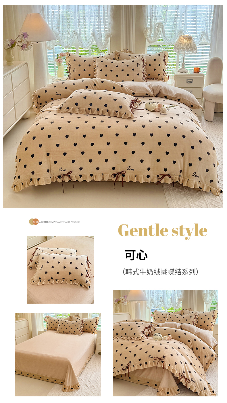 (总)韩约家纺 2025新款韩式蝴蝶结牛奶绒床盖款四件套,圆梦咖,斑马纹,豹纹小熊,彩色波点,黛香,蝶花,粉色豹纹,花枝韵,锦蝶,可心,浪漫花海,迷你字母