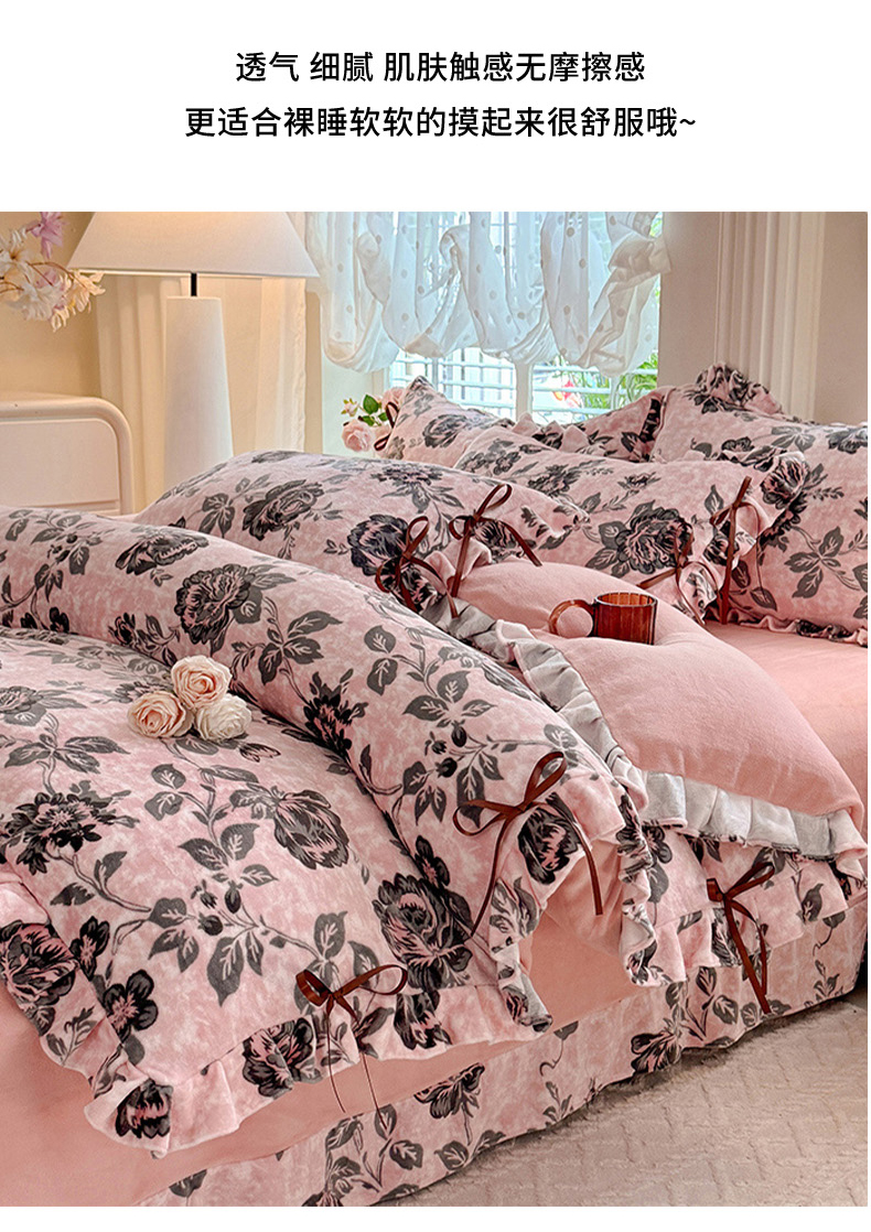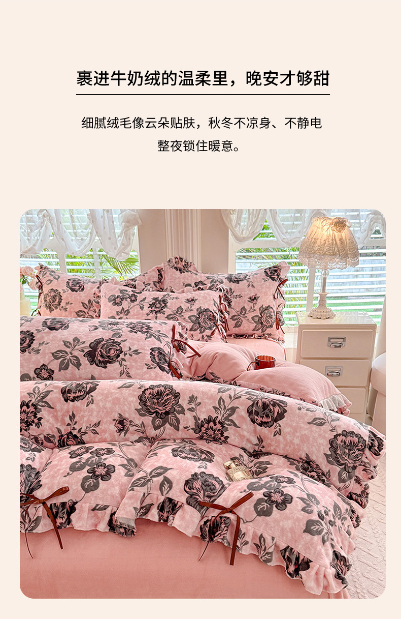 (总)韩约家纺 2025新款法式大花边印花牛奶绒床盖款四件套,黑萌萌 (床盖款),红萌萌(床盖款),艾美(床盖款),豹纹(床盖款),黑波点(床盖款),红波点(床盖款),波点(床盖款)