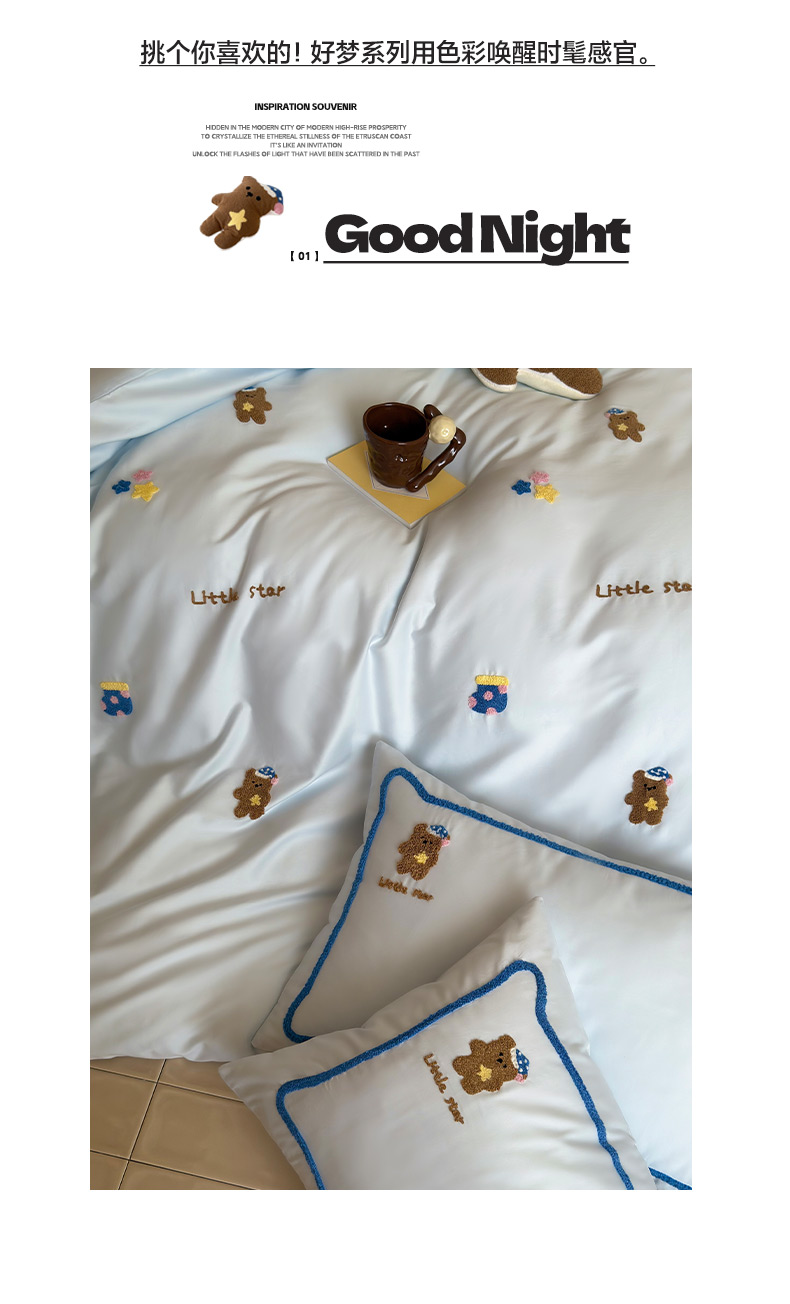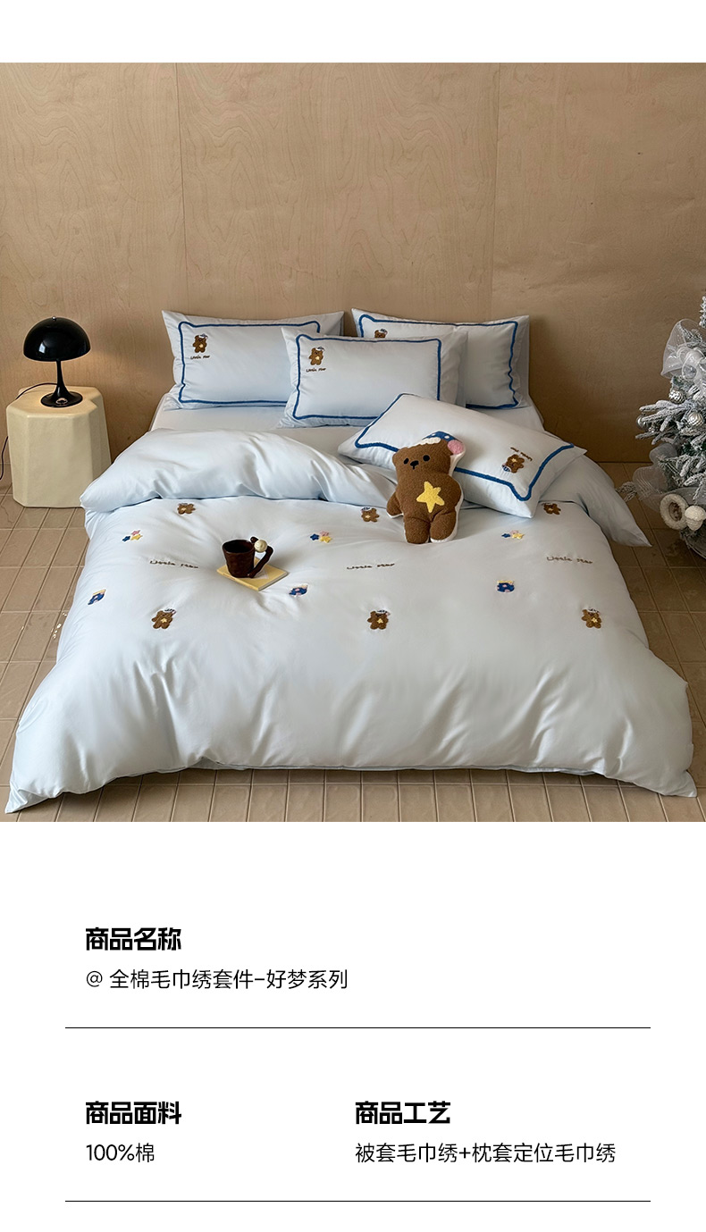 当前位置: 91家纺网 > 商品网购 > 床品套件 > 四件套 > 普通磨毛四件套 > 三味舒屋 2025新款好梦毛巾绣全棉纯棉磨毛四件套 全棉款好梦小熊