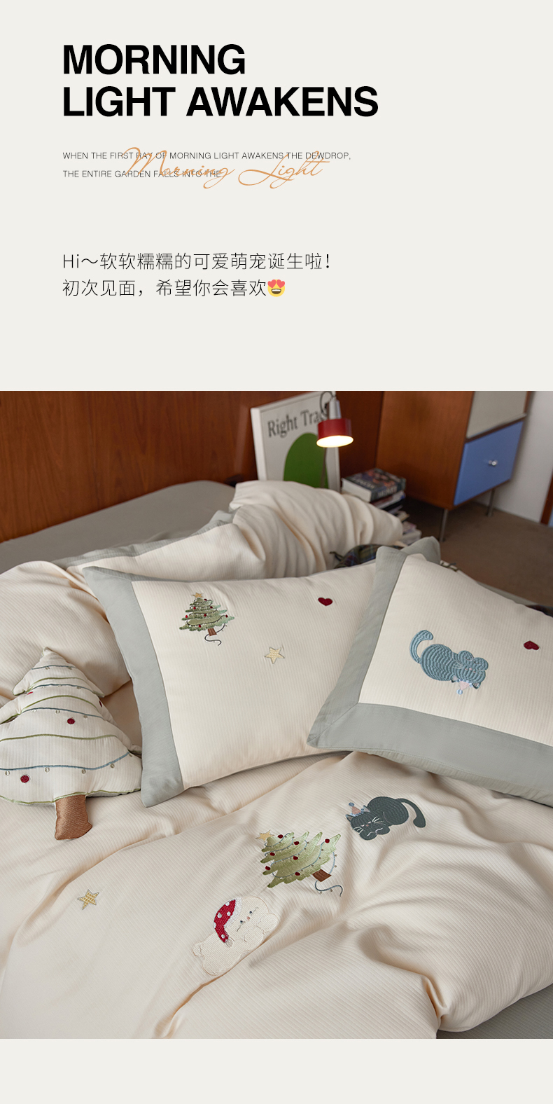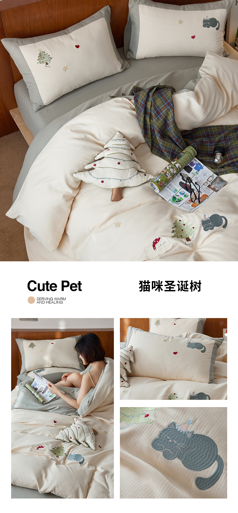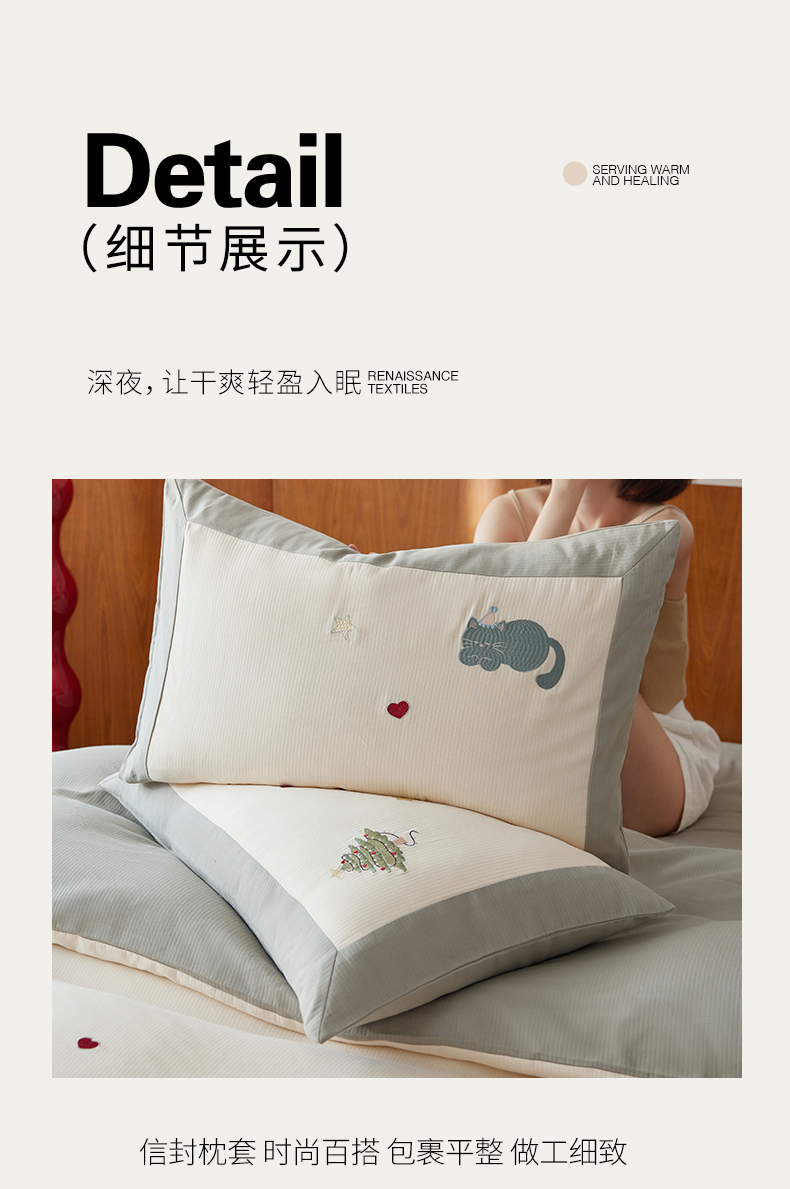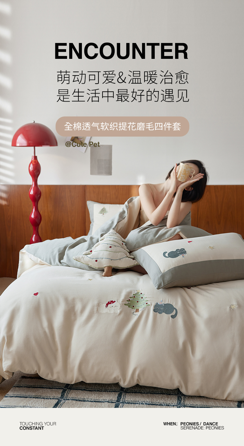 当前位置: 91家纺网 > 商品网购 > 床品套件 > 四件套 > 普通磨毛四件套 > 风向标家纺 2025新款透气软织提花磨毛卡通毛巾绣四件套-风格一 猫咪圣诞树