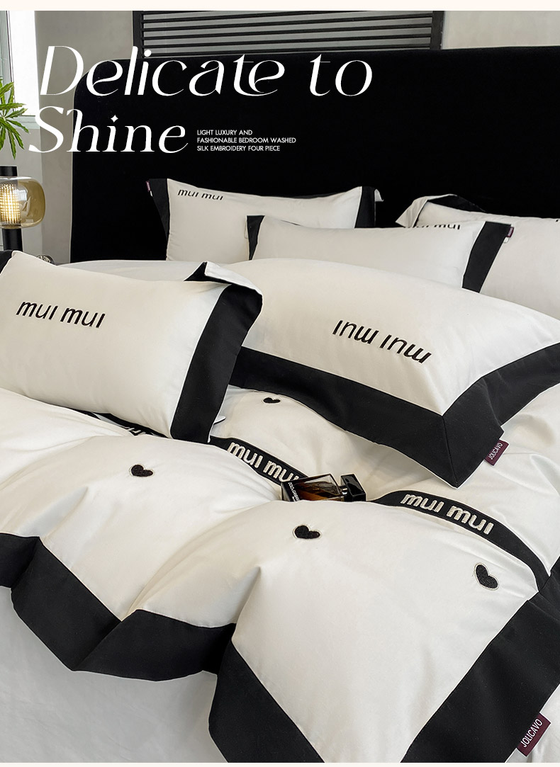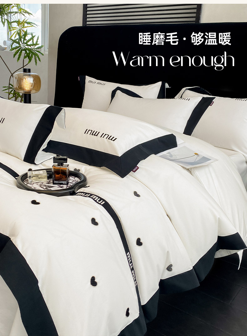 • 91家纺网 家纺一手货源 找家纺 高端A类加厚保暖全棉磨毛四件套纯棉被套奢侈品同款刺绣轻奢床笠款秋冬床上用品 桃之夭夭-耀黑