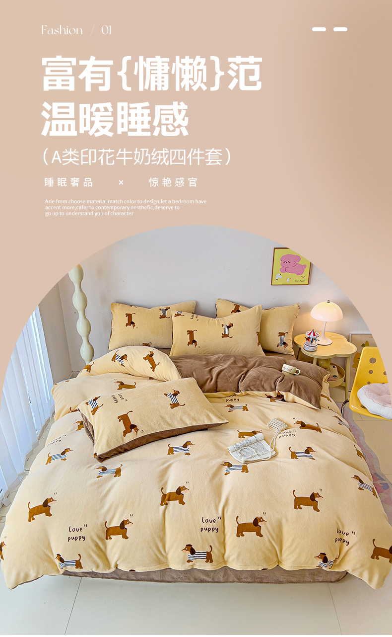 当前位置: 91家纺网 > 商品网购 > 床品套件 > 四件套 > 牛奶绒四件套 > 麦瑞家纺 2025新款印花牛奶绒四件套跑量款 布朗狗