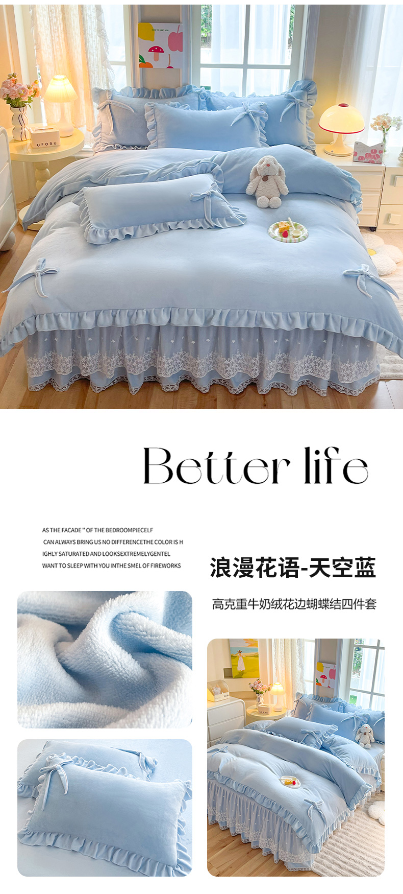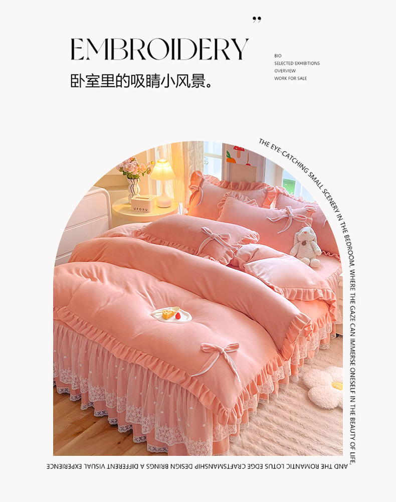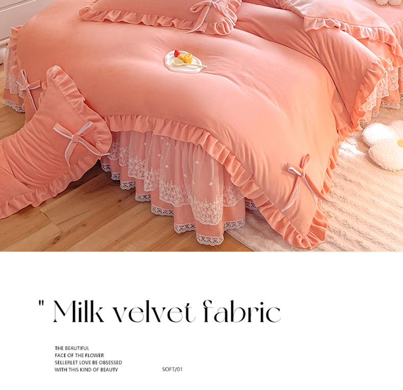 (总)后庭寝室 2025新款牛奶绒花边床裙四件套-浪漫花语系列,浪漫花语-暖黄,浪漫花语-公主玉,浪漫花语-梦幻紫,浪漫花语-暖粉玉,浪漫花语-少女粉,浪漫花语-天空蓝