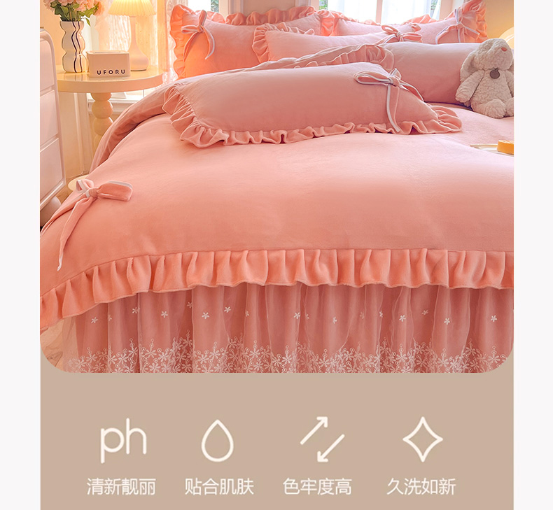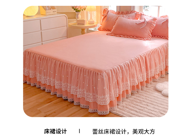 商品名称:后庭寝室 2025新款牛奶绒花边床裙四件套-浪漫花语系列 浪漫花语-公主玉