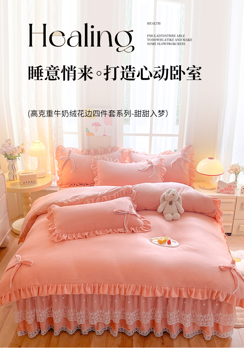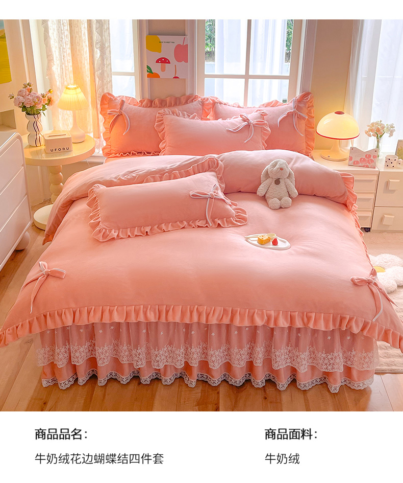 (总)后庭寝室 2025新款韩式花边牛奶绒四件套-香香公主系列,香香公主-嫩玉,香香公主-粉色,香香公主-豆沙,香香公主-粉玉,香香公主-湖蓝,香香公主-暖黄,香香公主-浅灰,香香公主-浅蓝,香香公主-浅紫,香香公主-玉色