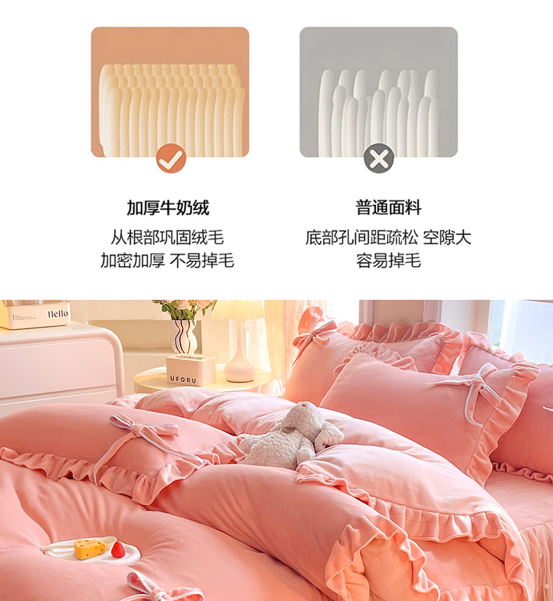 (总)后庭寝室 2025新款高克重牛奶绒公主风床裙四件套-甜心系列,甜心-粉玉,甜心-嫩黄,甜心-浅粉,甜心-浅蓝,甜心-浅紫,甜心-玉色