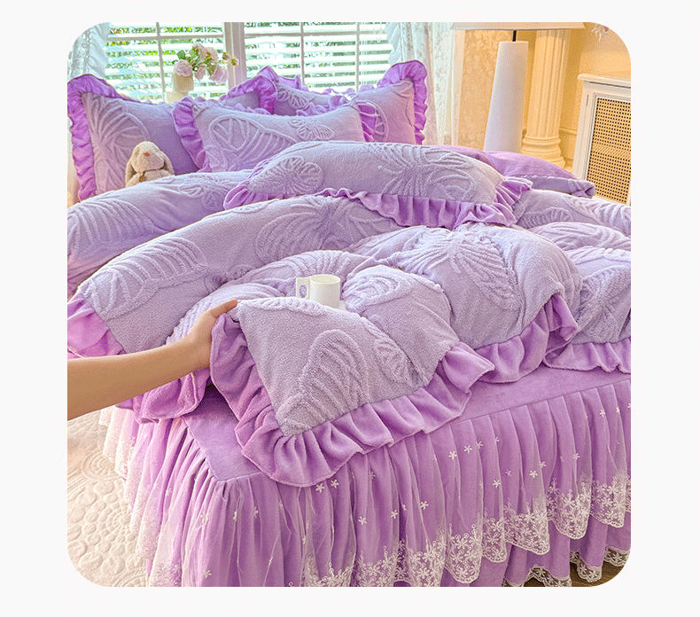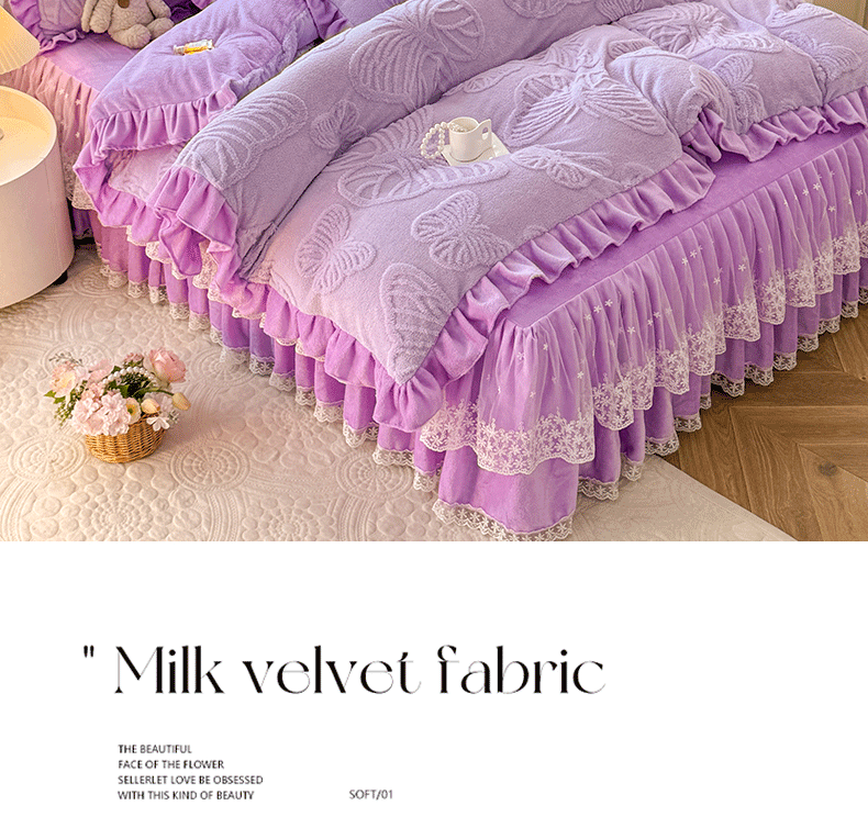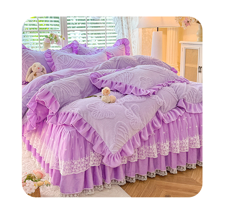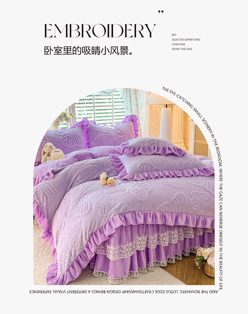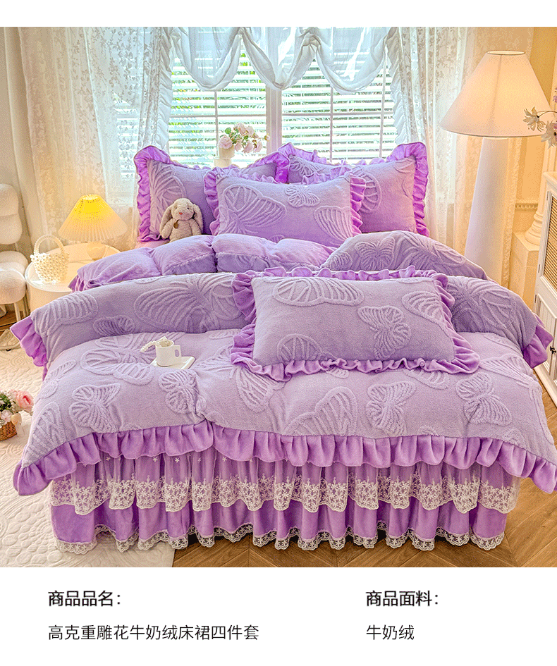 后庭寝室 2025新款牛奶绒床裙四件套-蝶舞翩翩系列 蝶舞翩翩-靓丽紫