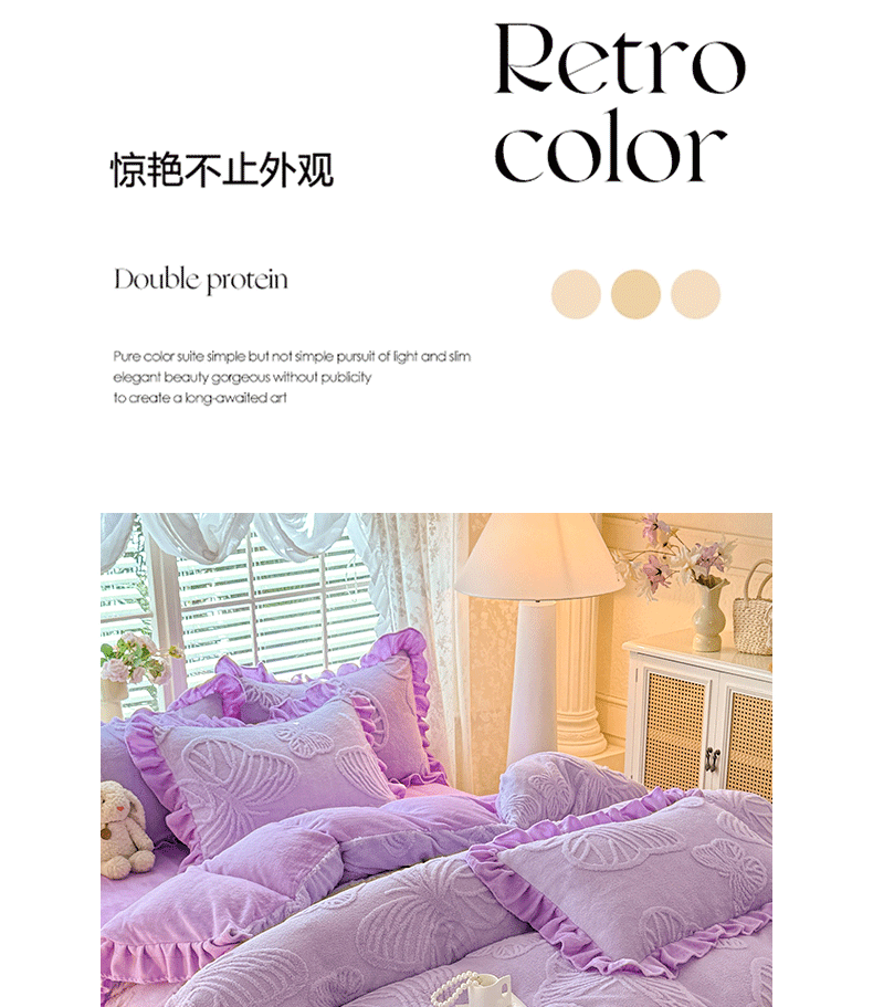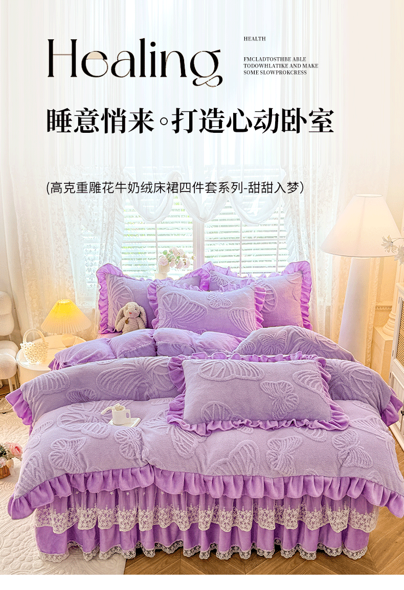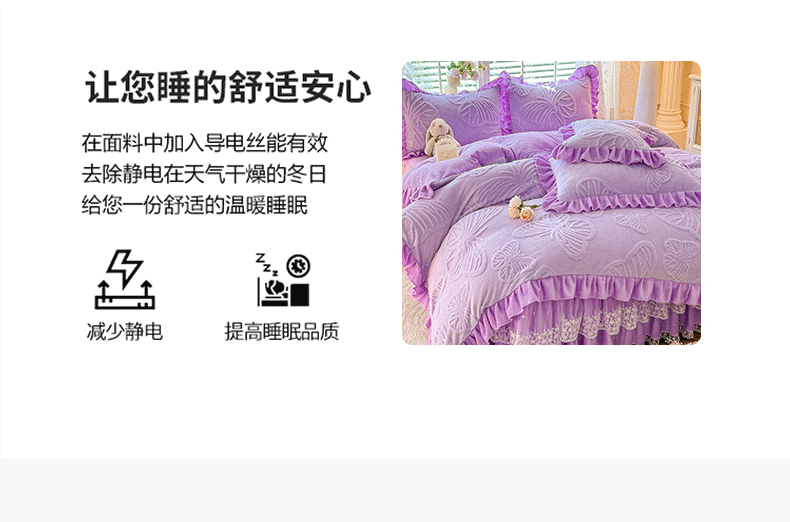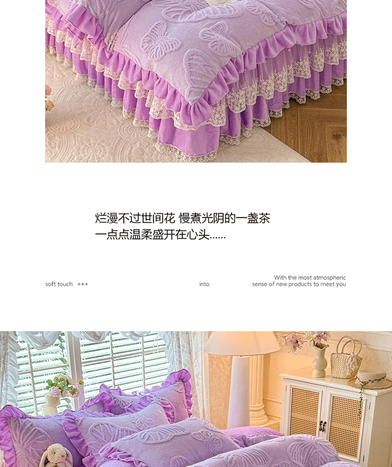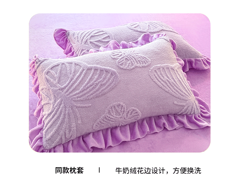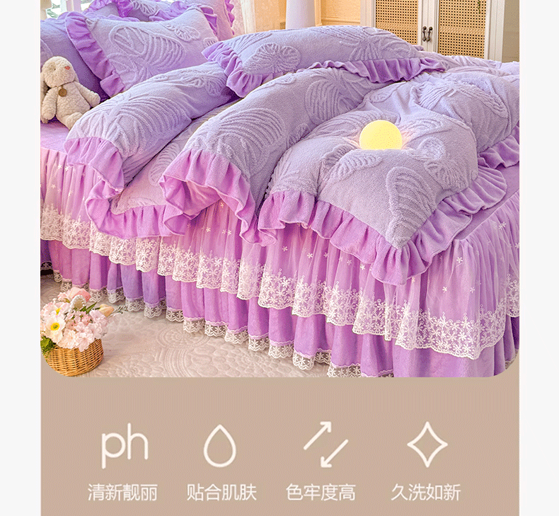 后庭寝室 2025新款牛奶绒床裙四件套-蝶舞翩翩系列 蝶舞翩翩-靓丽紫