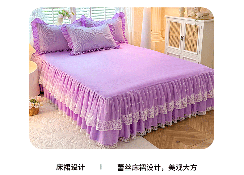(总)后庭寝室 2025新款牛奶绒花边床裙四件套-浪漫花语系列,浪漫花语-暖黄,浪漫花语-公主玉,浪漫花语-梦幻紫,浪漫花语-暖粉玉,浪漫花语-少女粉,浪漫花语-天空蓝