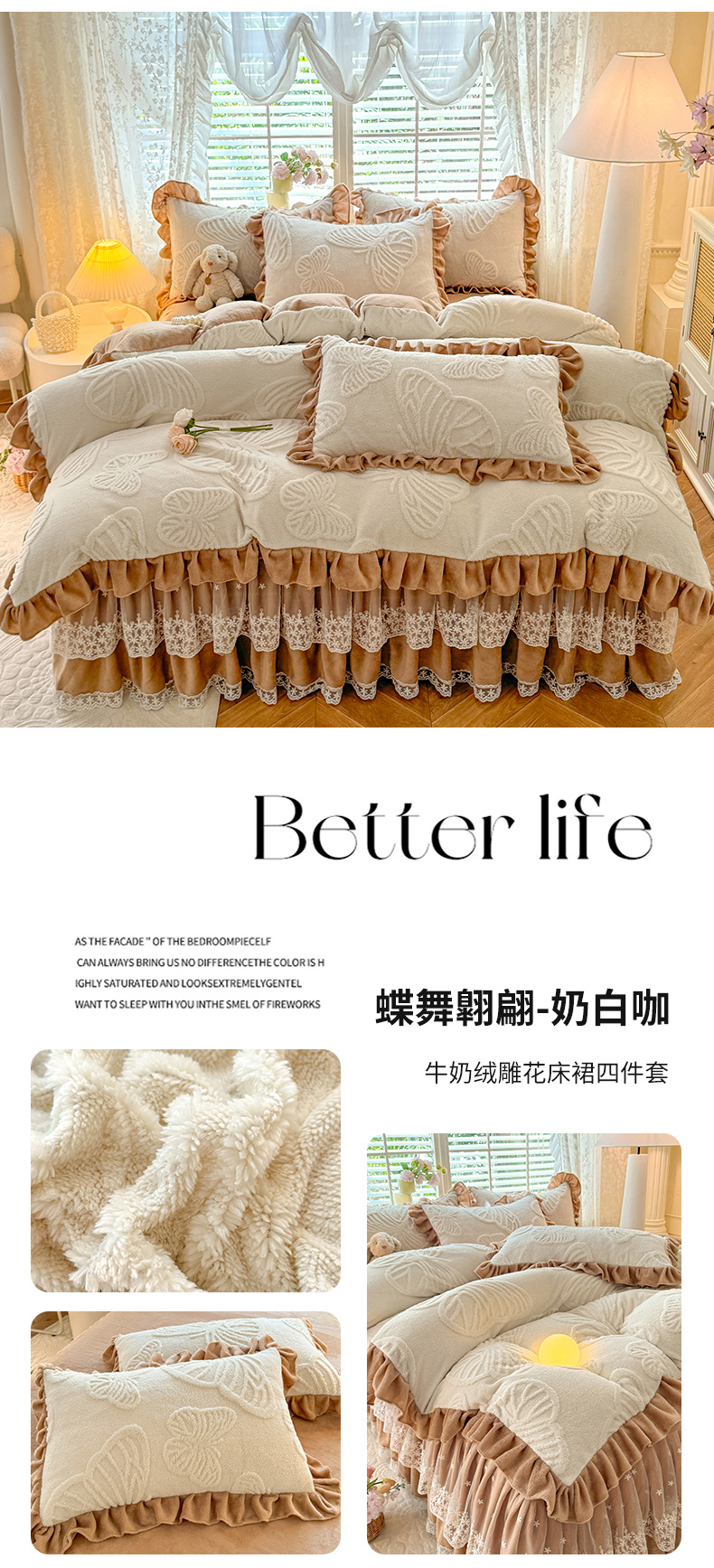 (总)后庭寝室 2025新款牛奶绒床裙四件套-蝶舞翩翩系列,蝶舞翩翩-白粉玉,蝶舞翩翩-高贵咖,蝶舞翩翩-高级灰,蝶舞翩翩-靓丽紫,蝶舞翩翩-奶白咖,蝶舞翩翩-奶白绿,蝶舞翩翩-时尚绿,蝶舞翩翩-樱花粉
