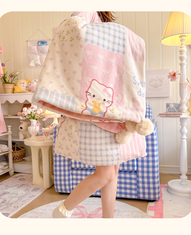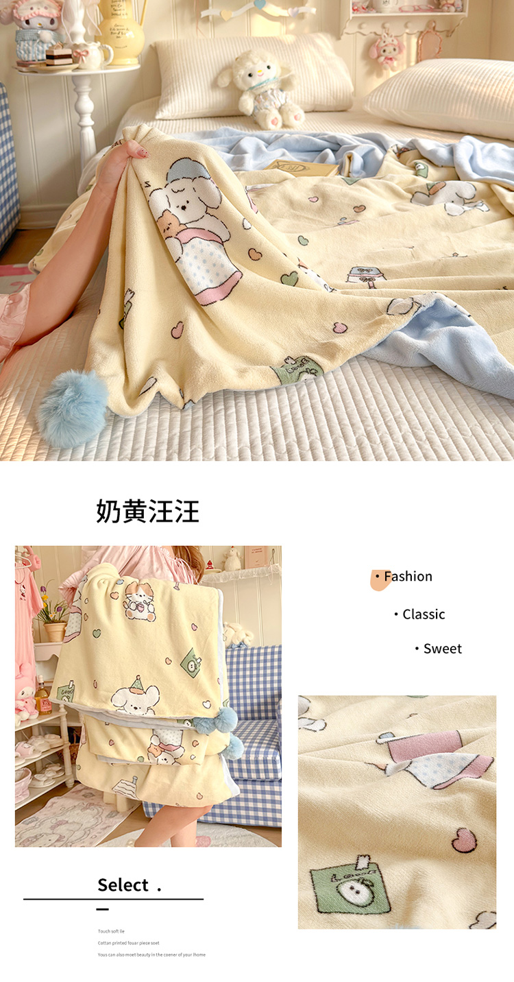 罗亿家纺 2025新款高克重(200g)牛奶绒韩系毛球办公室盖毯多功能盖毯被套毛毯两用(小红书推荐) 猫吃鱼-蓝
