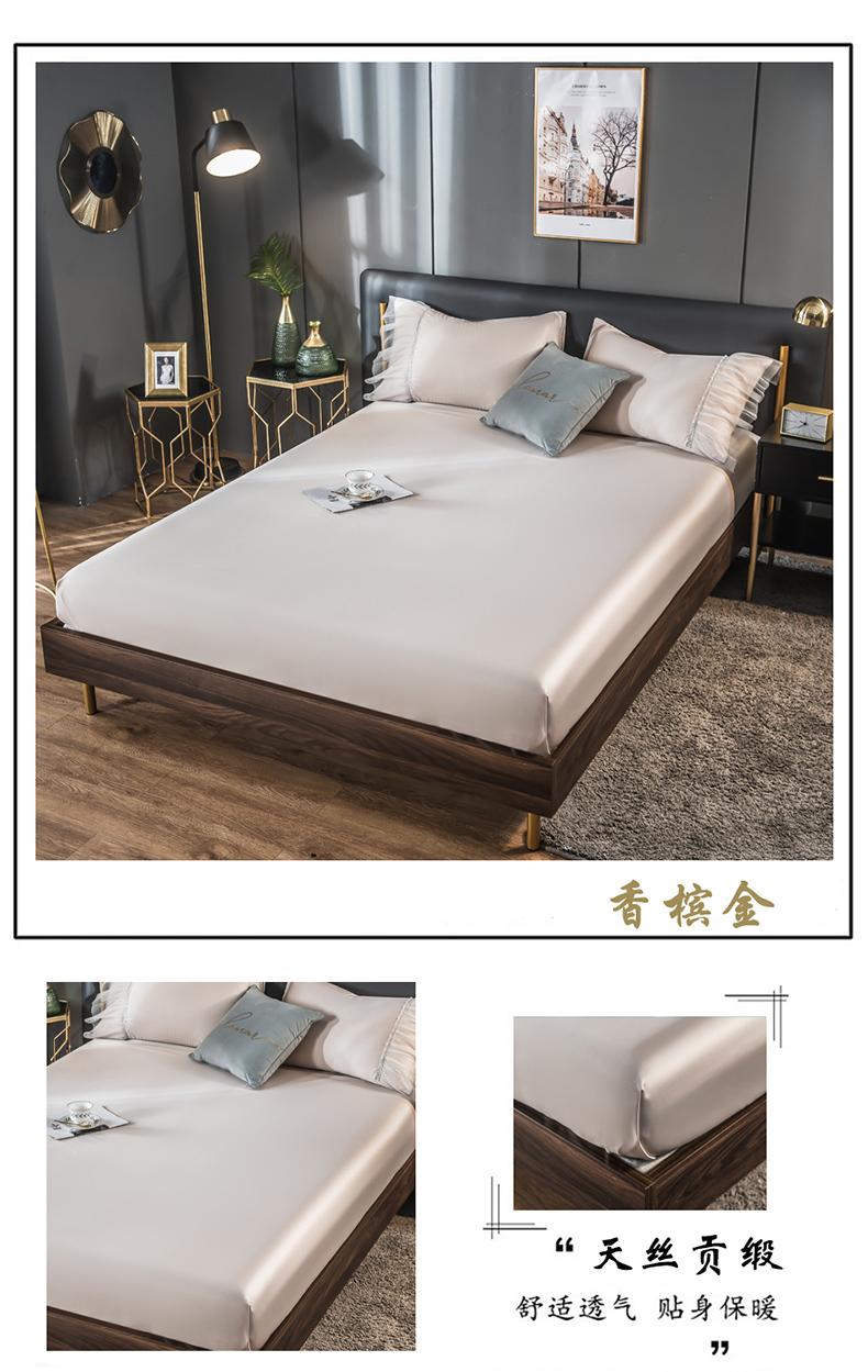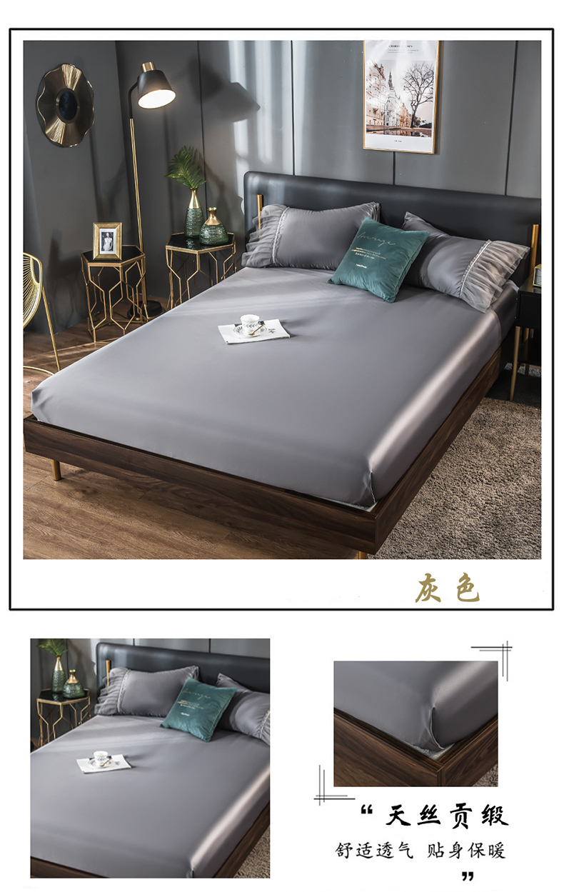 (总)丽莱美家纺 2026新款天丝冰丝床笠,灰色,宾利蓝,纯白色,豆沙粉,豆沙色,酒红,孔雀蓝,米白,墨绿色,浅紫,水兰,天蓝,香槟金,香槟色,烟熏紫,玉色