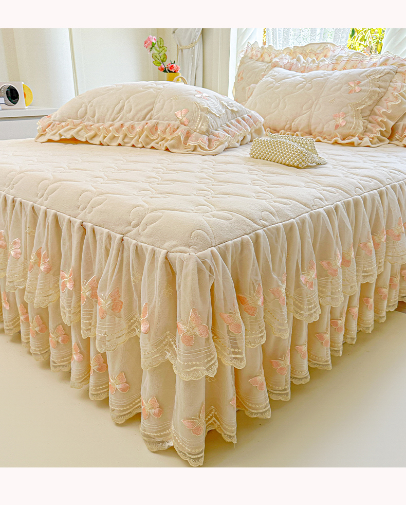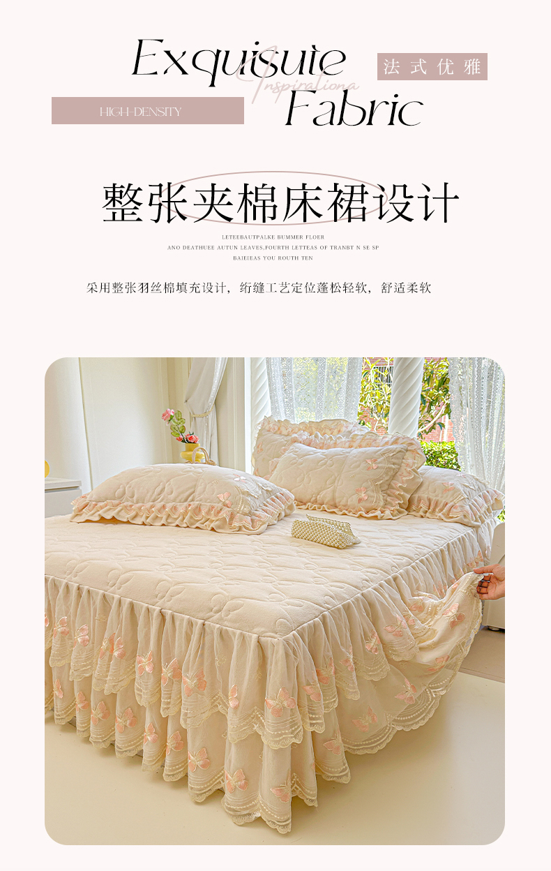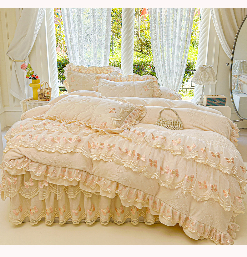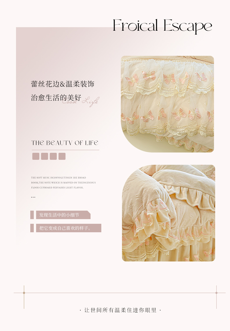 当前位置: 91家纺网 > 商品网购 > 床品套件 > 四件套 > 牛奶绒四件套 > 虹星家纺 2025新款花边牛奶绒床裙四件套系列 蝶恋-粉玉