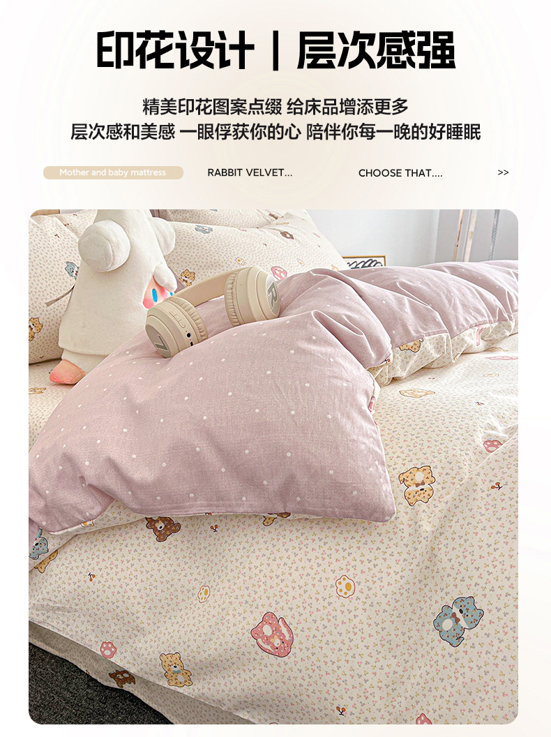 商品名称:澜妃 2025春夏新款12868全棉纯棉印花单被套 甜心小熊